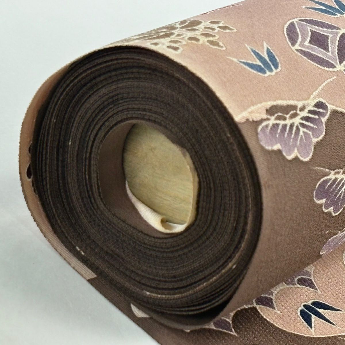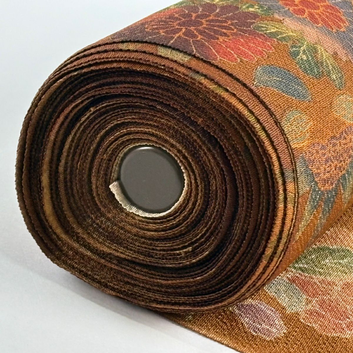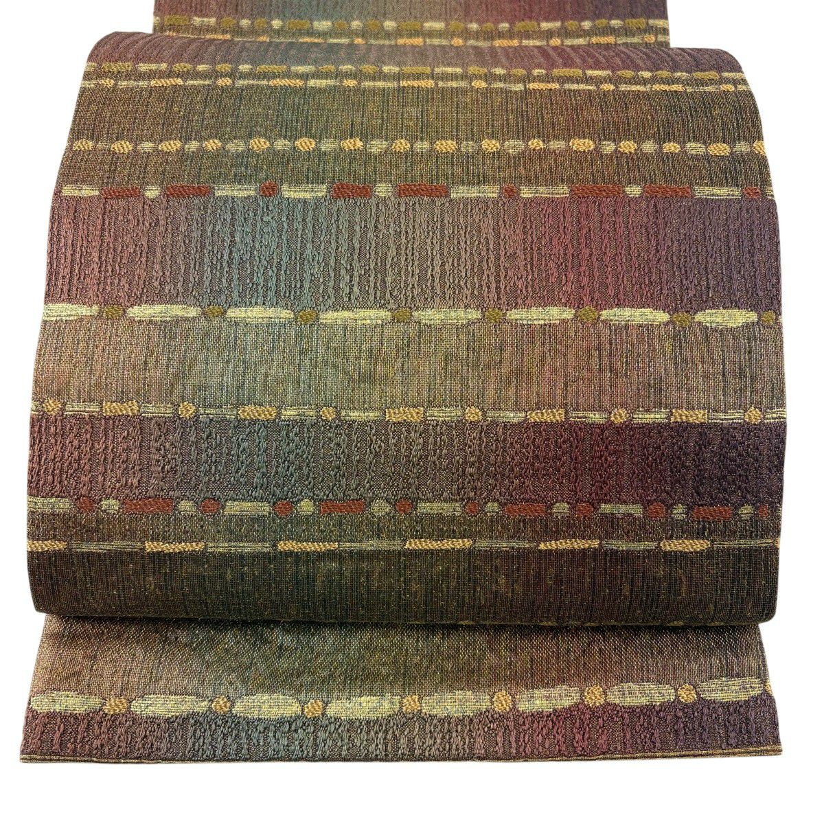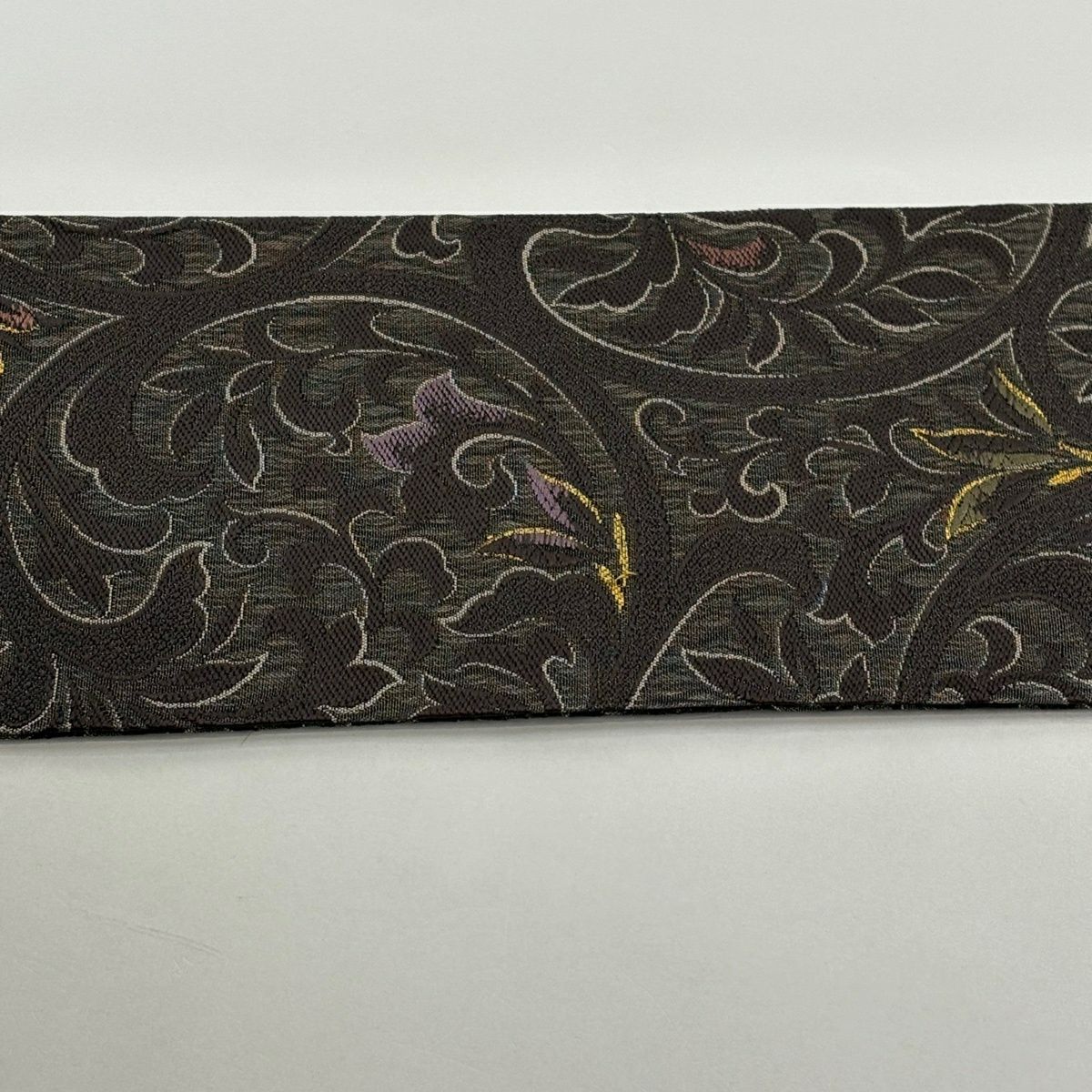 半幅帯 秀品 縞 花唐草 薄小豆 正絹