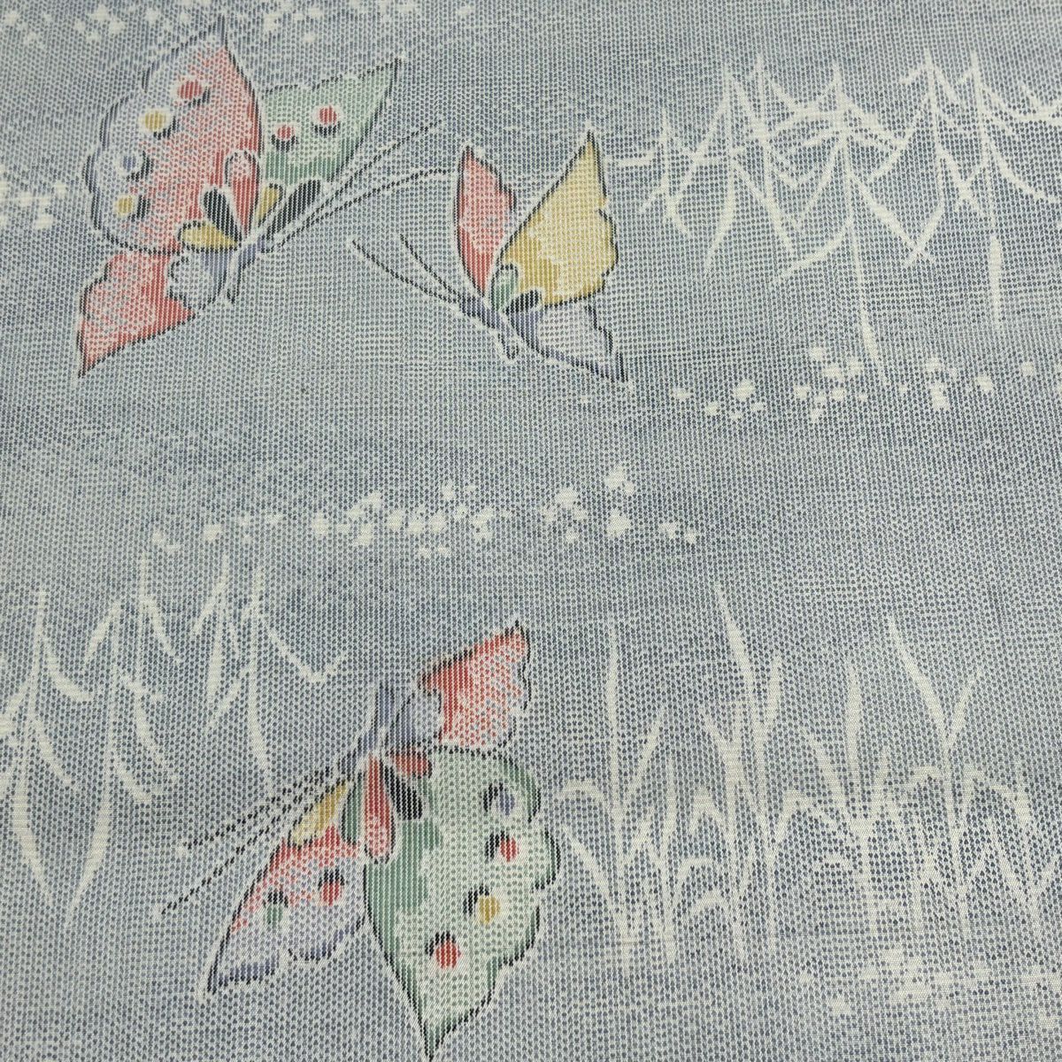 反物 秀品 紬 蝶 葉柄 青灰色 正絹