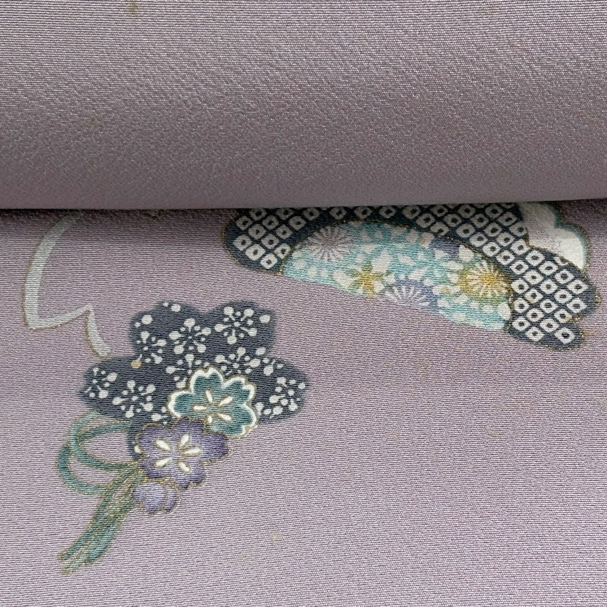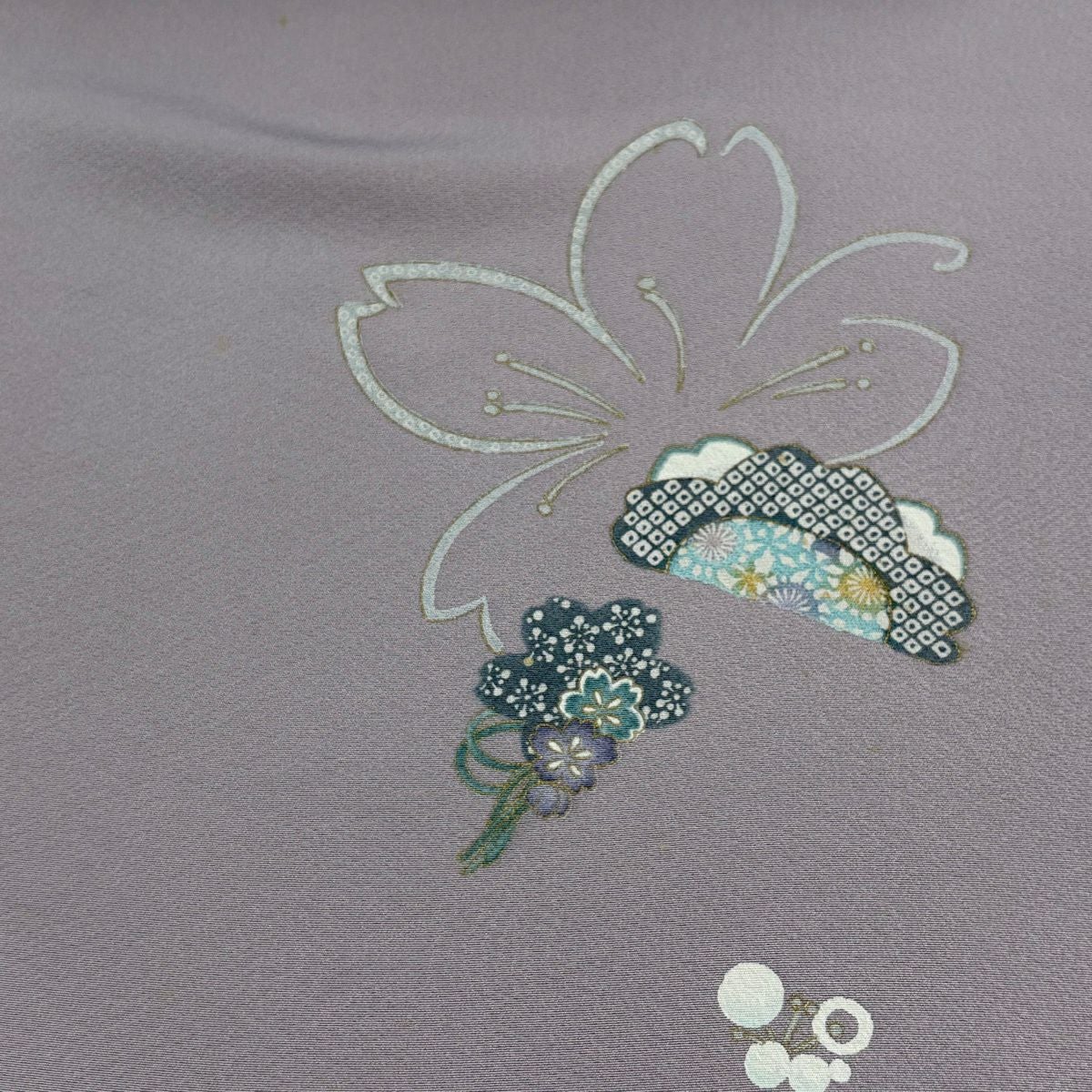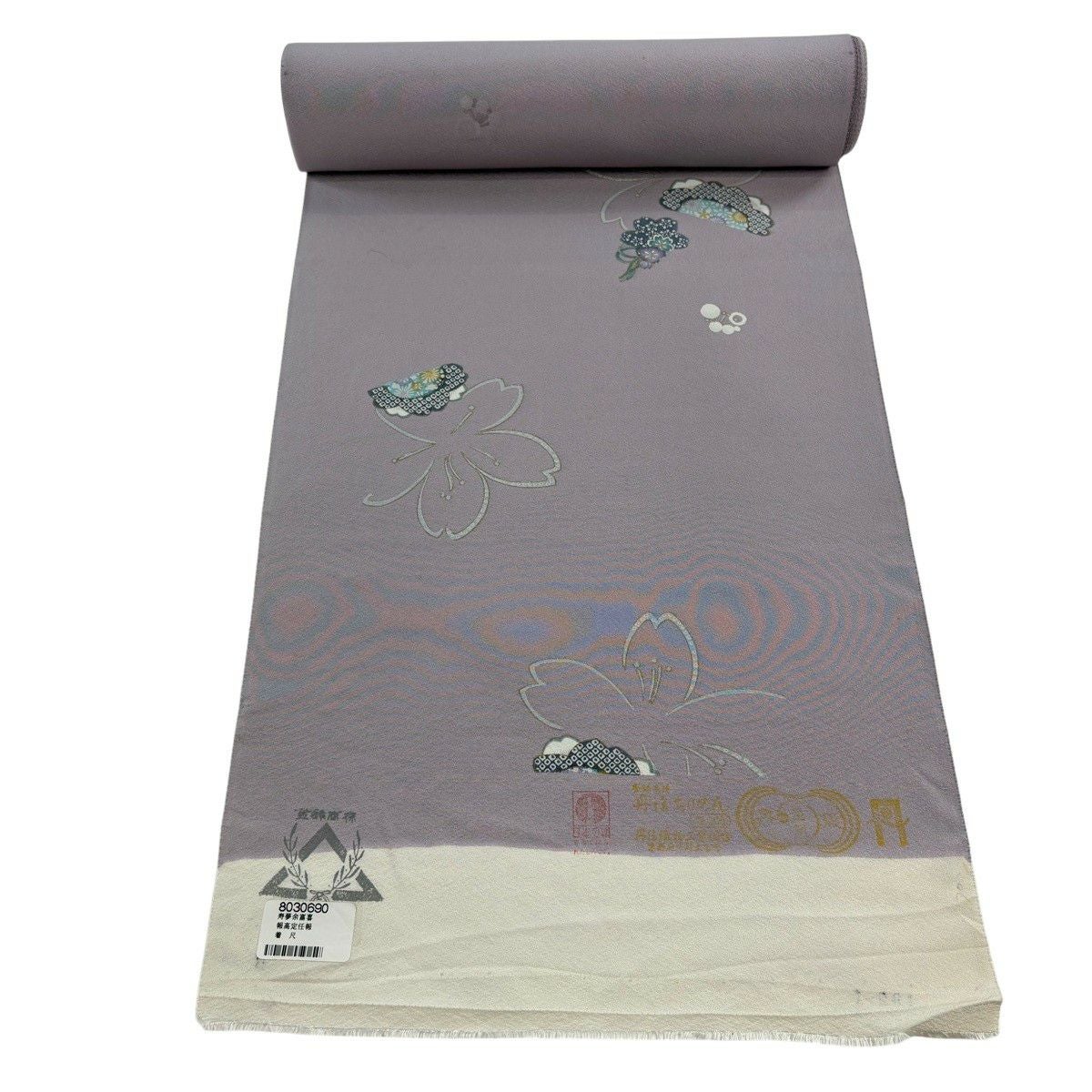 反物 秀品 小紋 桜 金彩 灰紫 正絹