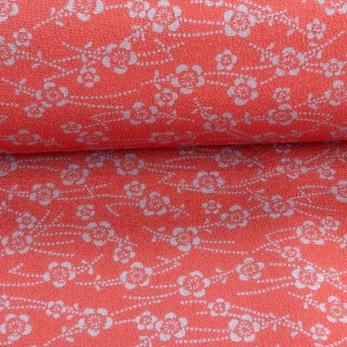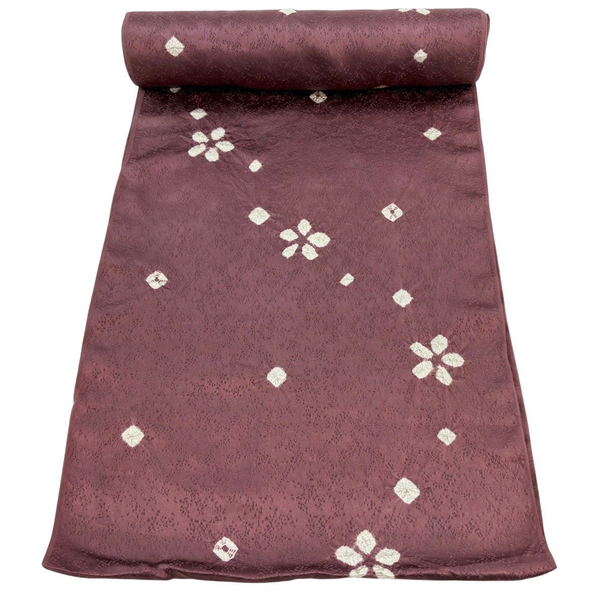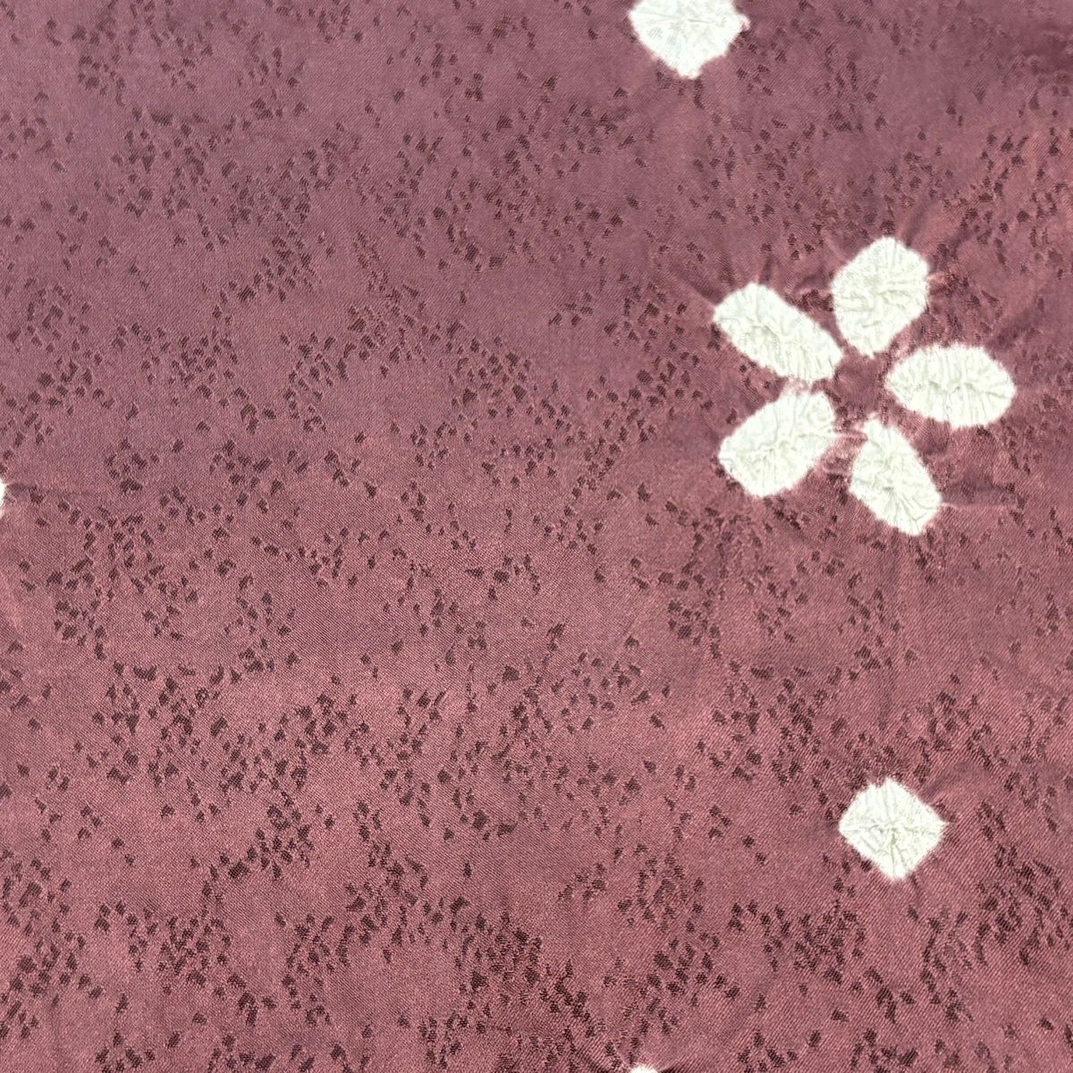反物 秀品 小紋 花 絞り 小豆色 正絹