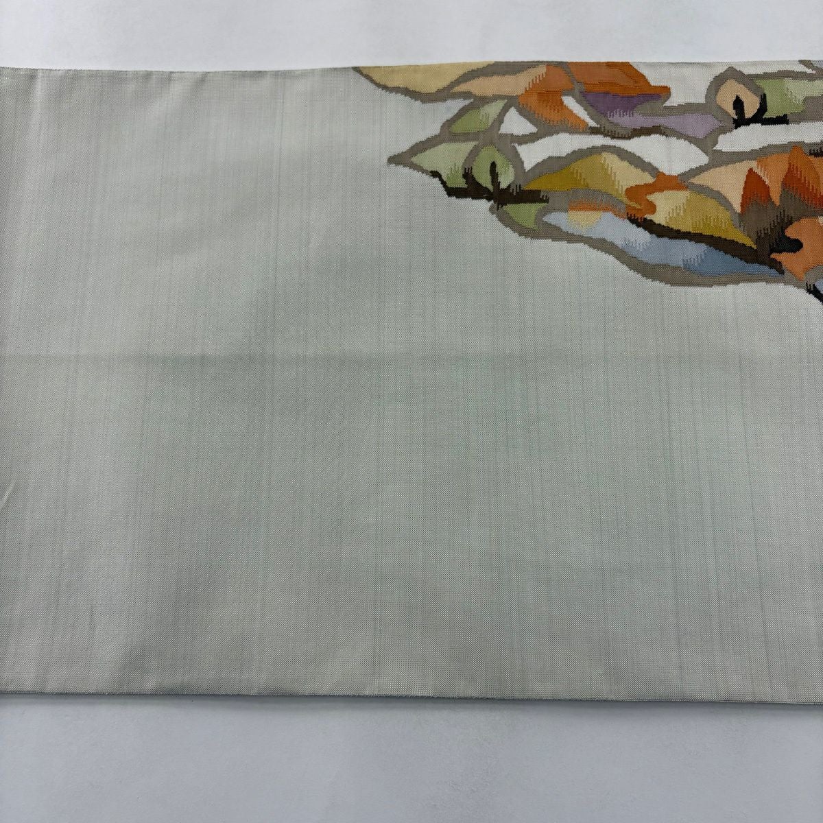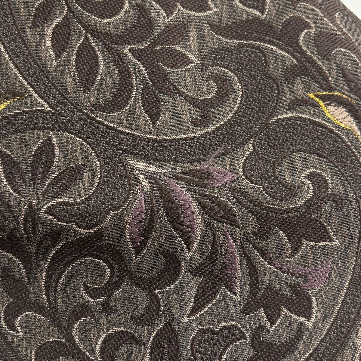 袋帯 秀品 菊 刺繍 灰緑 六通 正絹