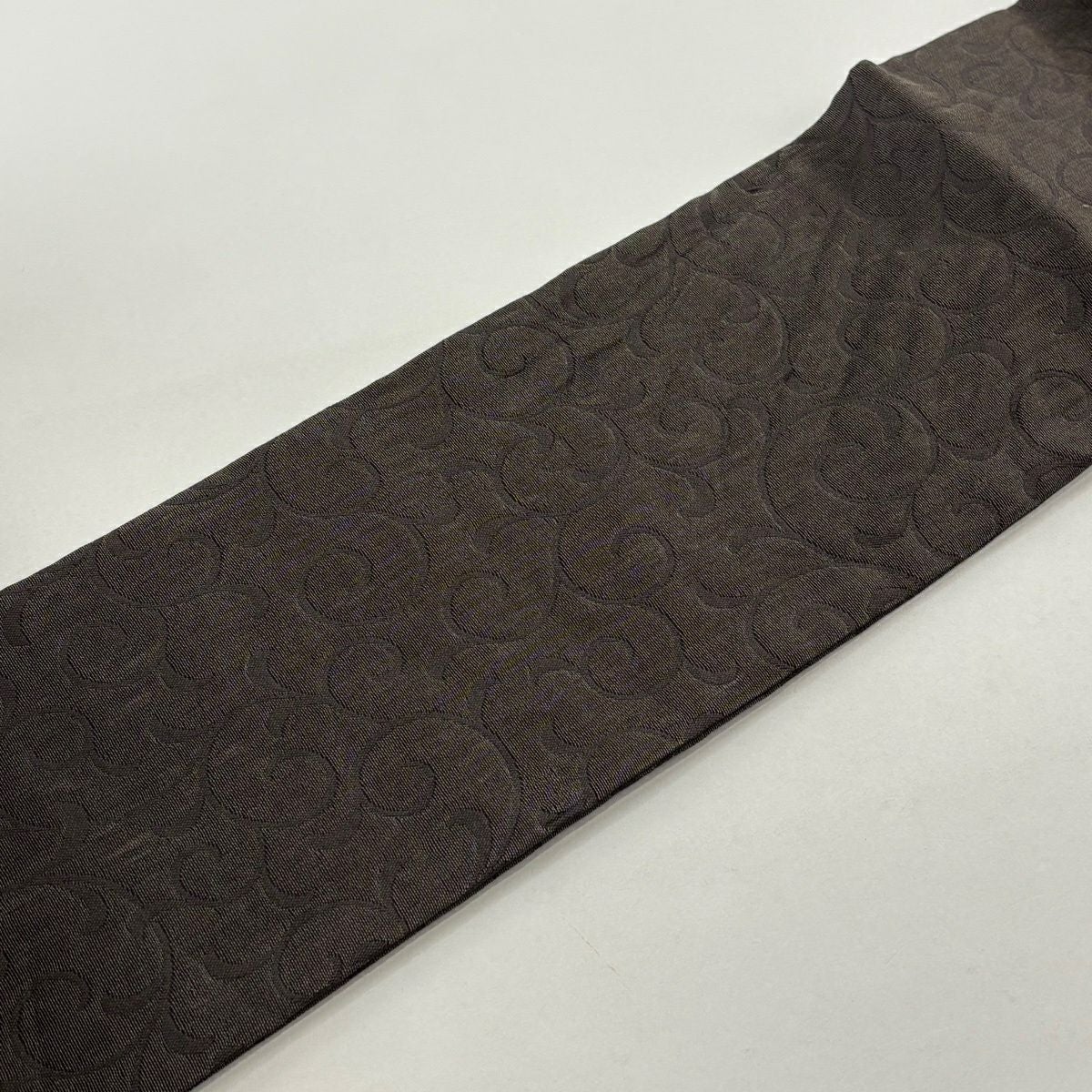 袋帯 秀品 紬地 波 灰茶 六通 正絹