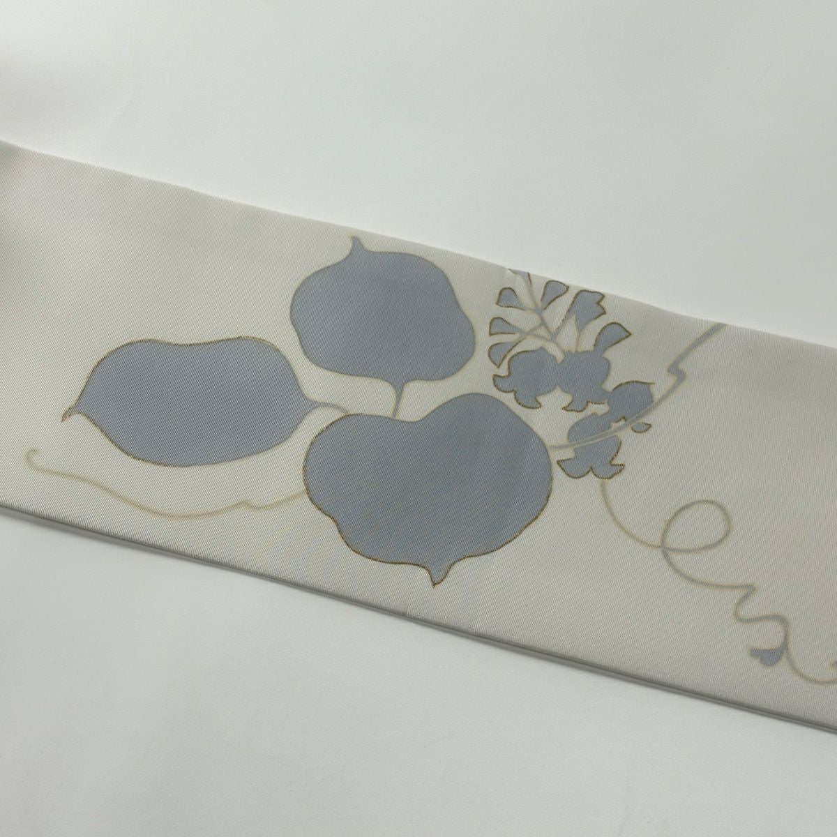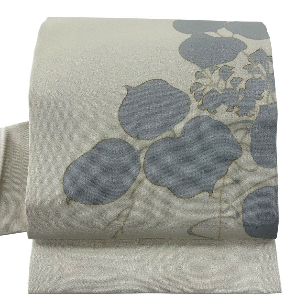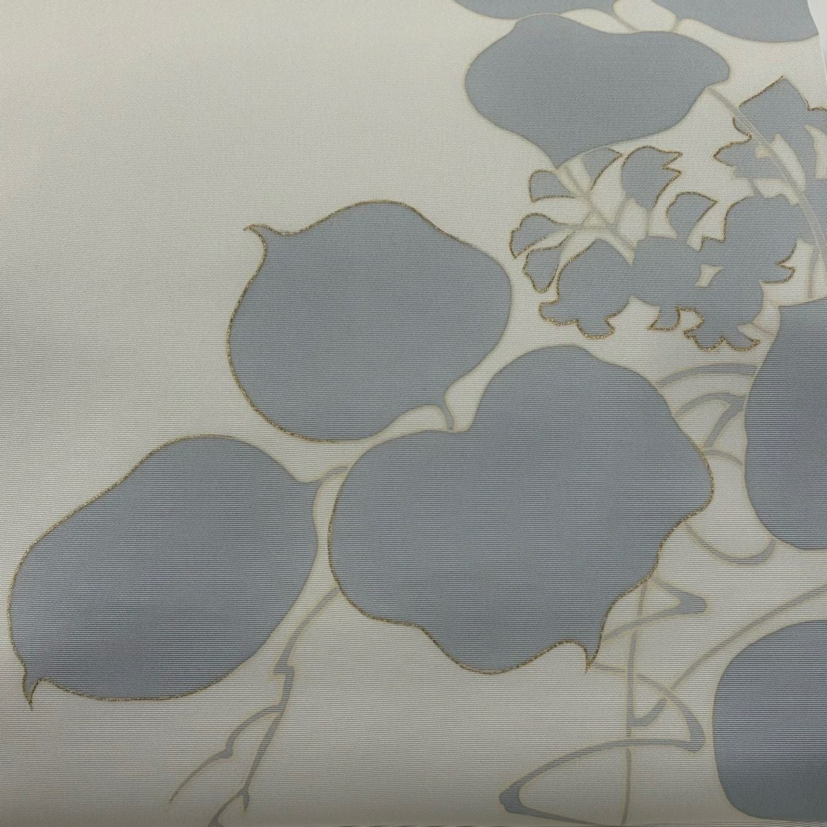袋帯 秀品 葉柄 箔 灰白 六通 正絹