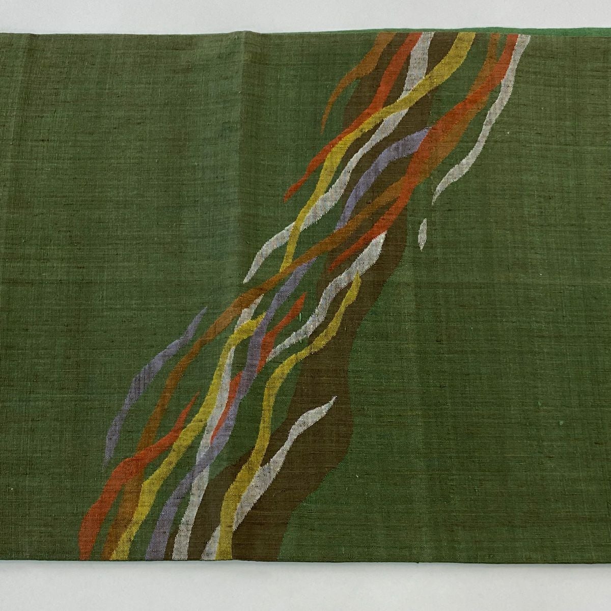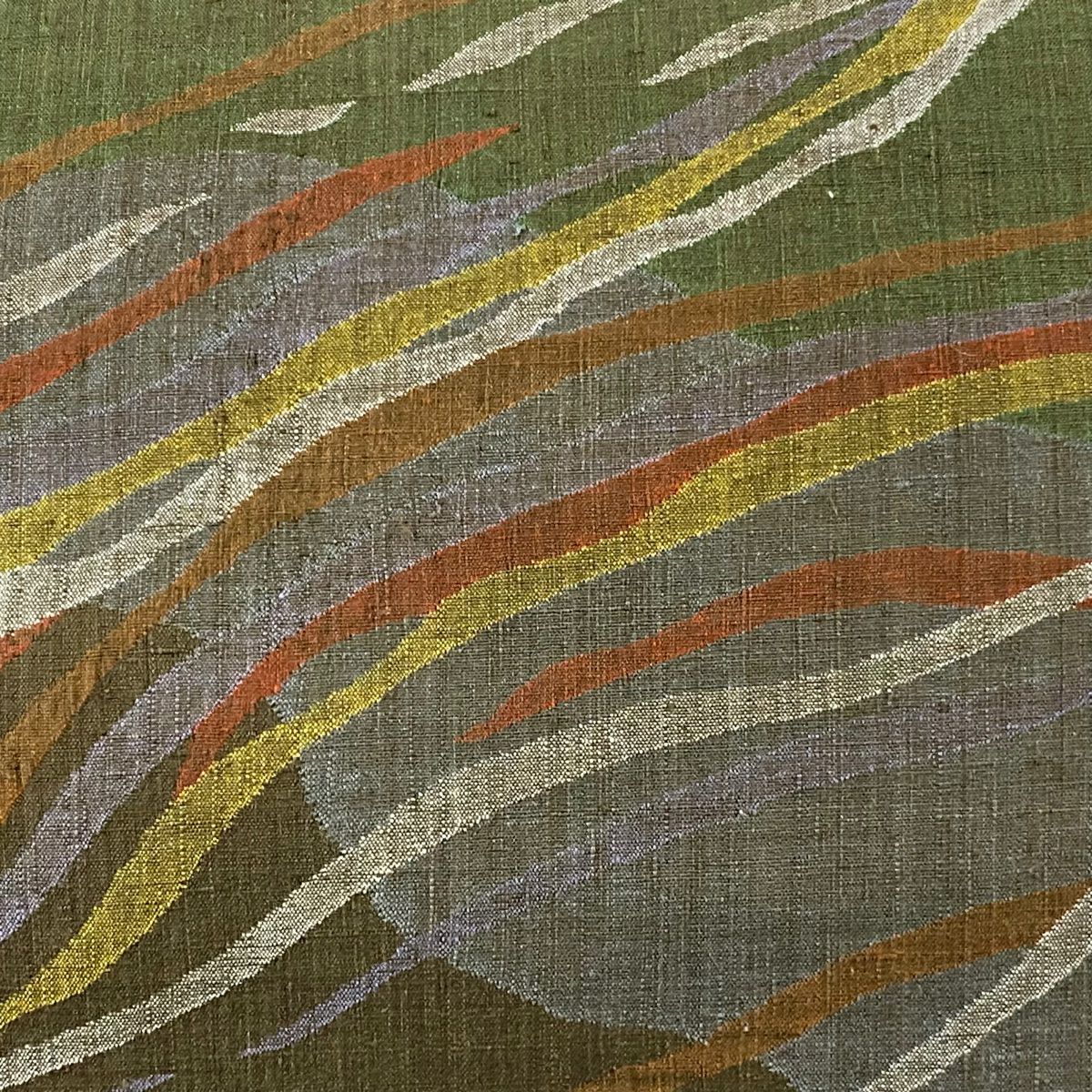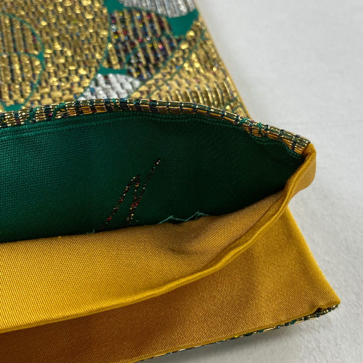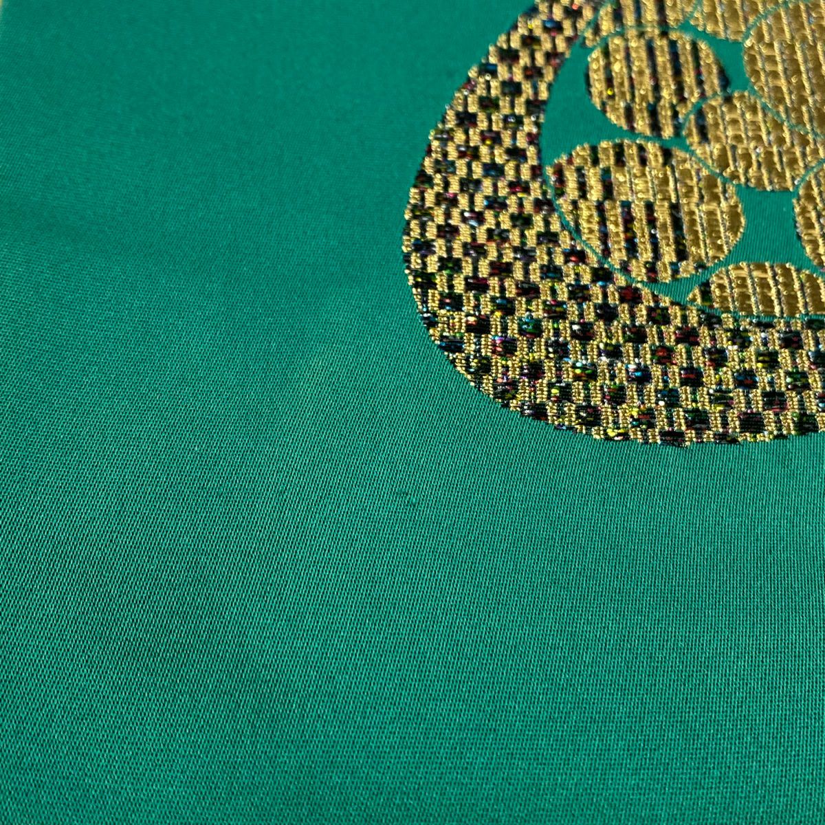 【在庫一掃】 【美品】 袋帯 秀品 幾何学 箔 緑 六通 正絹