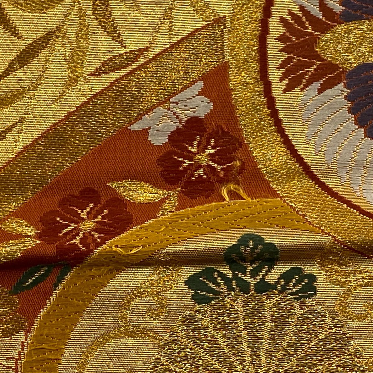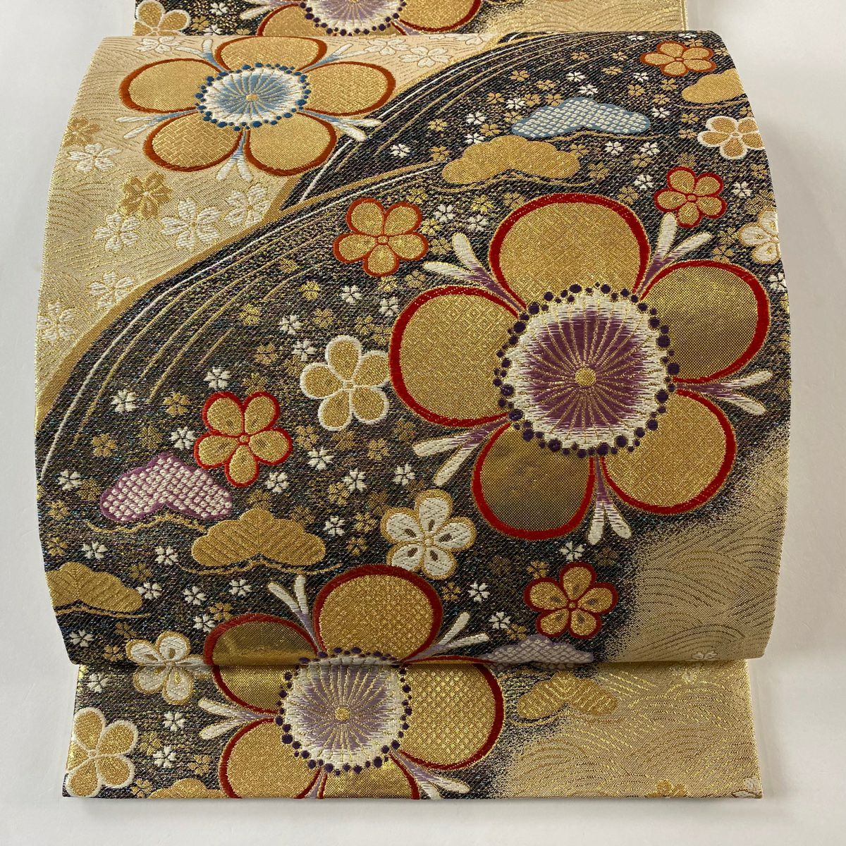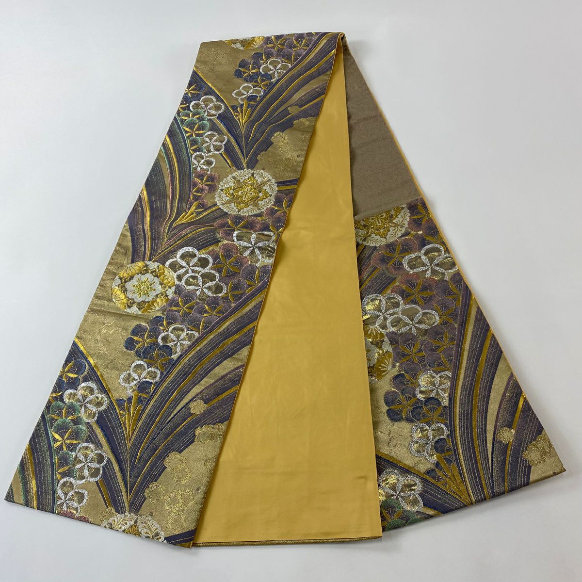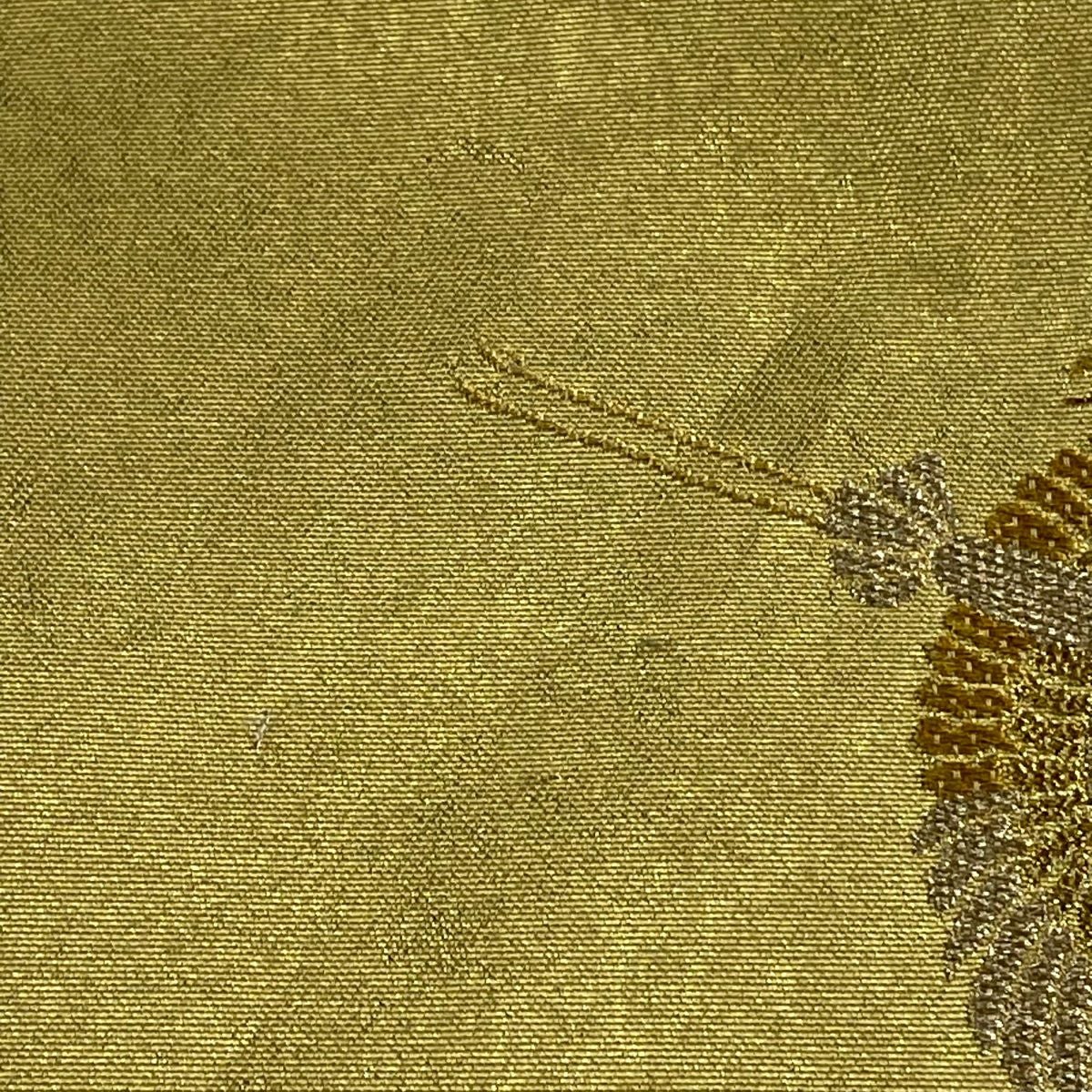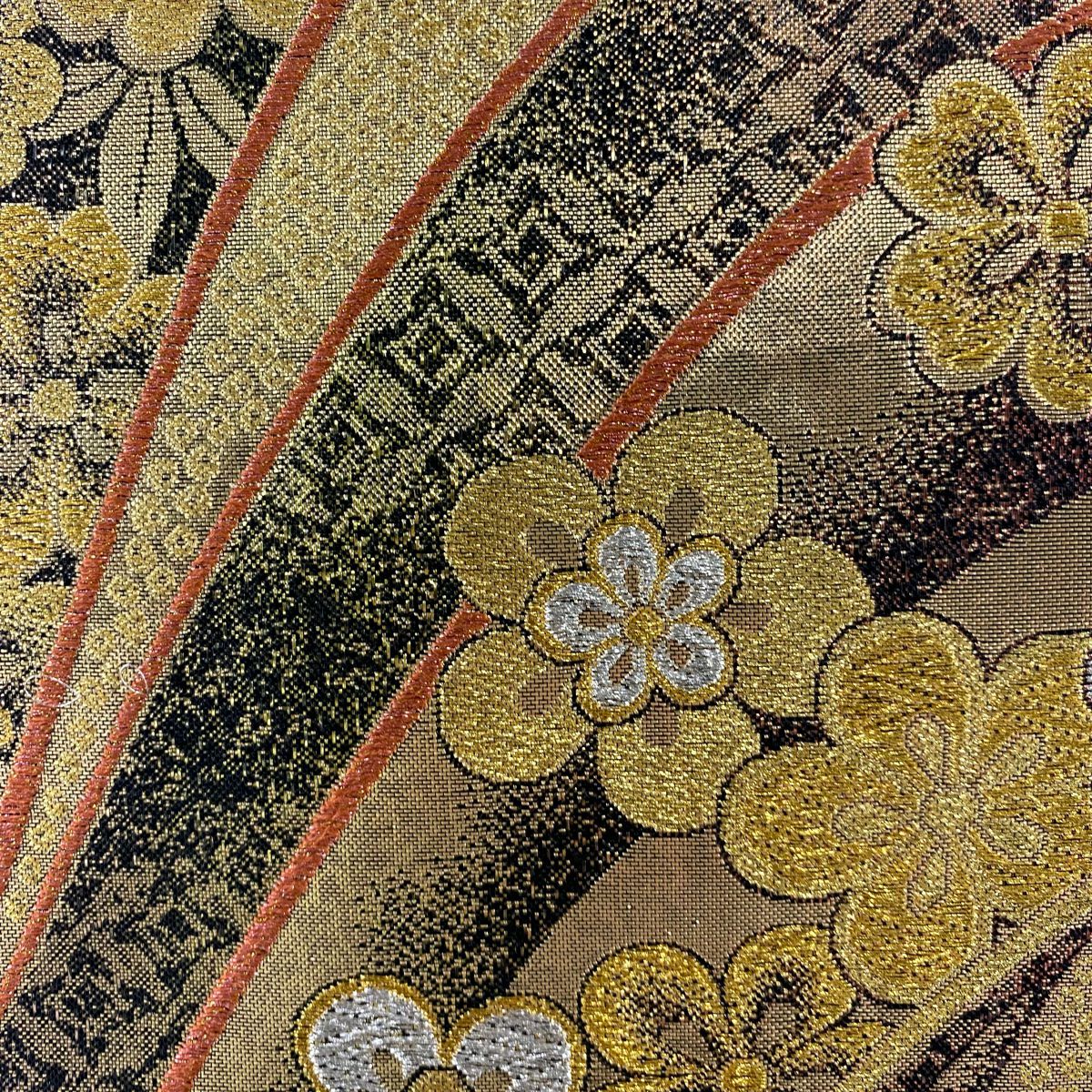 【在庫一掃】 袋帯 秀品 梅 菊 唐織 箔 金色 六通 正絹