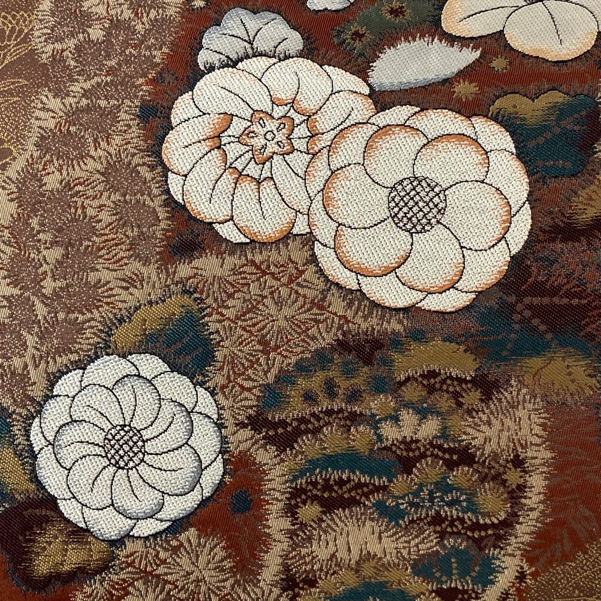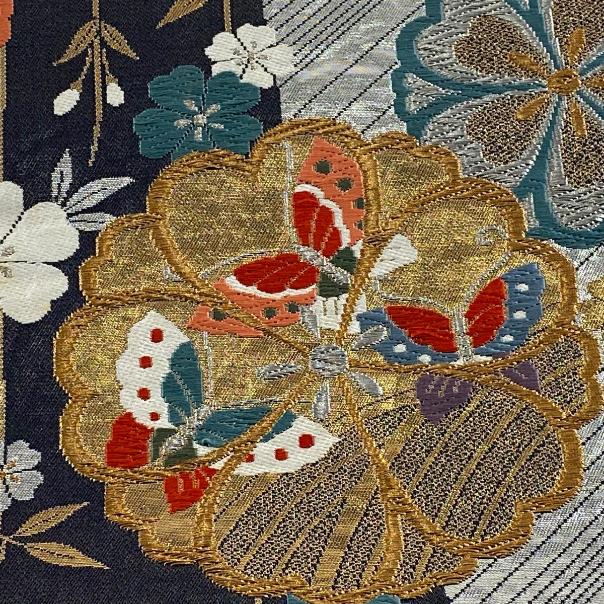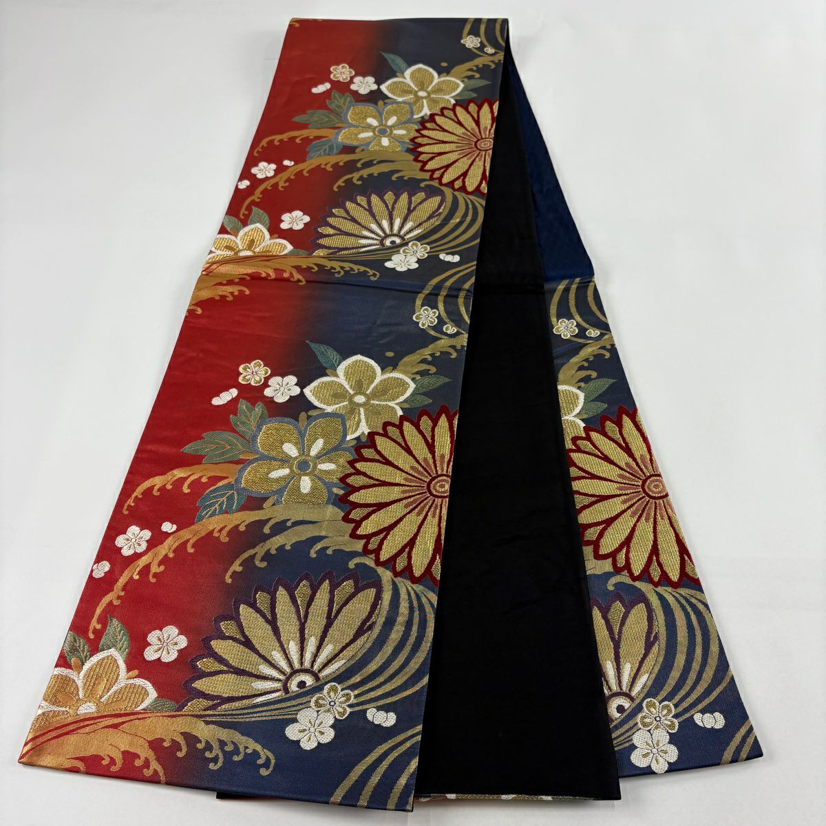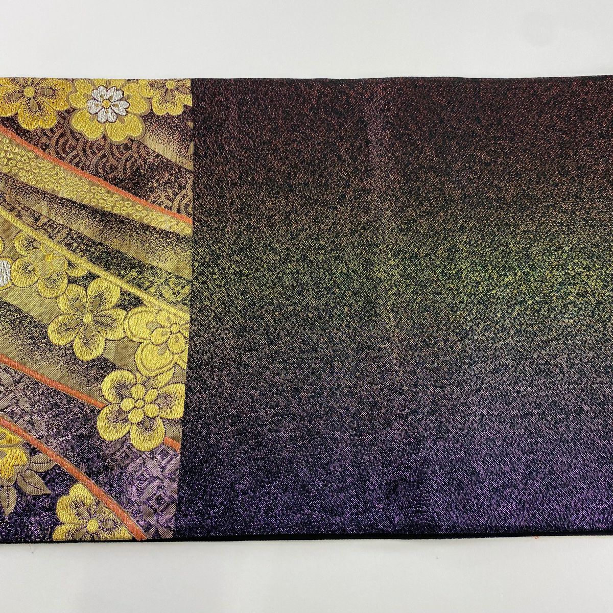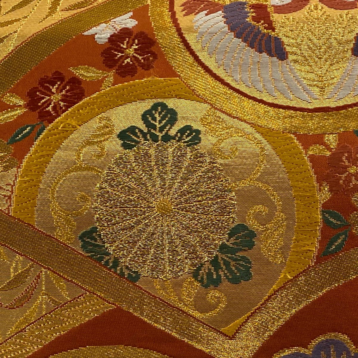 【在庫一掃】 袋帯 秀品 梅 菊 唐織 箔 金色 六通 正絹
