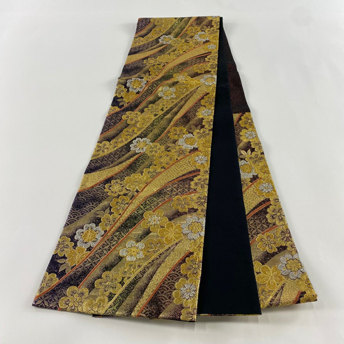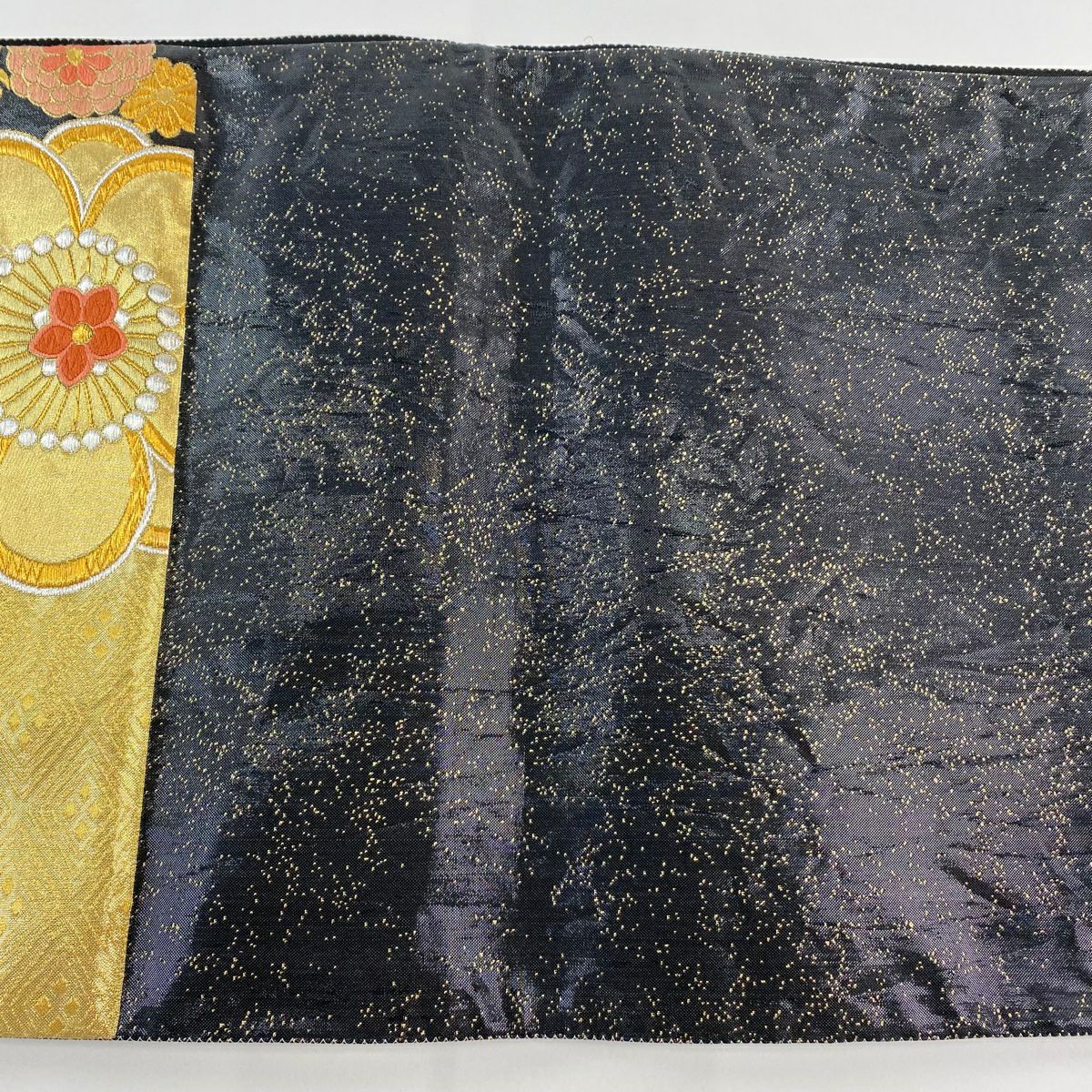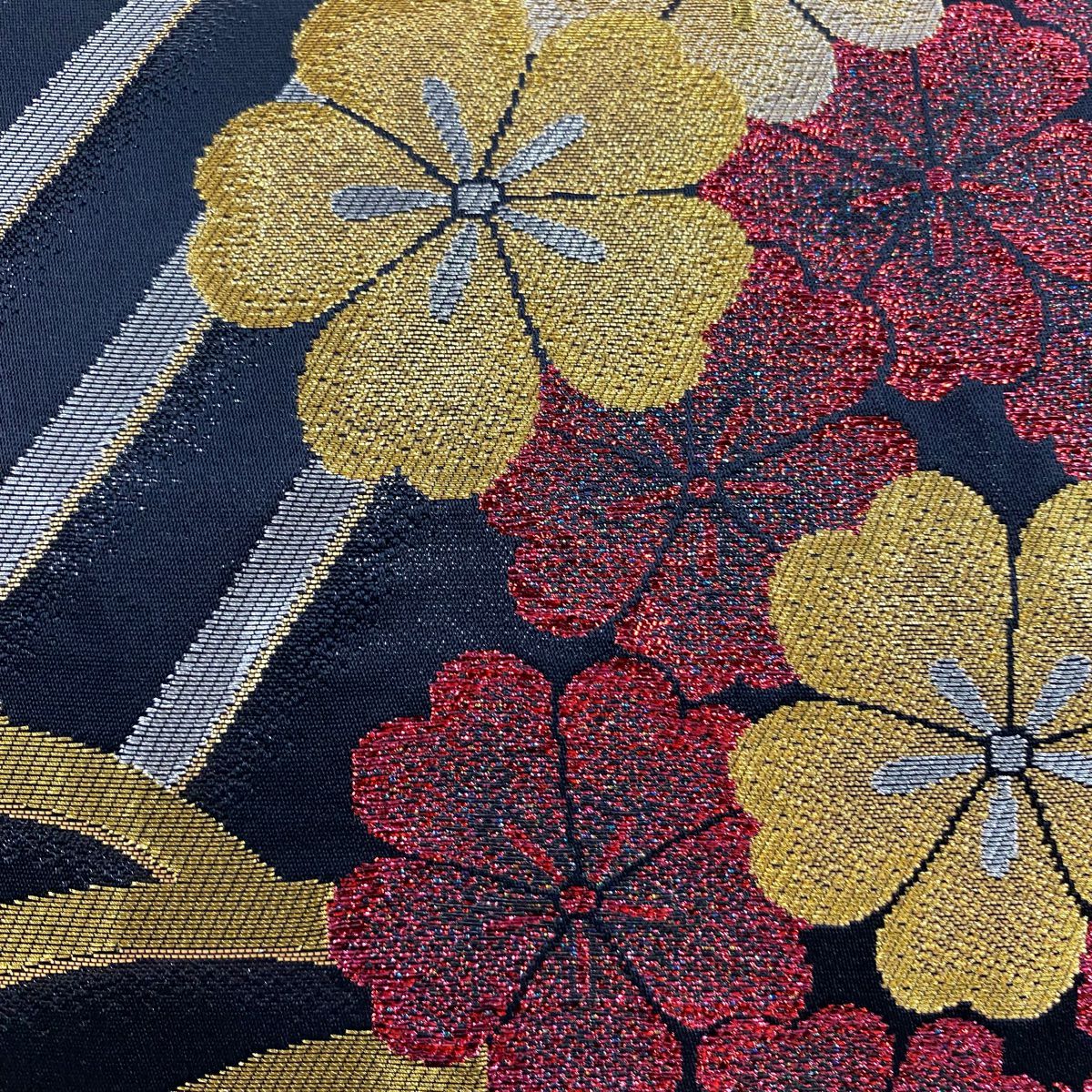 【在庫一掃】 袋帯 秀品 花 松梅 箔 金糸 黒 六通 正絹
