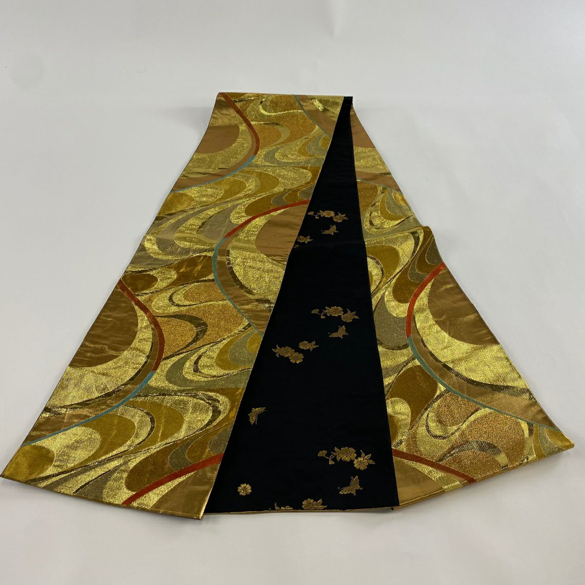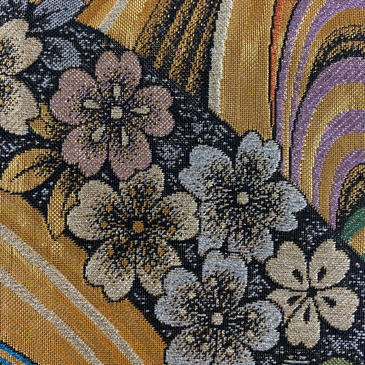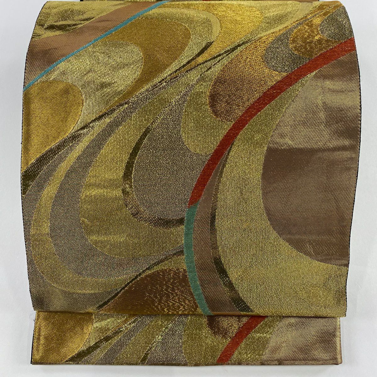【在庫一掃】 袋帯 秀品 流水 幾何学 箔 金色 全通 正絹