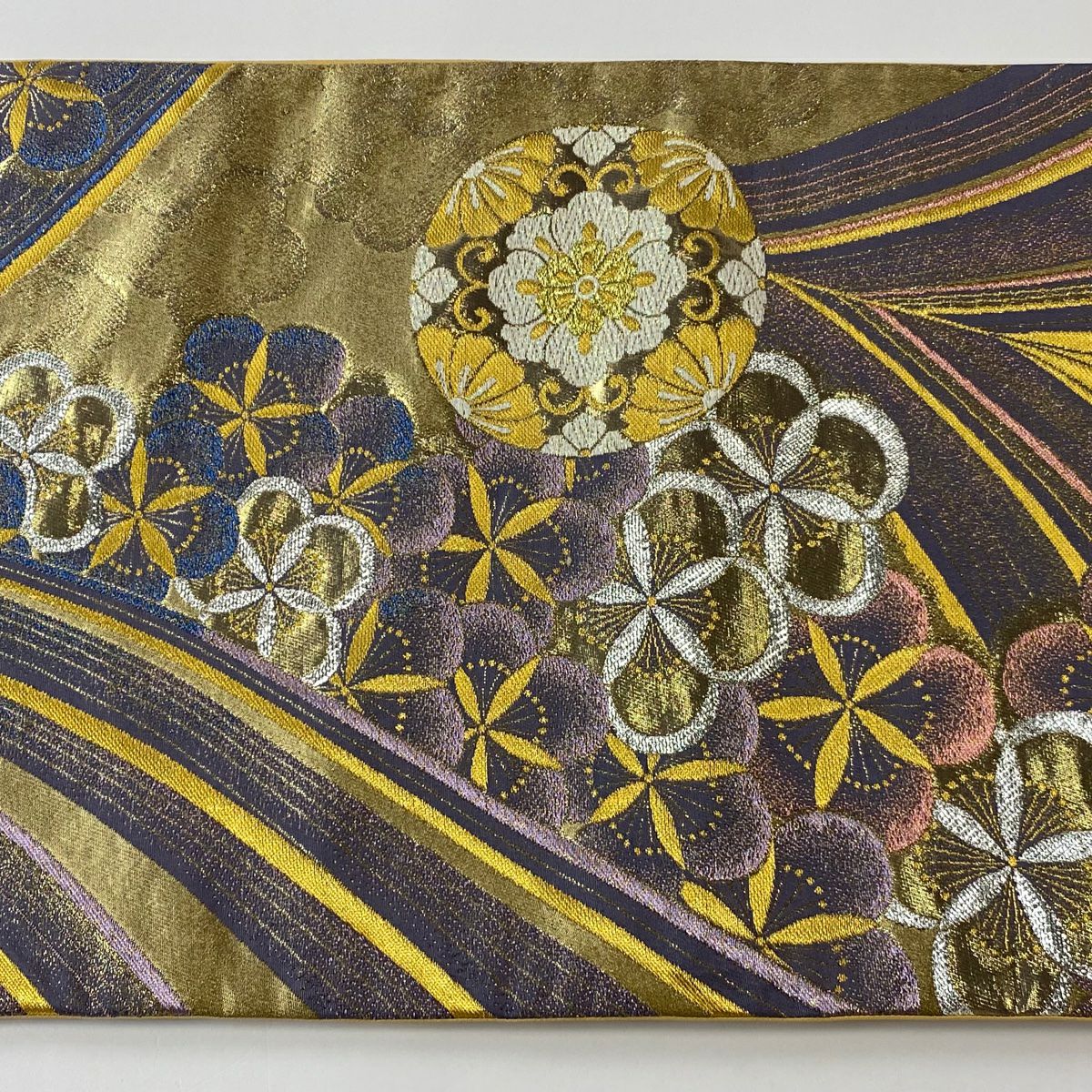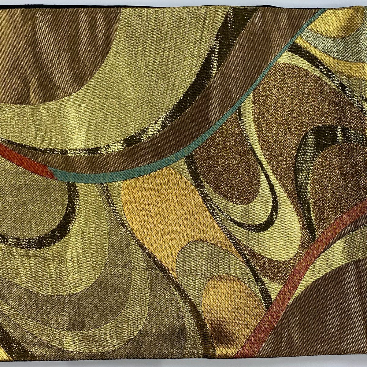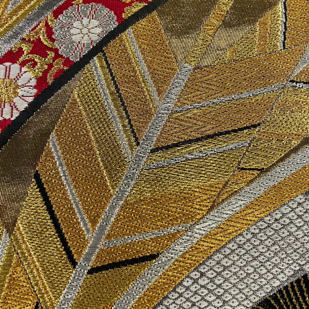 【在庫一掃】 袋帯 秀品 流水 幾何学 箔 金色 全通 正絹