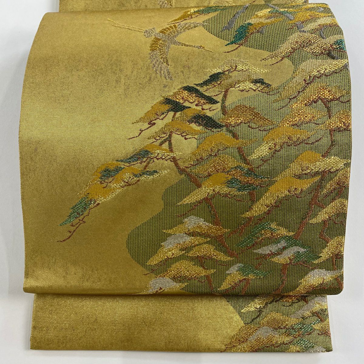【在庫一掃】 袋帯 秀品 笠松 鶴 金糸 箔 金色 六通 正絹