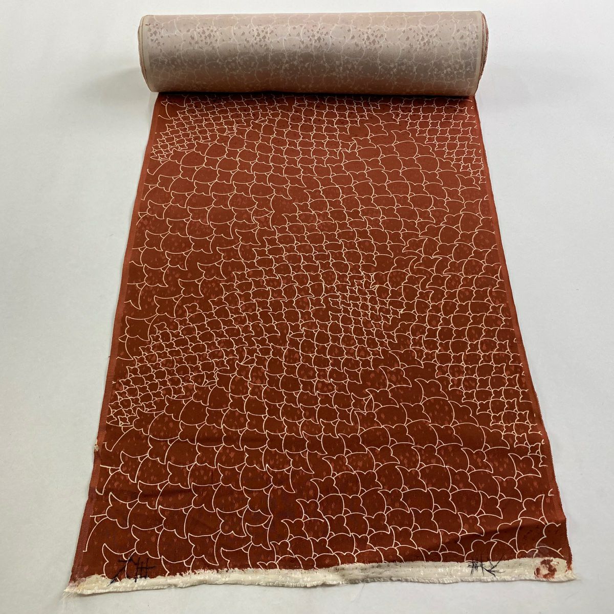 【在庫一掃】 反物 秀品 小紋 幾何学模様 地紋 茶色 正絹