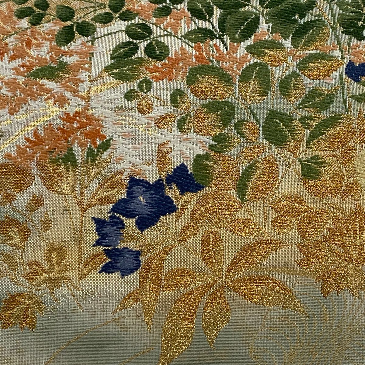 【在庫一掃】 袋帯 秀品 桜 楓 箔 金銀糸 金色 六通 正絹