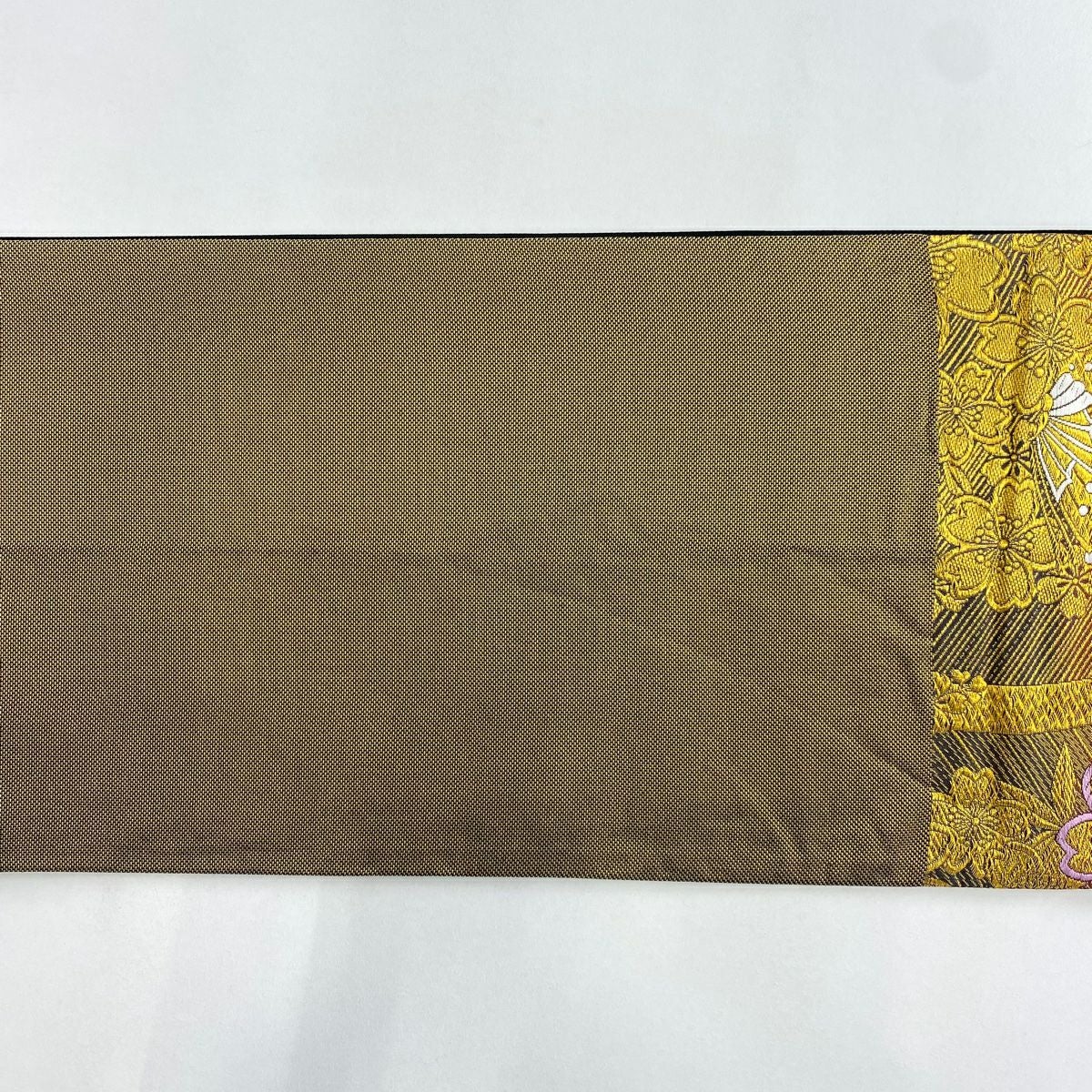 【在庫一掃】 袋帯 秀品 桜 流水 箔 金糸 金茶 六通 正絹