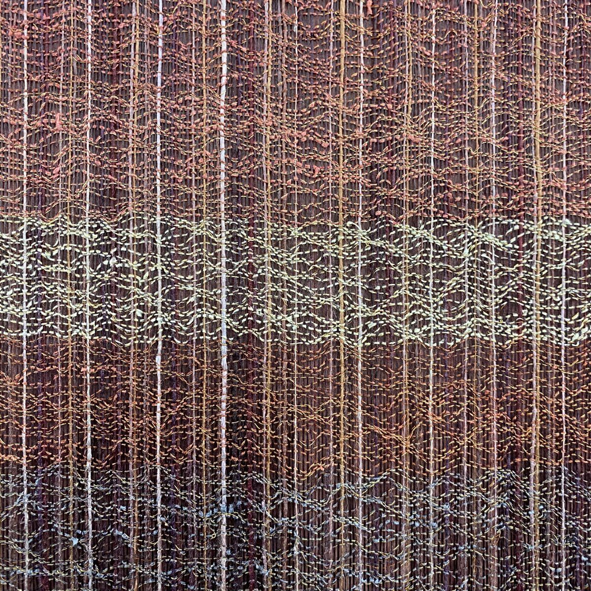 【在庫一掃】 袋帯 秀品 紬地 幾何学 茶色 お太鼓柄 正絹