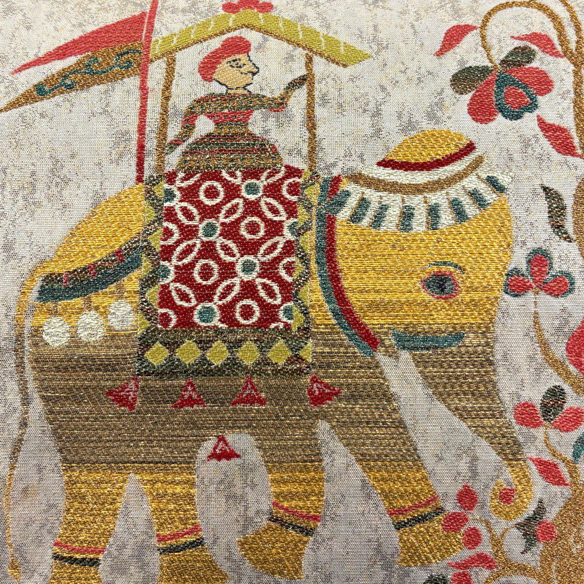 【美品】 袋帯 秀品 象 人物 箔 金糸 銀色 お太鼓柄 正絹