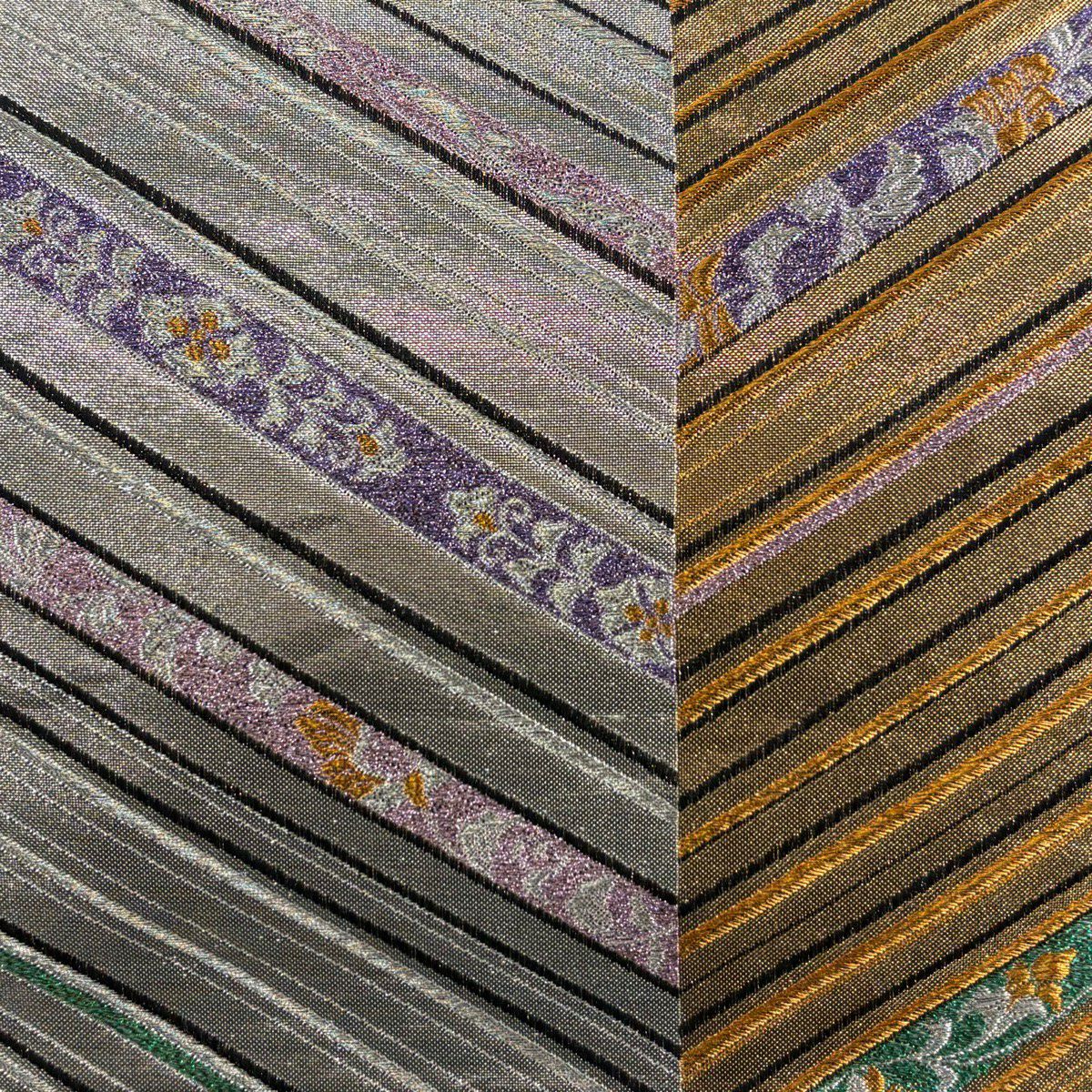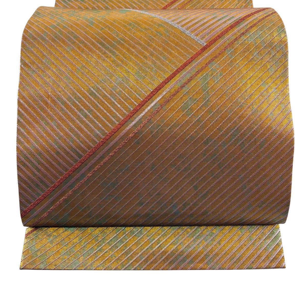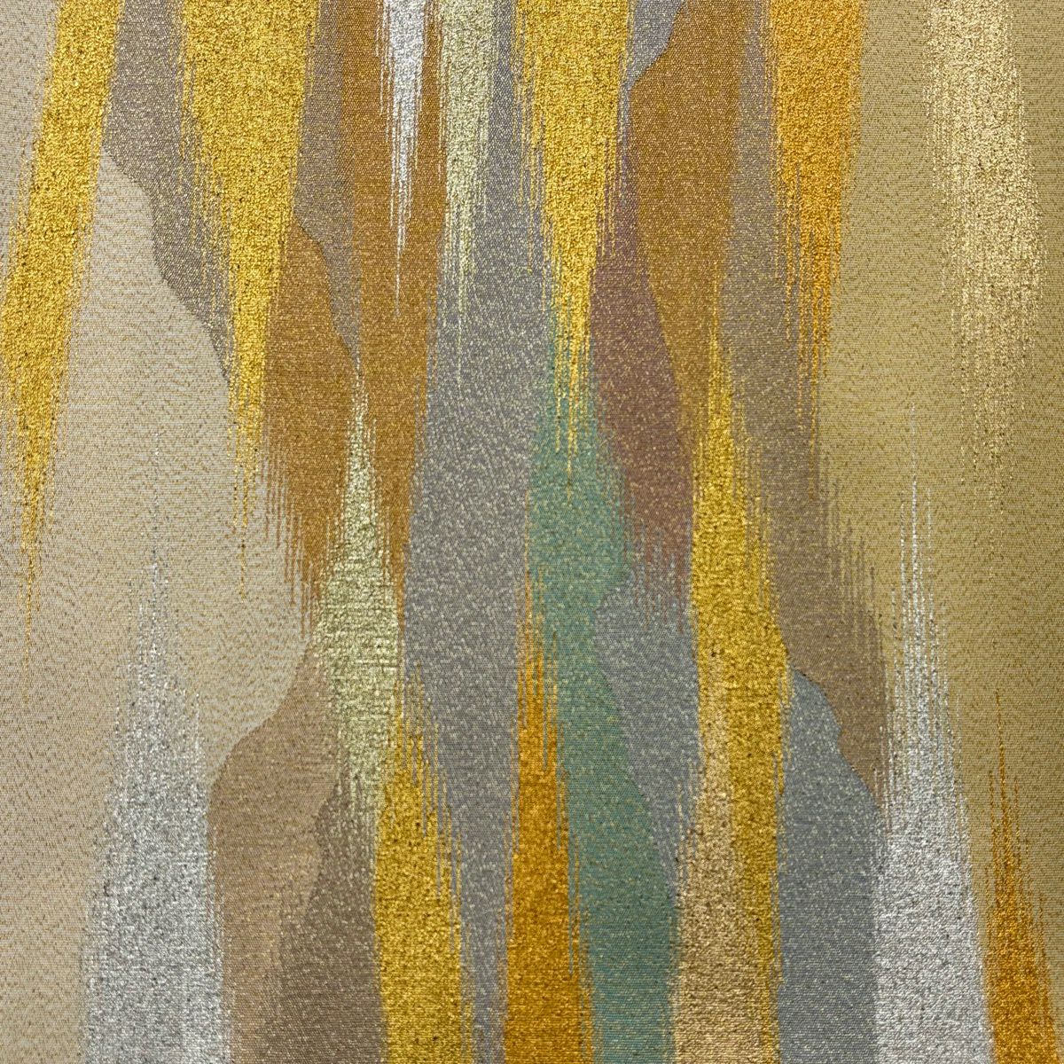 袋帯 秀品 落款あり コシノヒロコ 斜縞 箔 金色 六通 正絹
