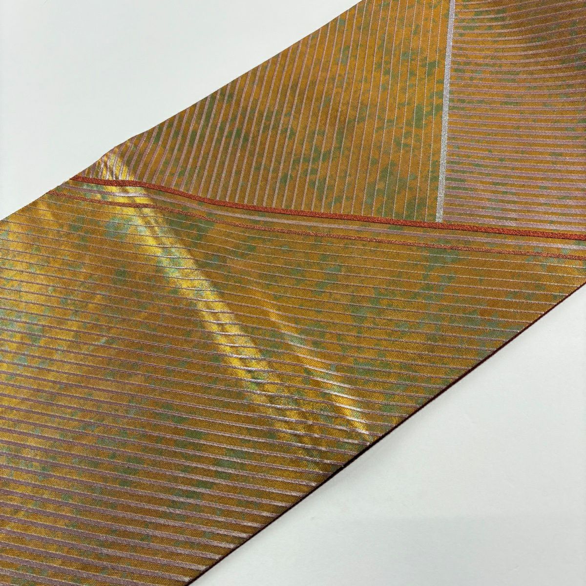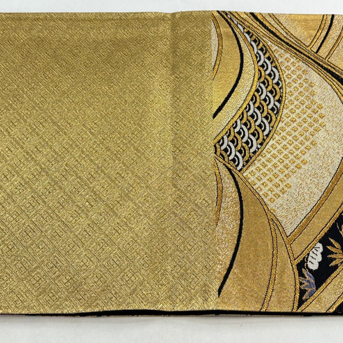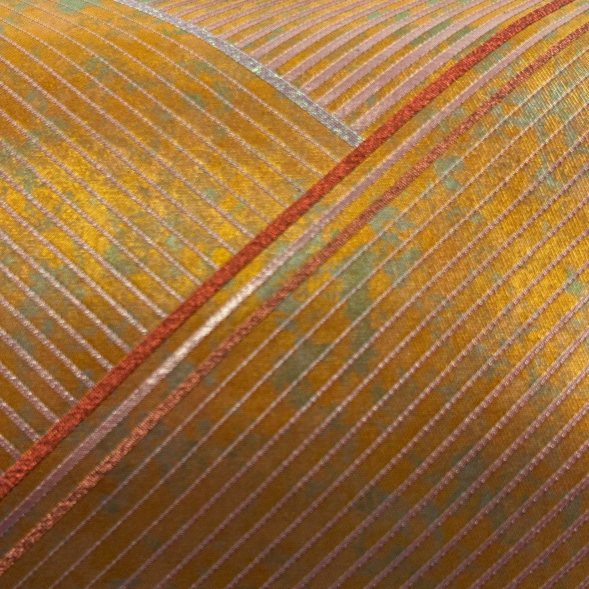 袋帯 秀品 落款あり コシノヒロコ 斜縞 箔 金色 六通 正絹