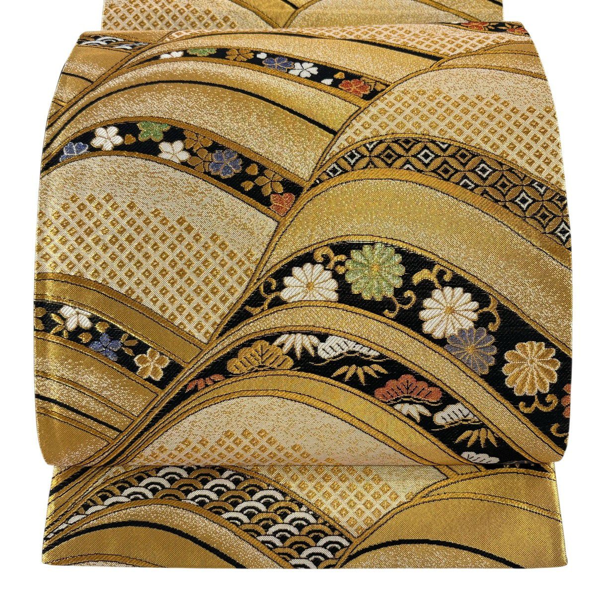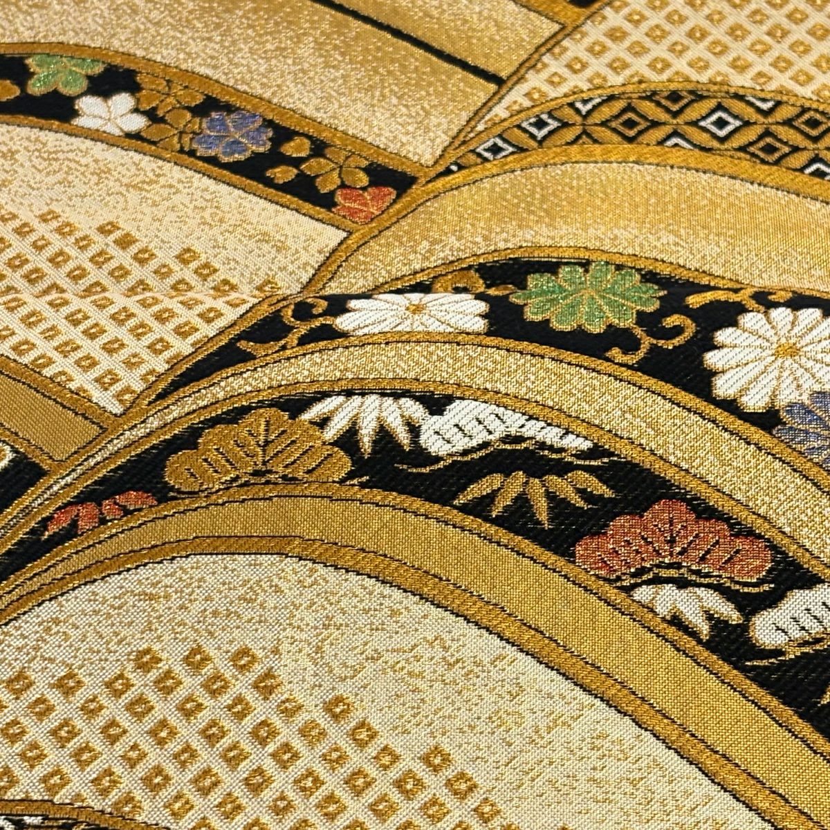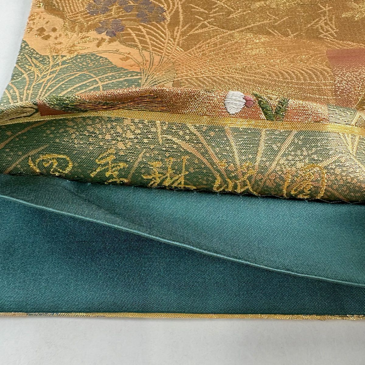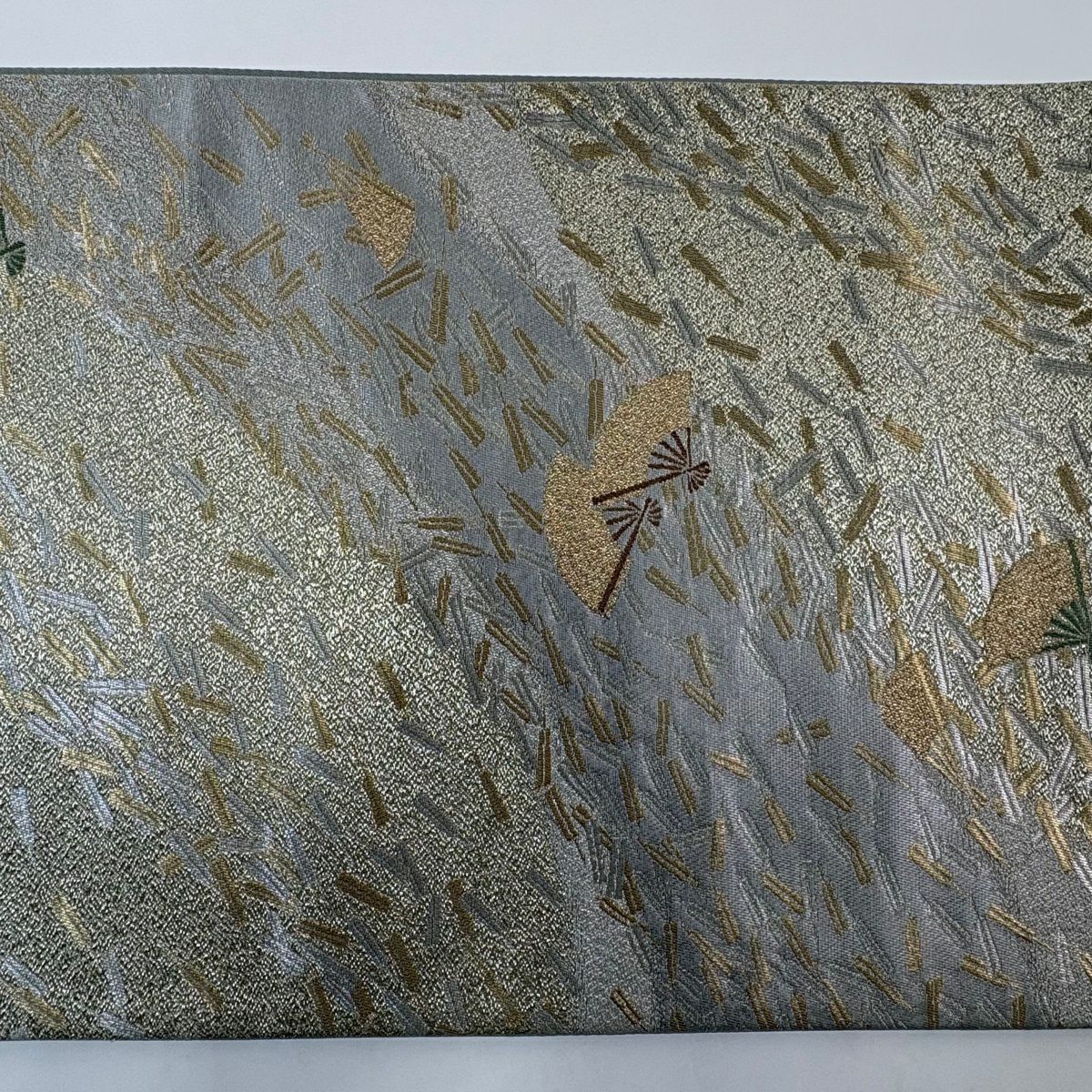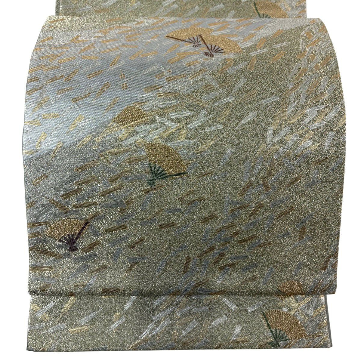袋帯 秀品 松尾光琳 落款あり 扇 銀糸 箔 金色 六通 正絹
