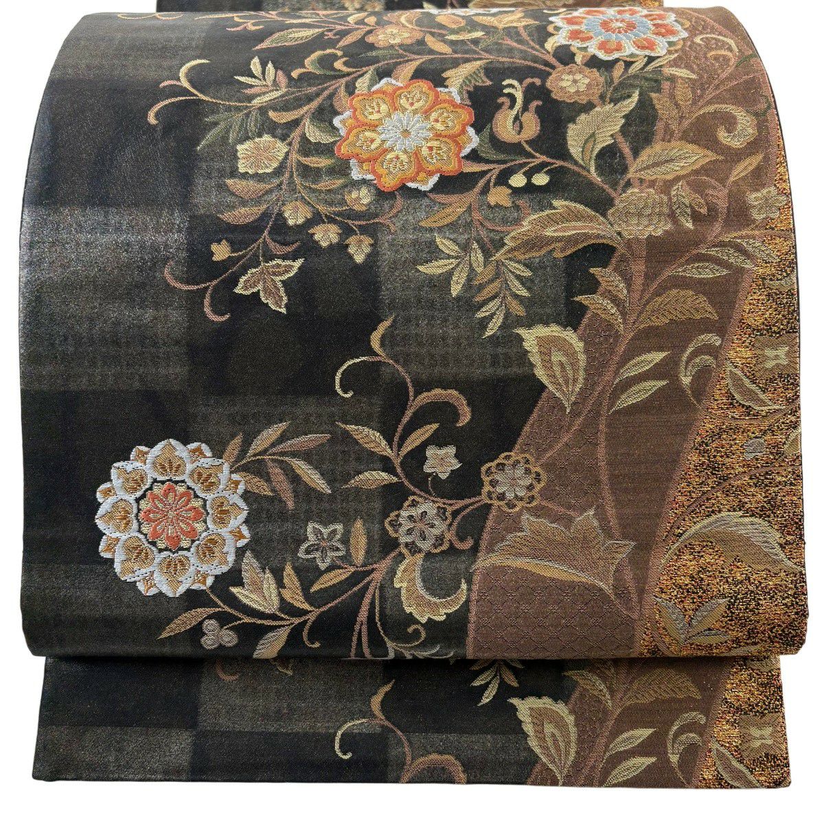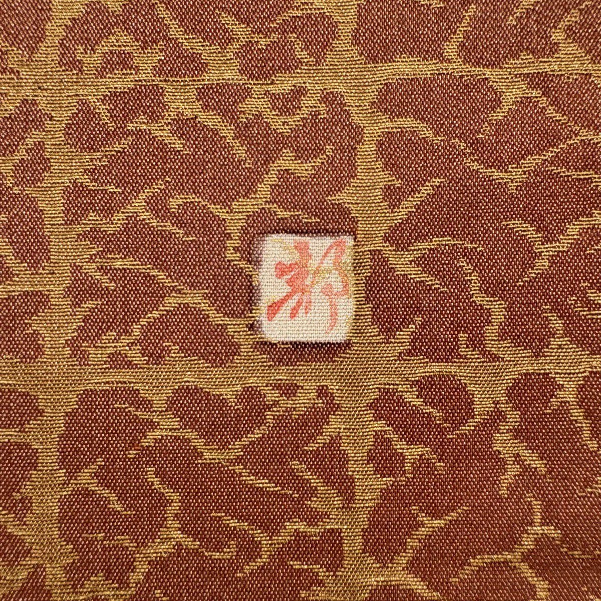 【美品】 袋帯 秀品 華文 花唐草 金銀糸 箔 金茶 六通 正絹