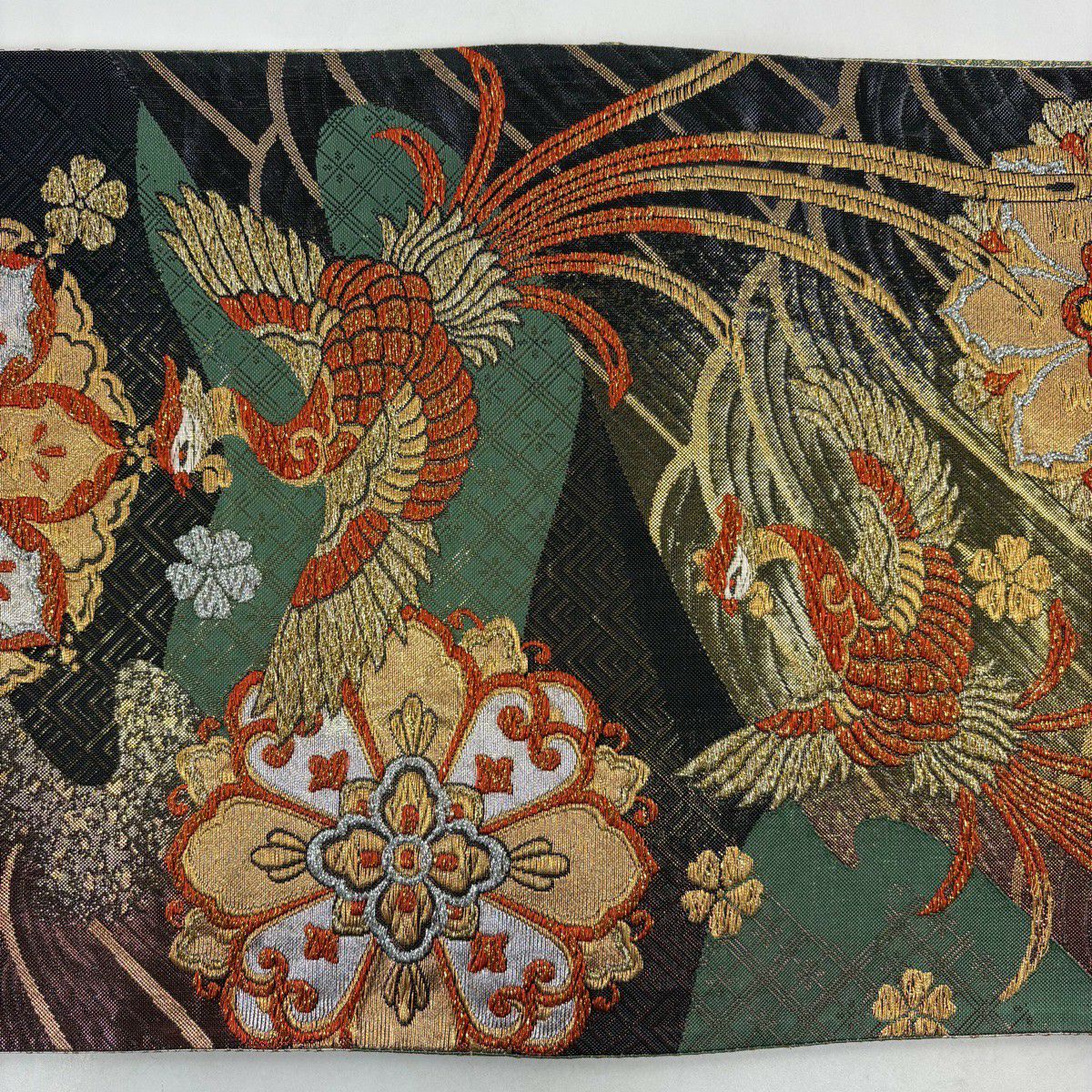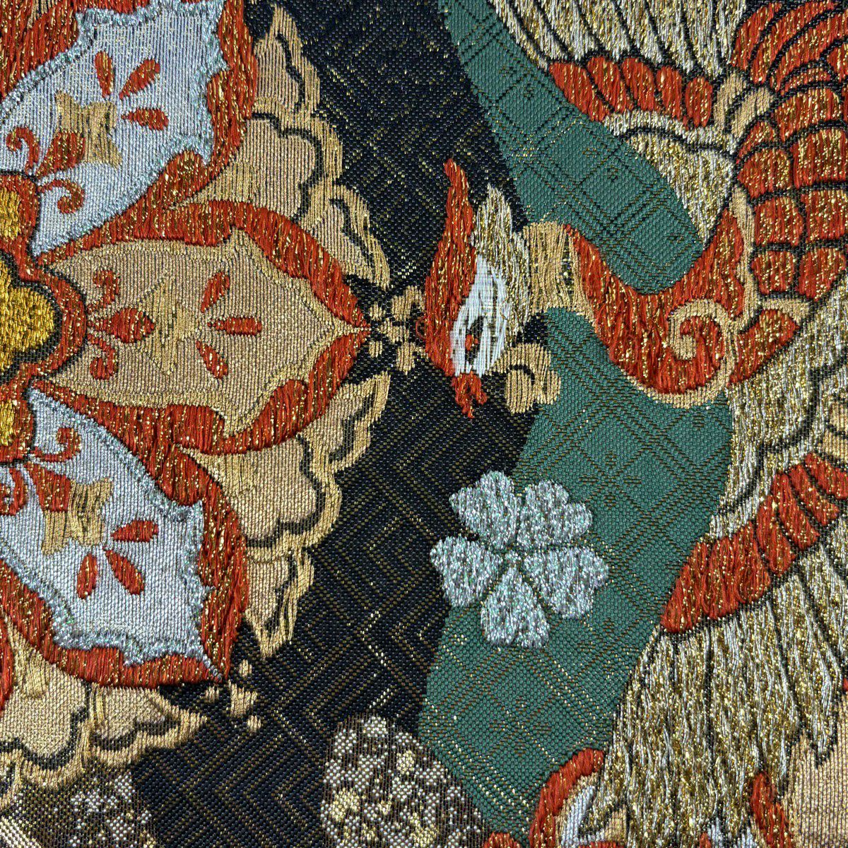 袋帯 秀品 関西仕立て 華文 鳳凰 金銀糸 箔 黒 六通 正絹
