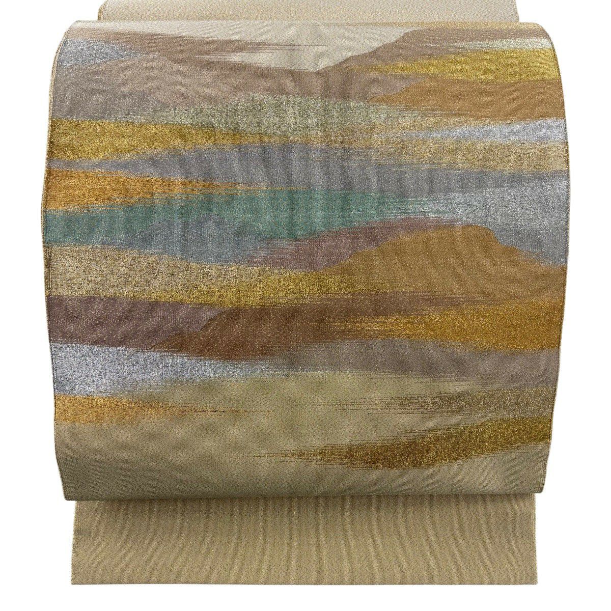 【美品】 袋帯 秀品 霞 金銀糸 ベージュ お太鼓柄 正絹