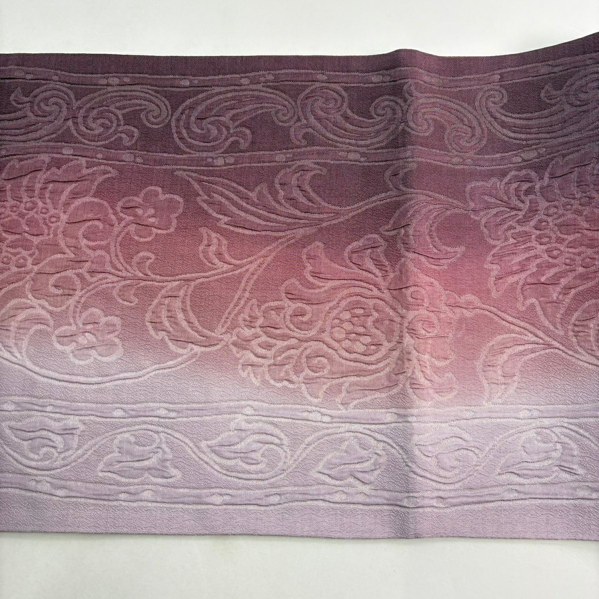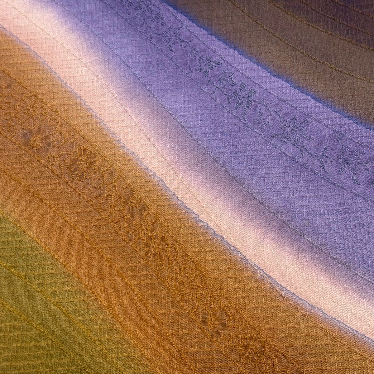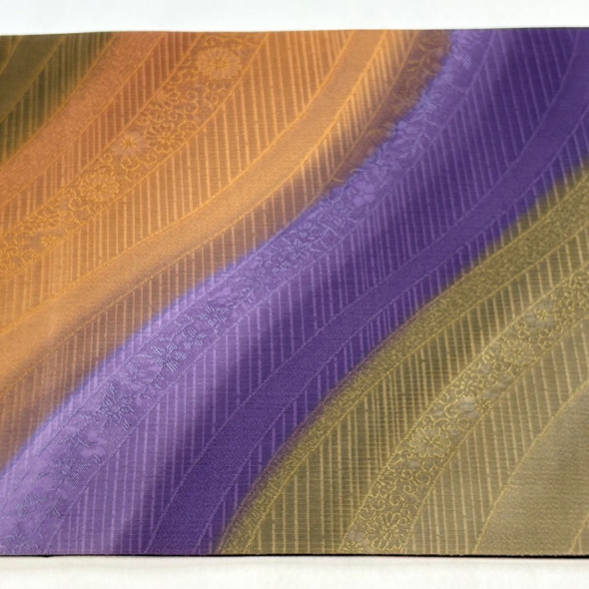 【美品】 袋帯 秀品 花唐草 縞 金糸 ぼかし 紫 全通 正絹