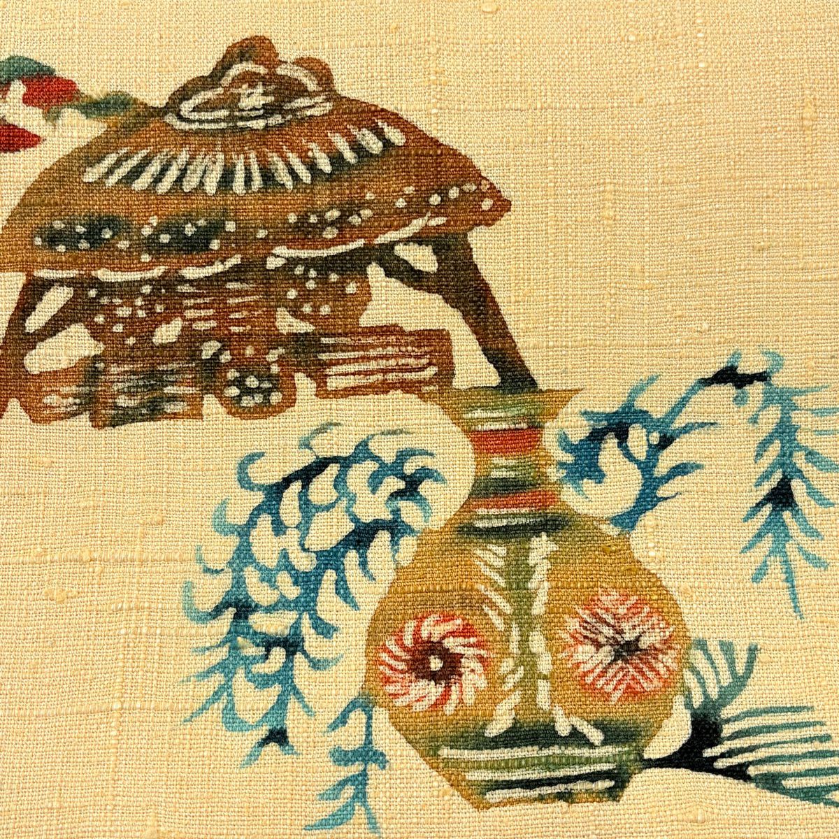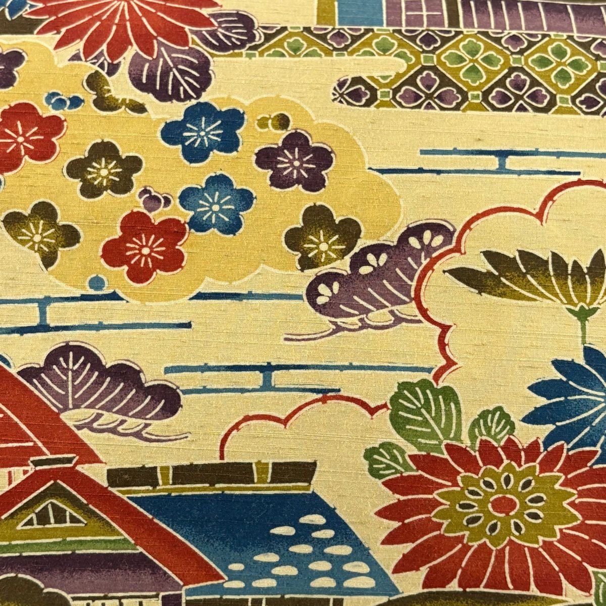 【美品】 名古屋帯 秀品 紬地 家屋 松梅 ベージュ 正絹