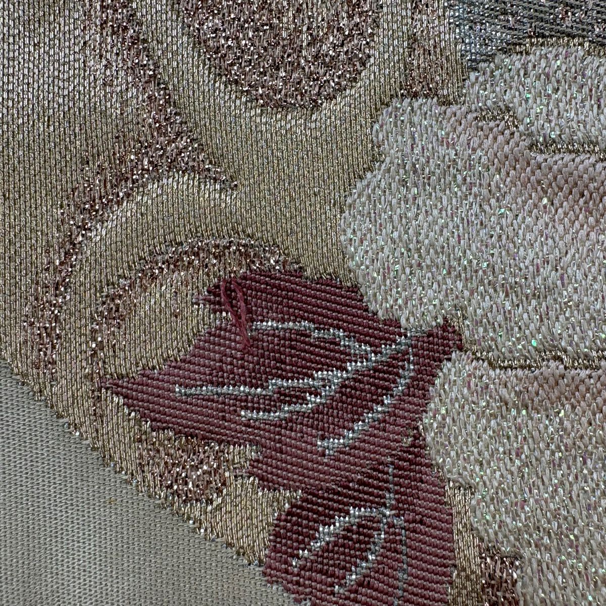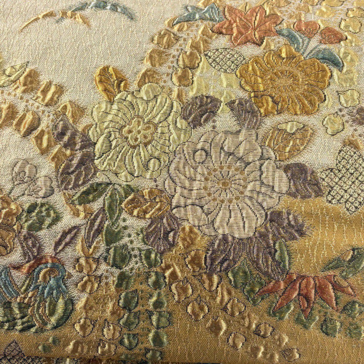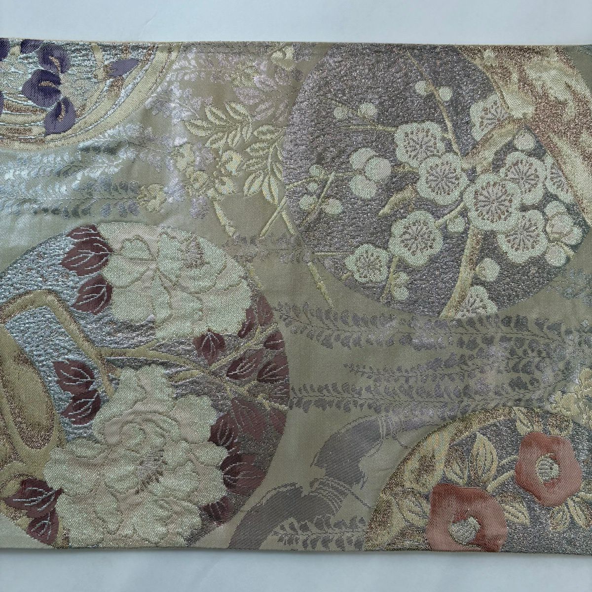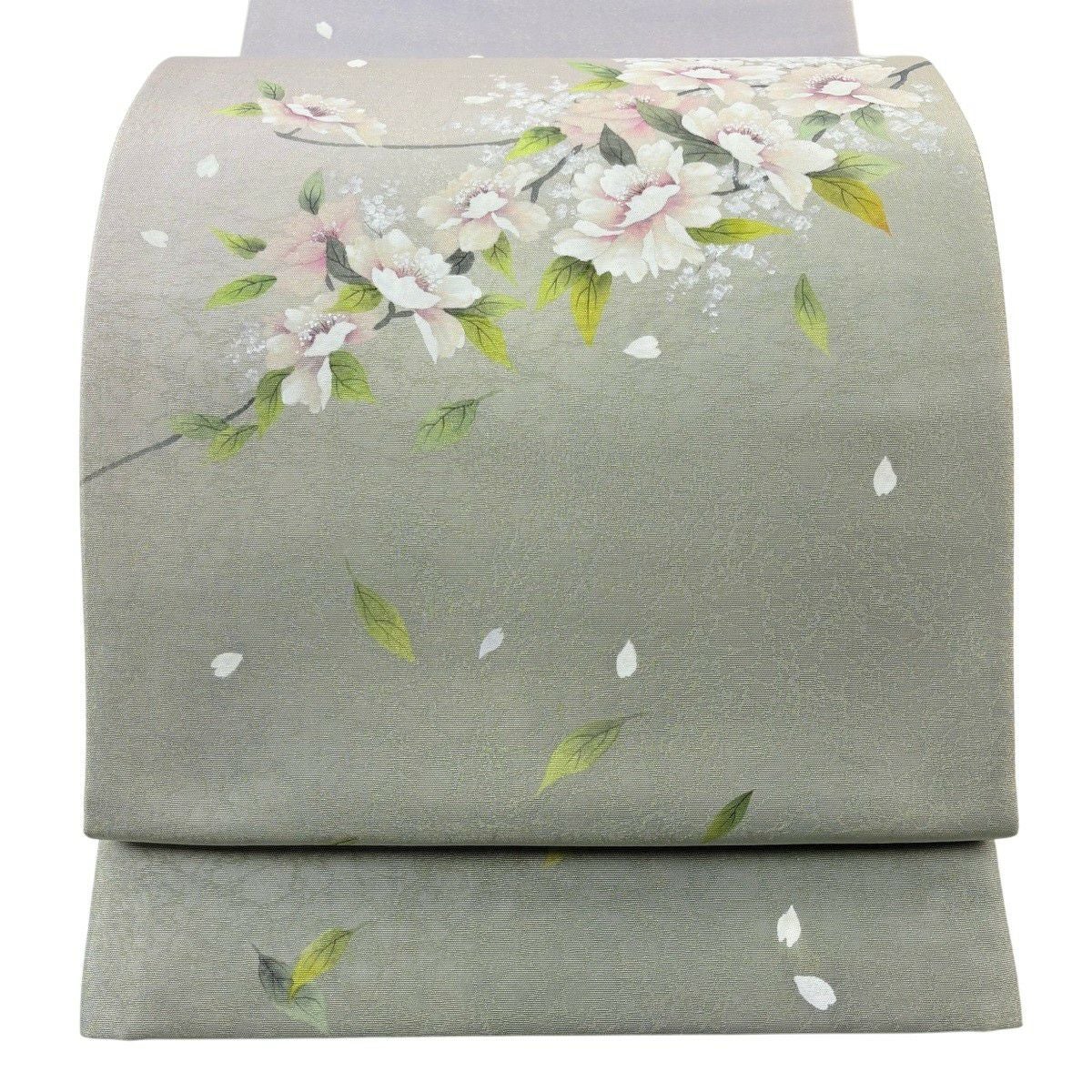 【美品】 袋帯 秀品 華文 桜 箔 金糸 クリーム 六通 正絹