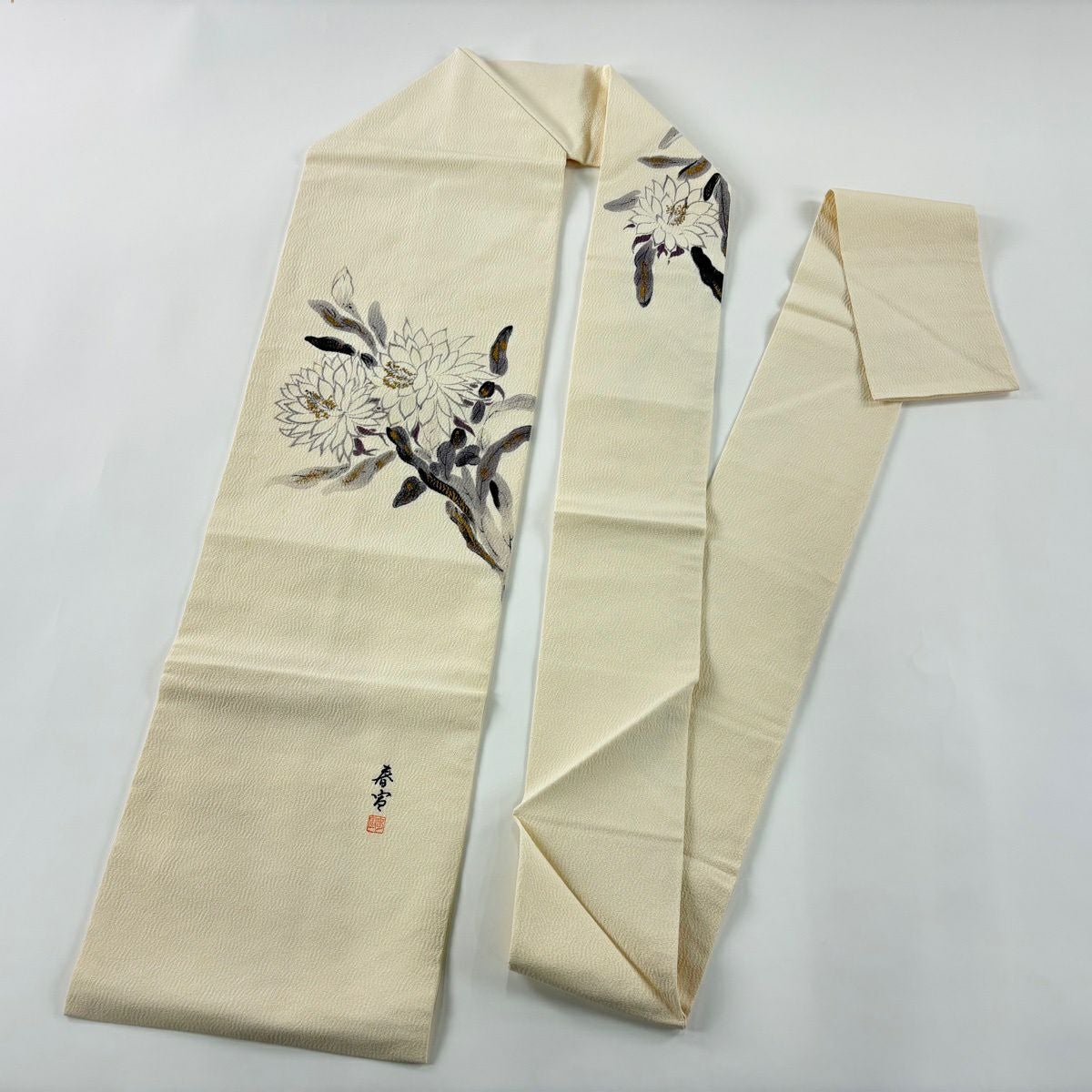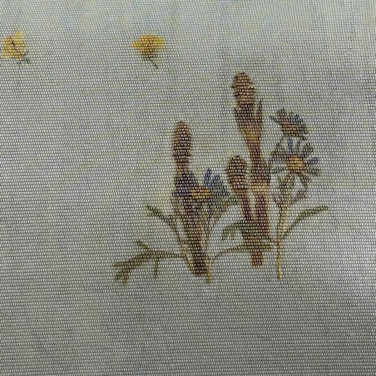 名古屋帯 秀品 落款あり 山科春宣 草花 金彩 クリーム 正絹