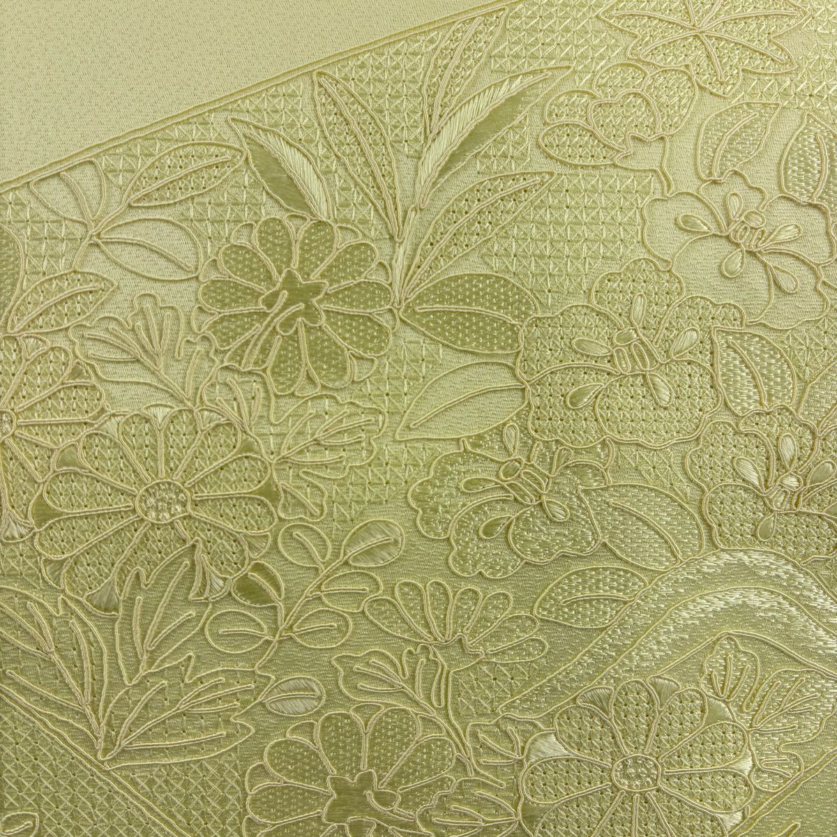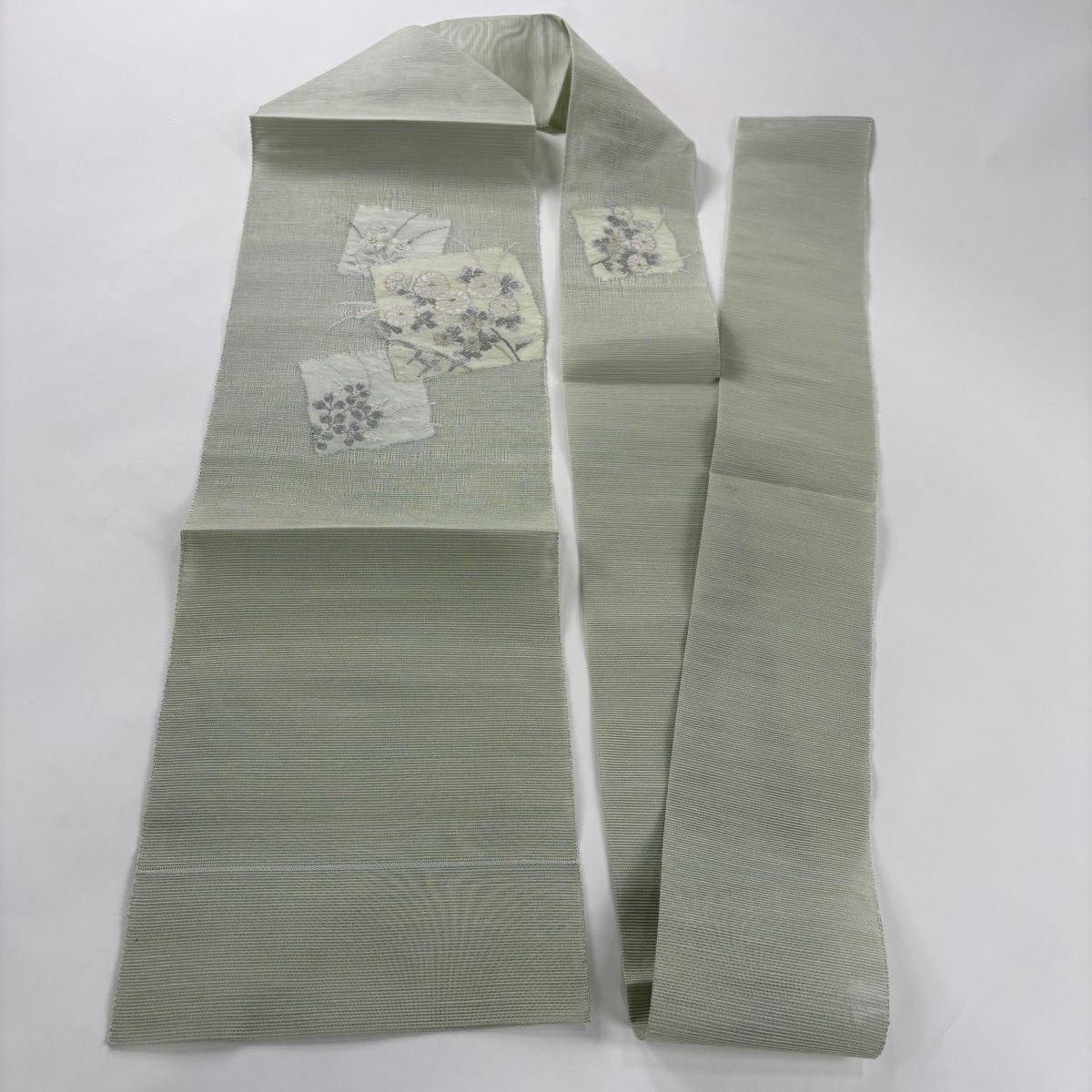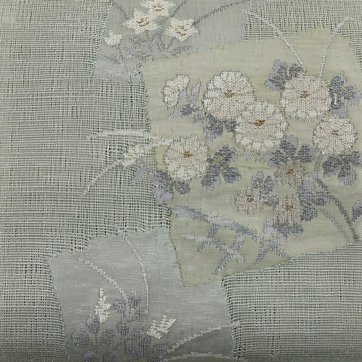 【美品】 名古屋帯 秀品 夏帯 草花 色紙 金銀糸 薄緑 正絹
