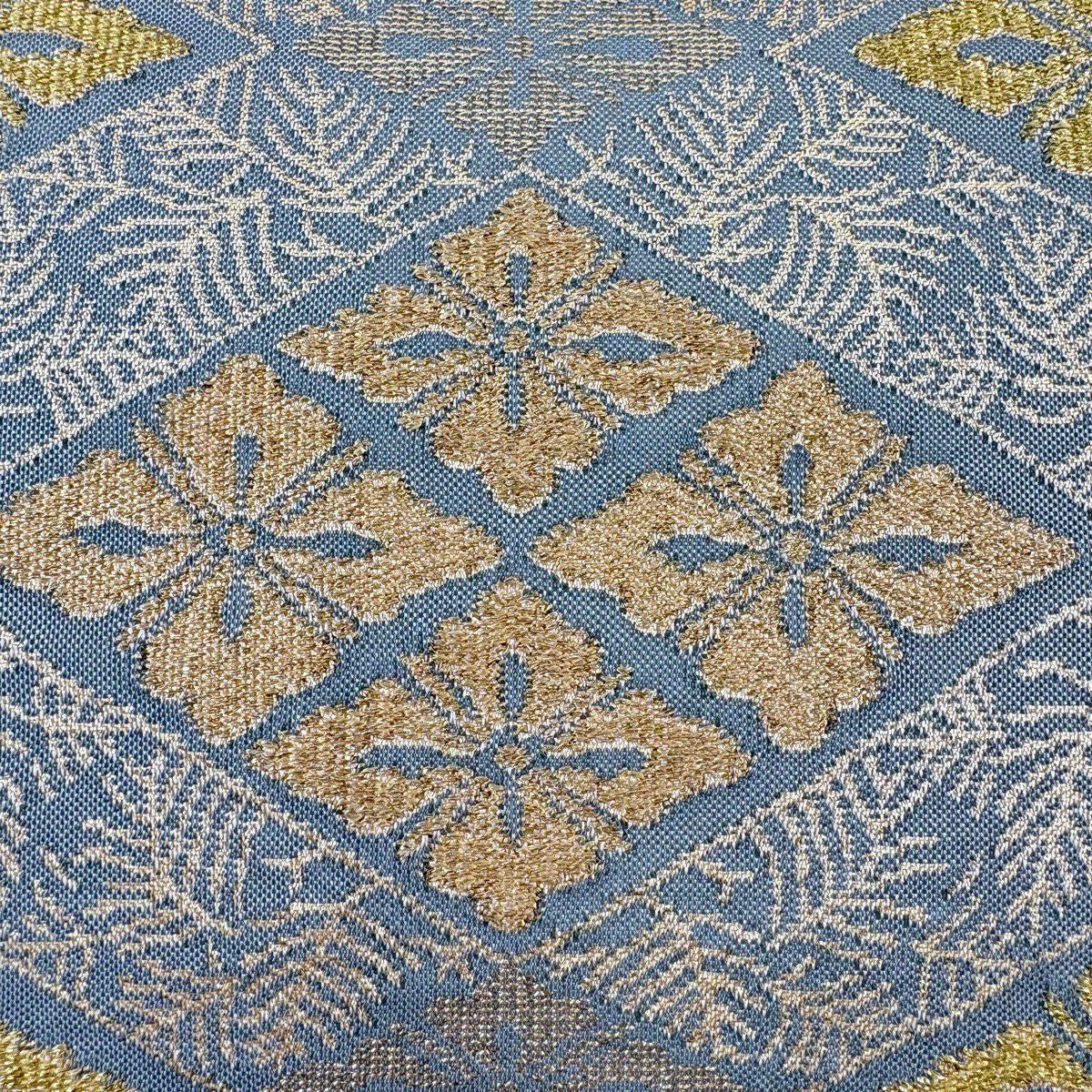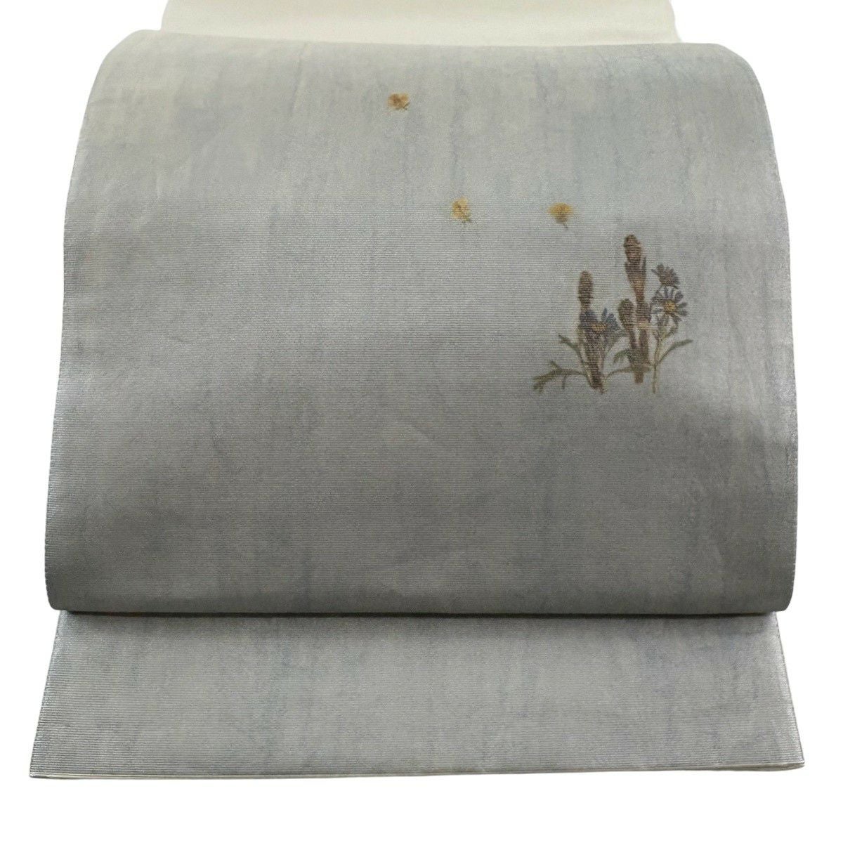 【美品】 袋帯 秀品 草花 流水 金糸 箔 青灰色 六通 正絹