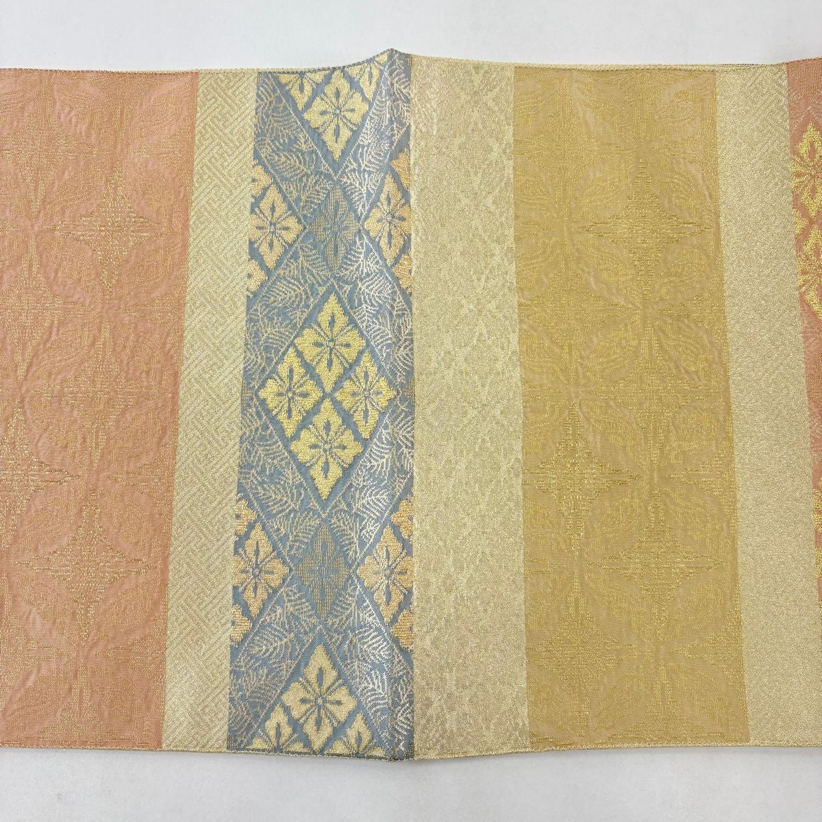 【美品】 袋帯 秀品 本袋帯 斜め格子 金糸 薄茶色 全通 正絹