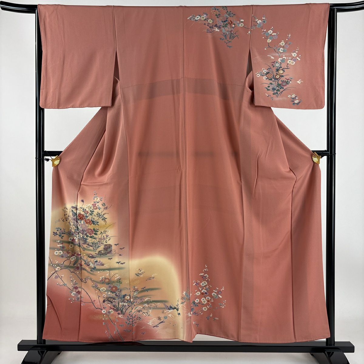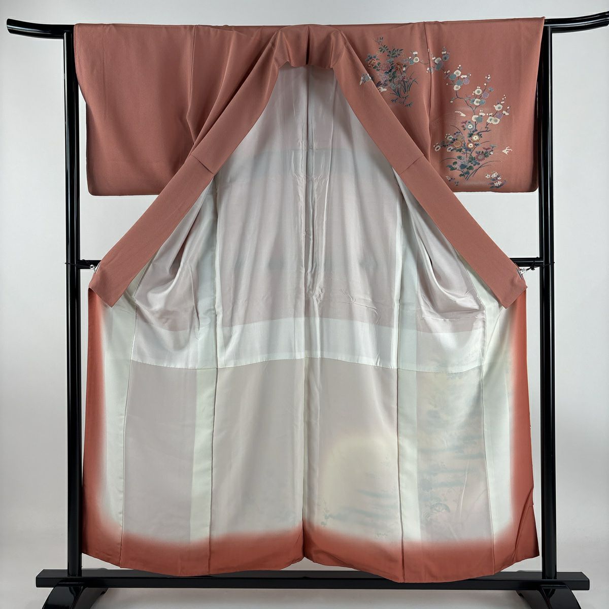 70%OFF 訪問着 身丈154.5cm 裄丈62cm S 袷 落款あり 萩 ぼかし 薄小豆 正絹 美品 秀品 K70