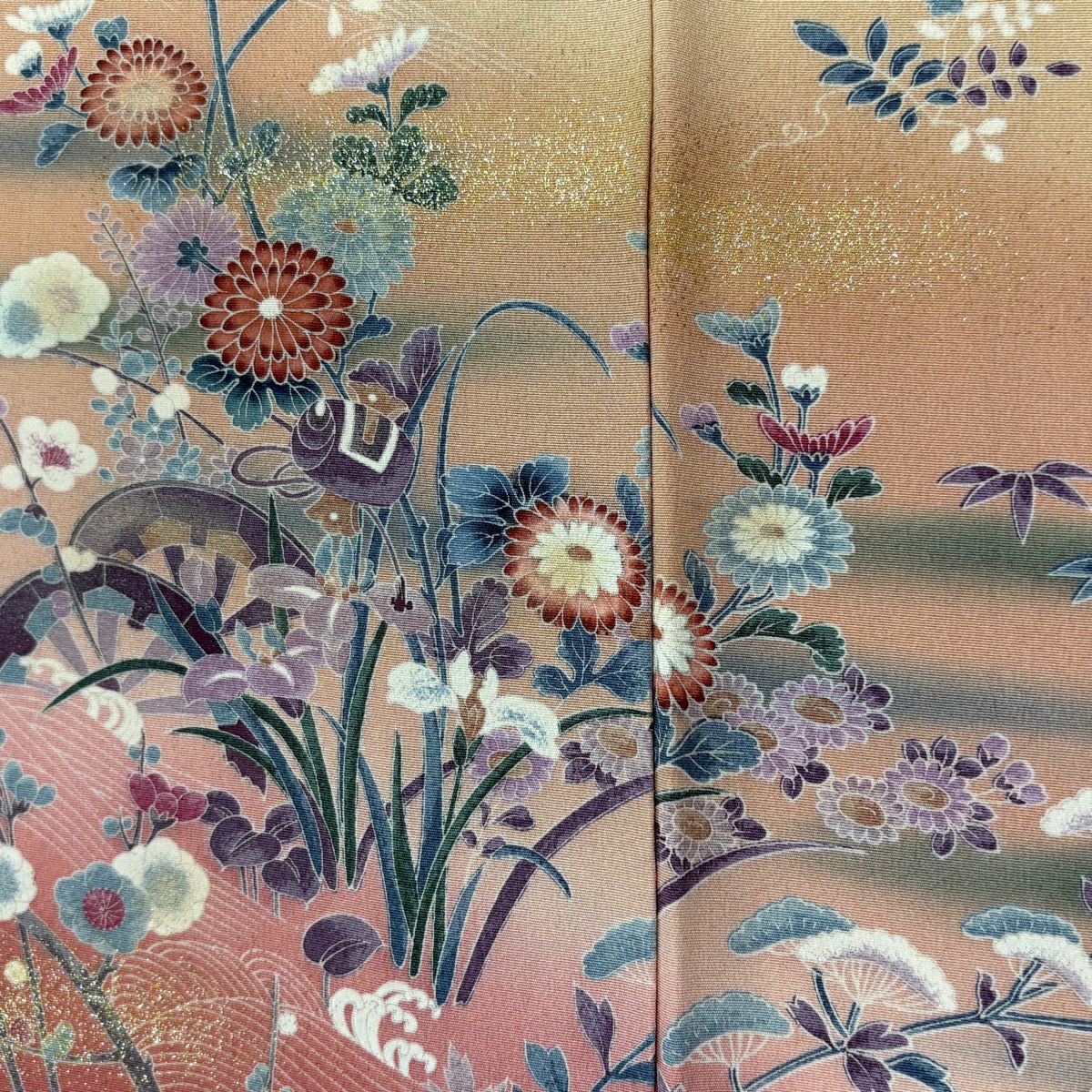 63%OFF 訪問着 身丈163cm 裄丈63.5cm S 袷 草花 扇 金糸 金彩 ピンク 正絹 美品 秀品 K50