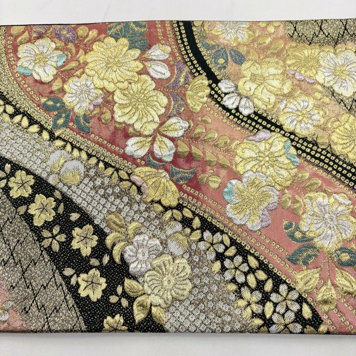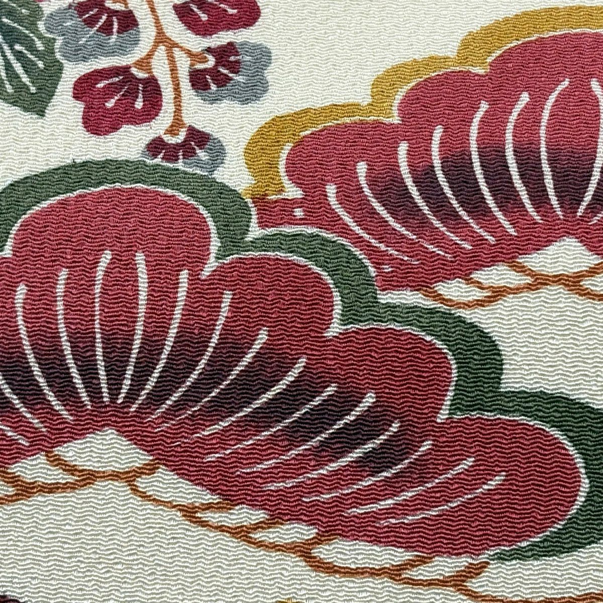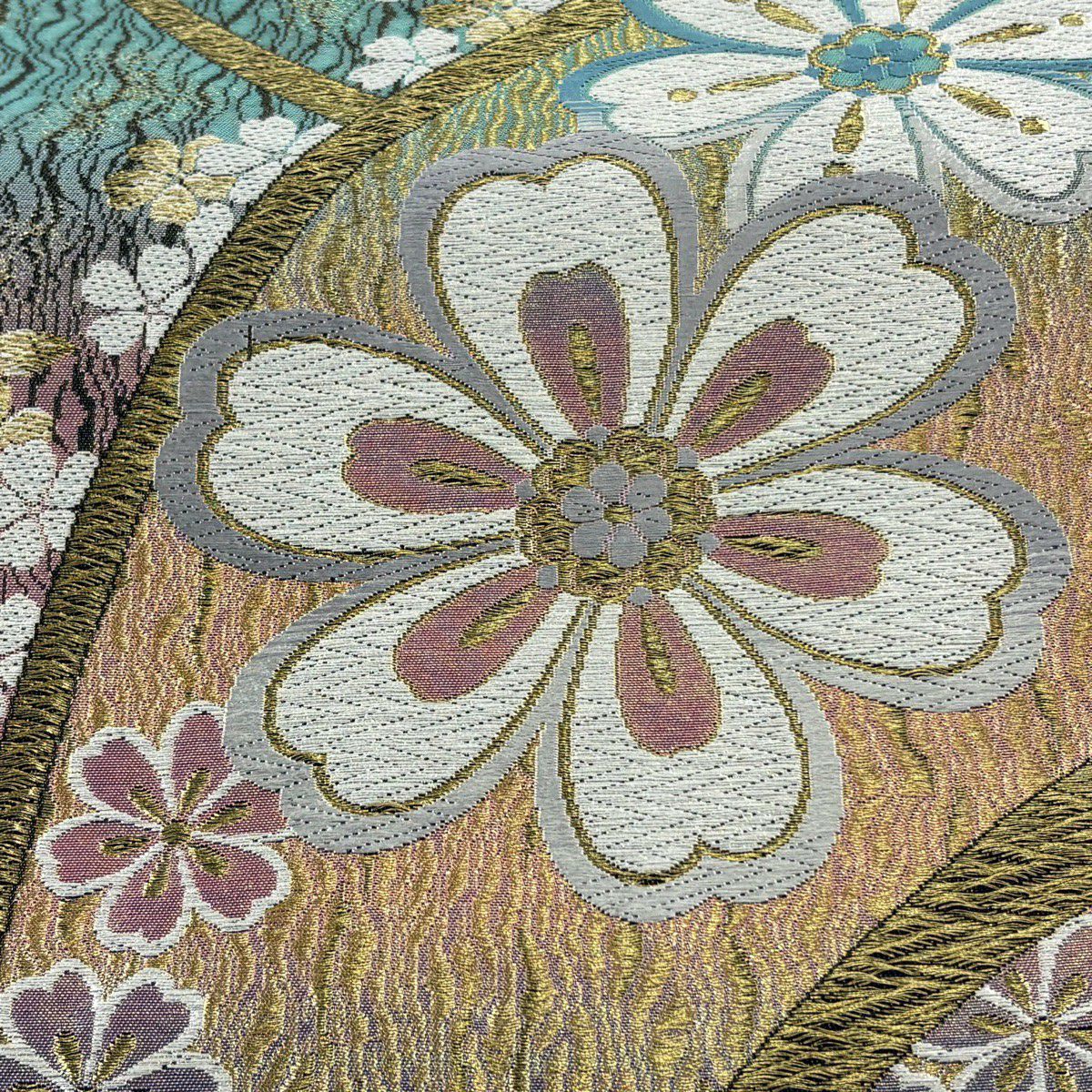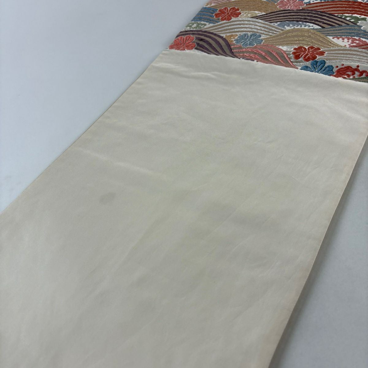 袋帯 秀品 関西仕立て 桜 波 箔 唐織 クリーム 六通 正絹