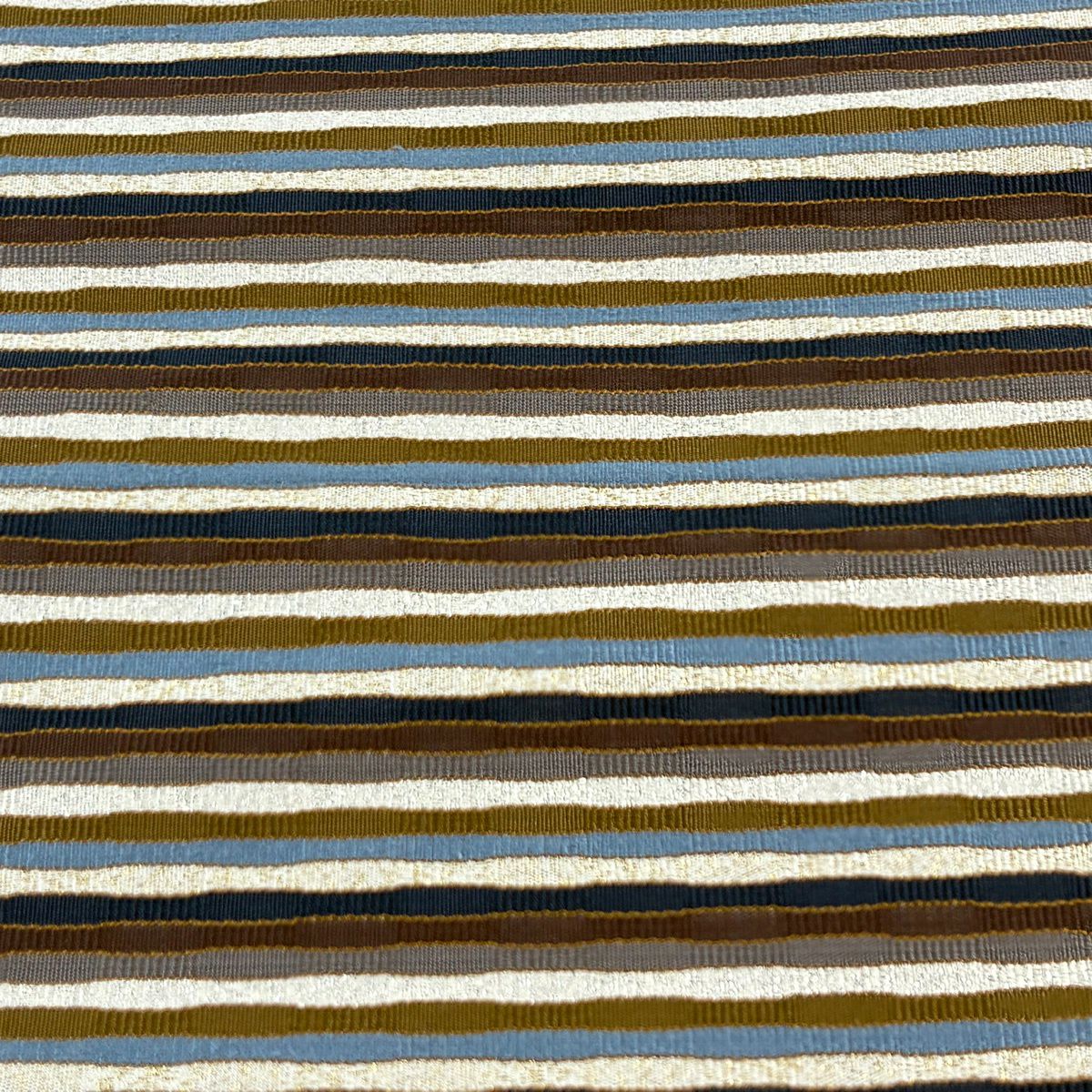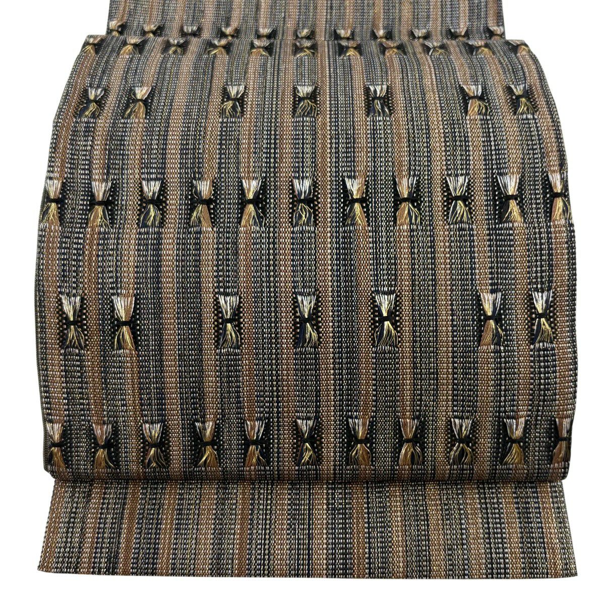 【美品】 袋帯 秀品 縞 幾何学 金糸 焦茶色 お太鼓柄 正絹
