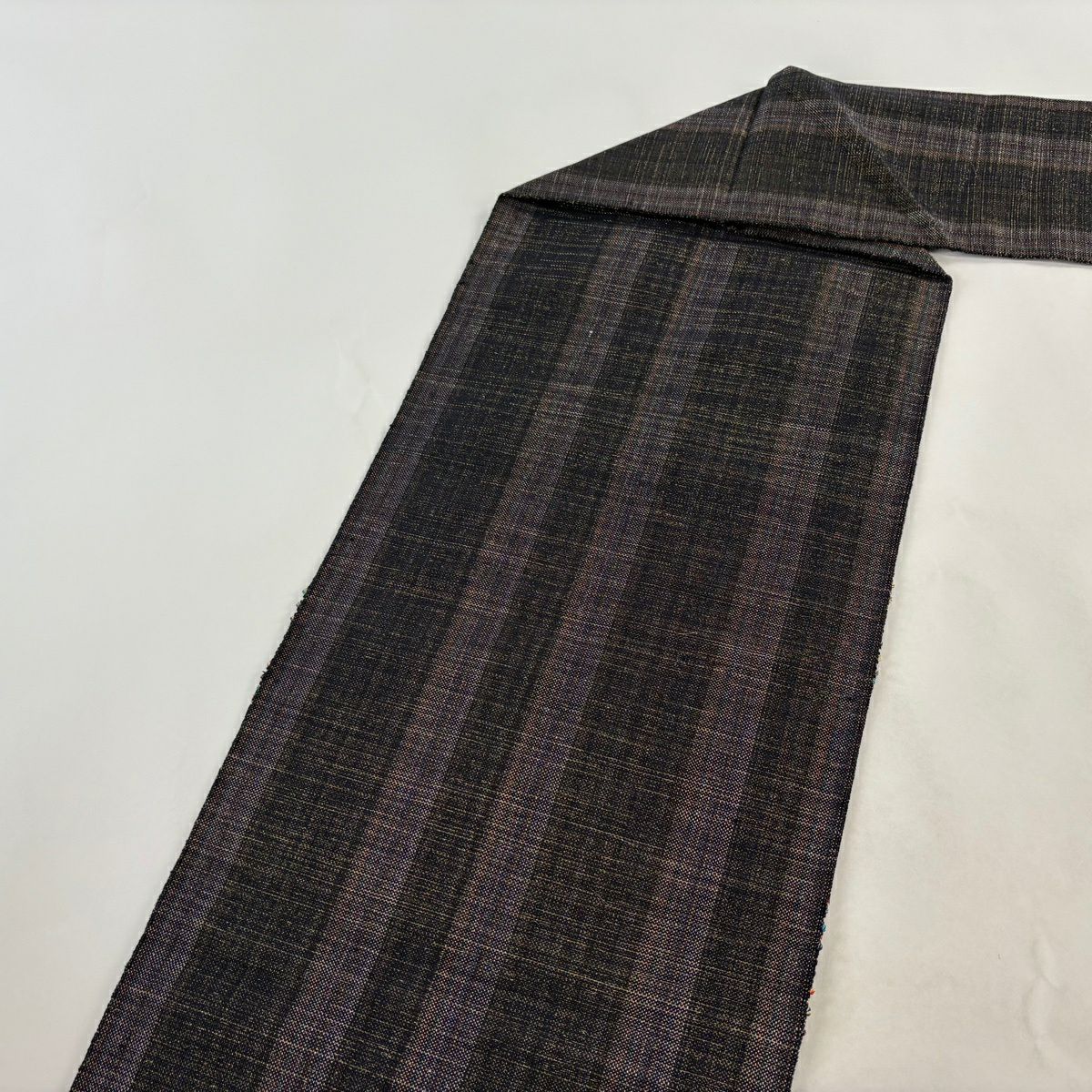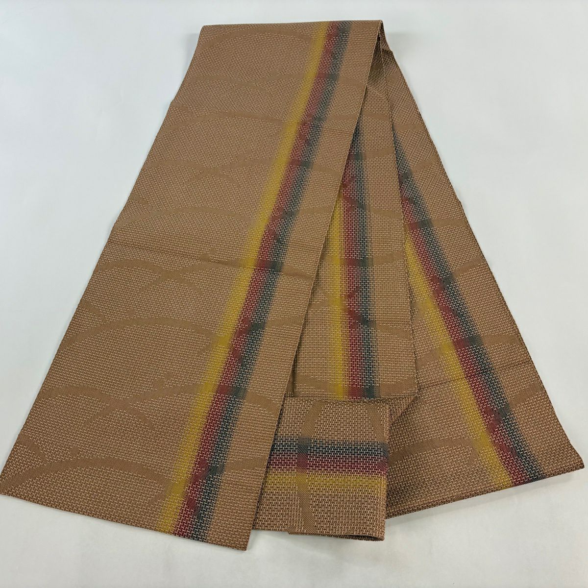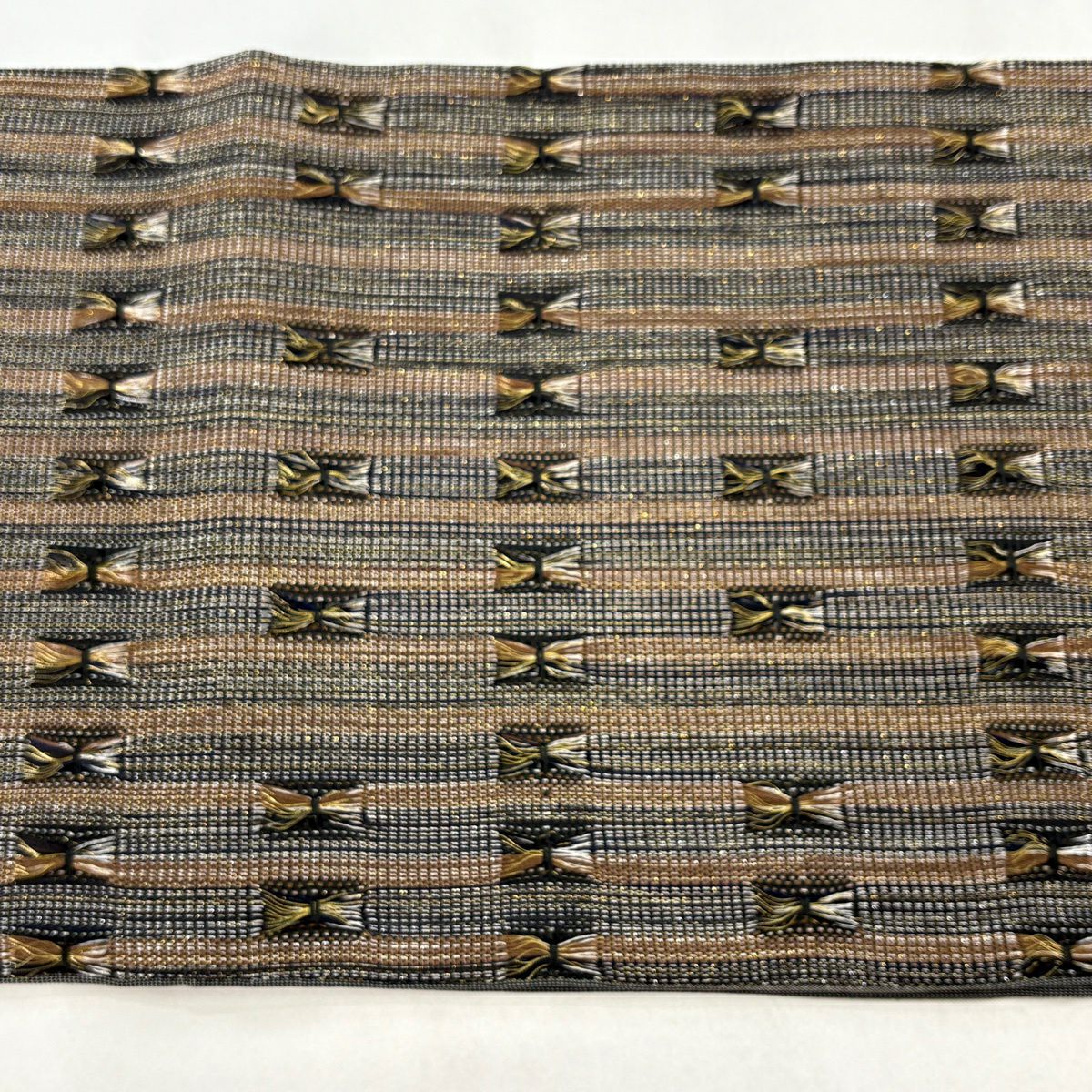 名古屋帯 秀品 八寸名古屋帯 松葉仕立て 露芝 縞模様 薄茶色 正絹