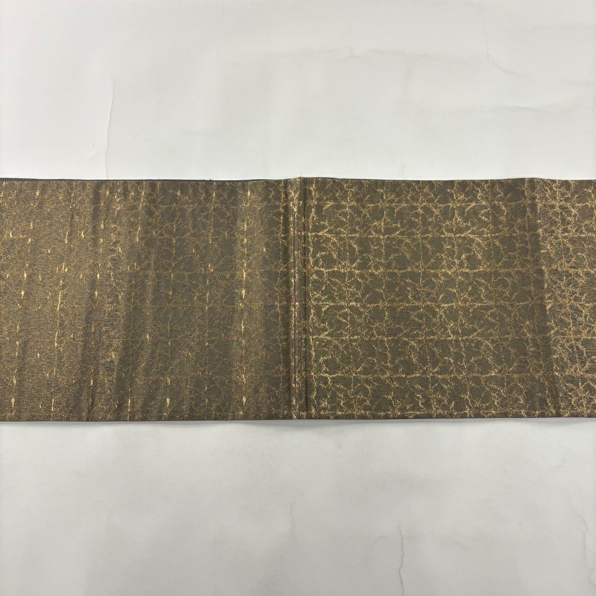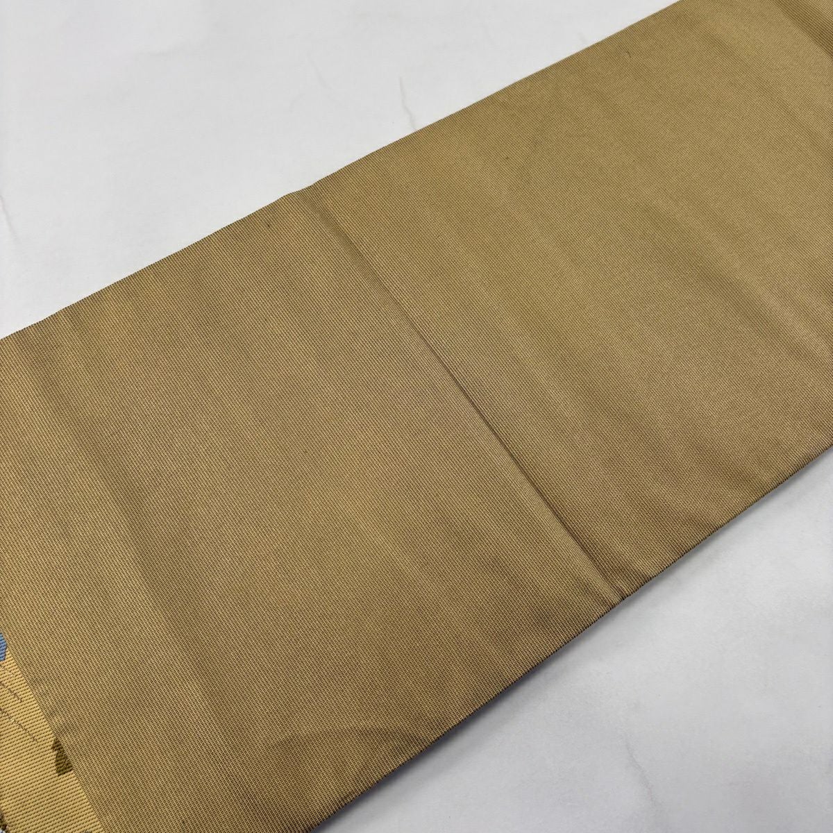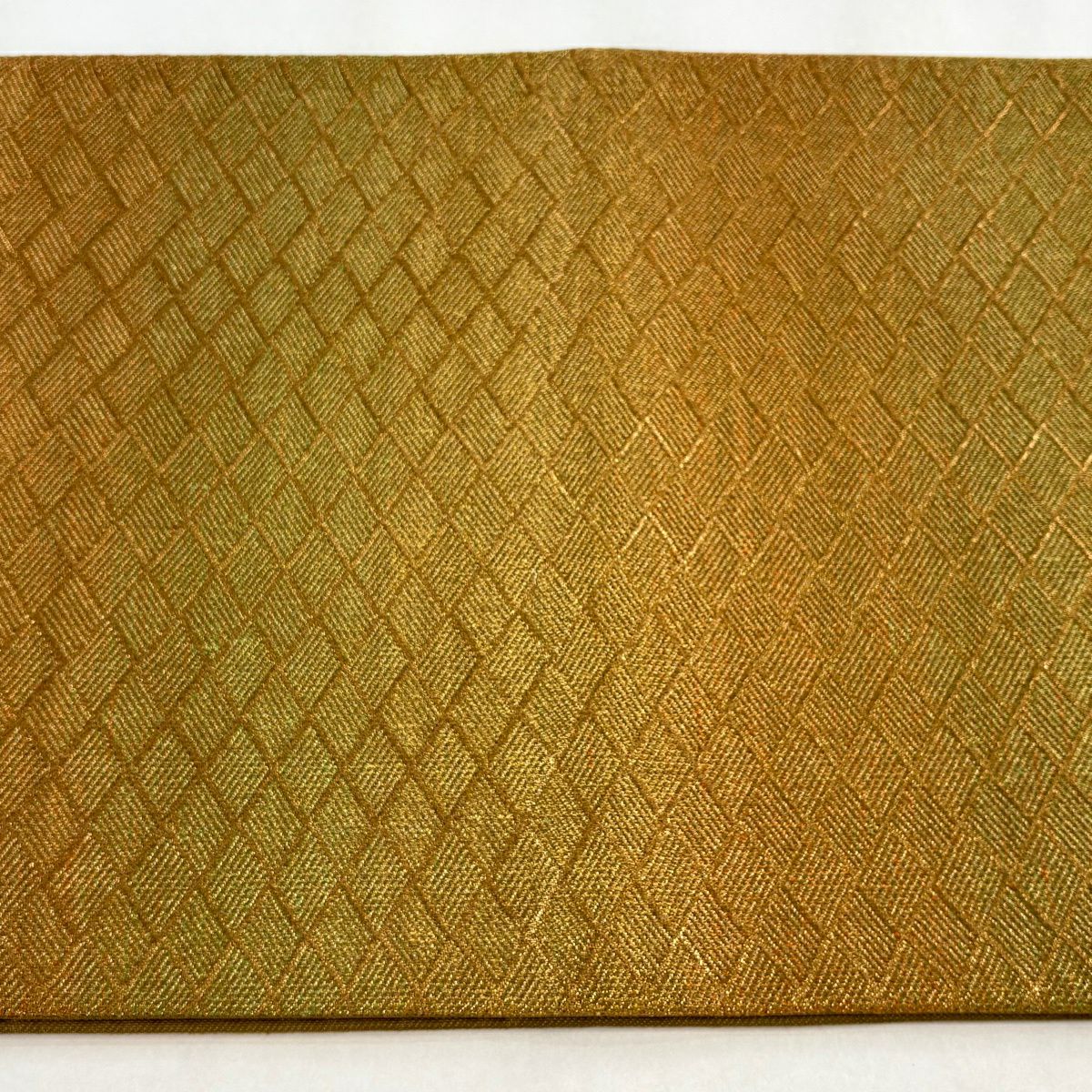【美品】 袋帯 秀品 斜め格子 金糸 箔 山吹茶色 六通 正絹