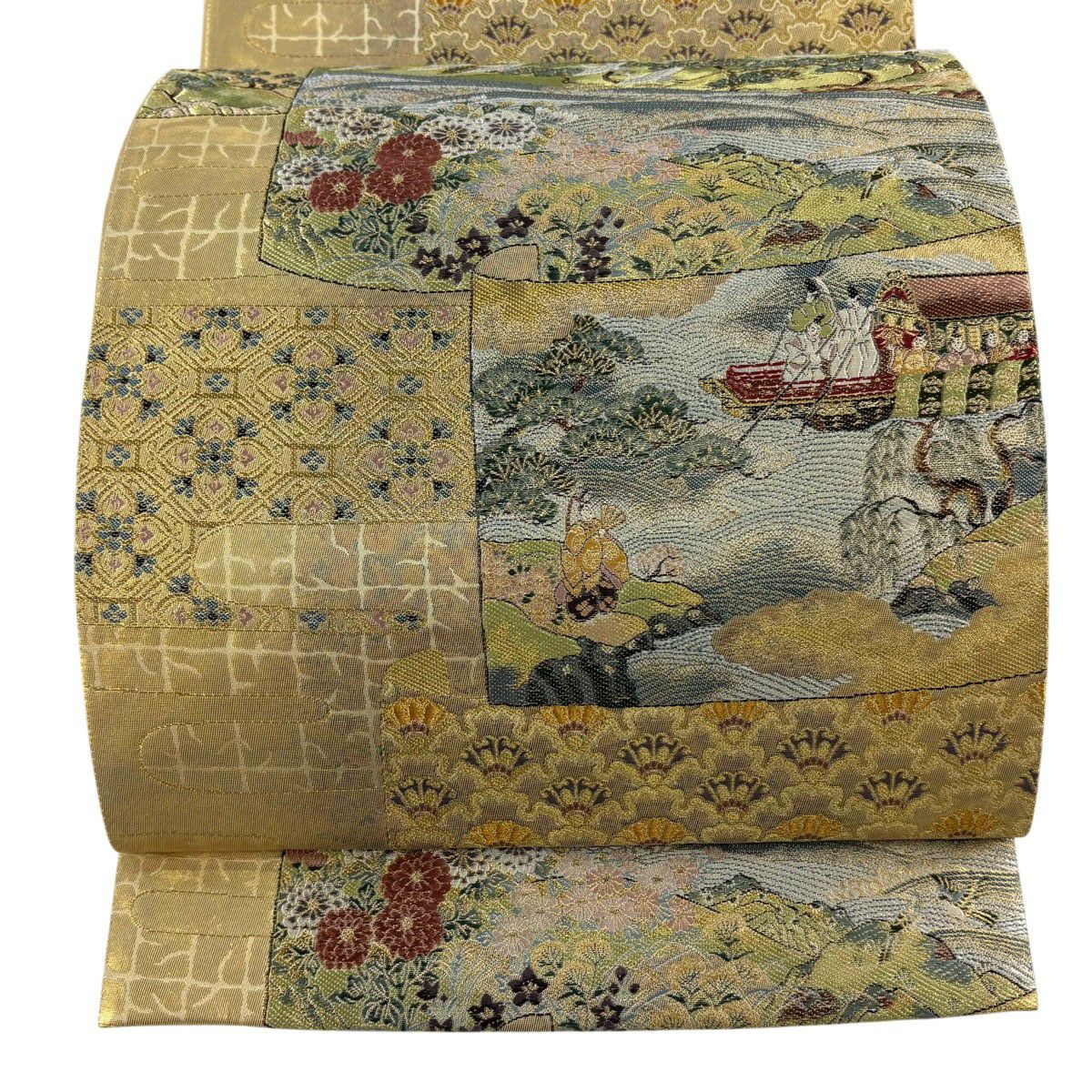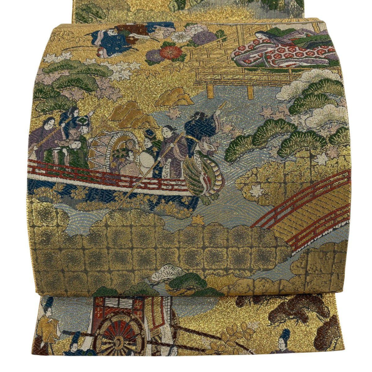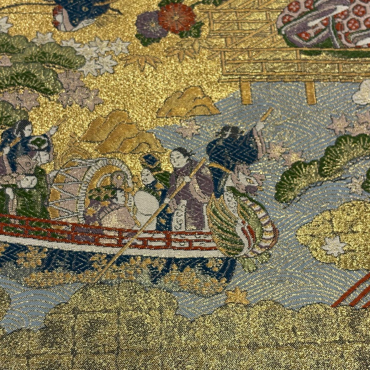 【美品】 袋帯 秀品 人物 建物 金糸 箔 金色 お太鼓柄 正絹