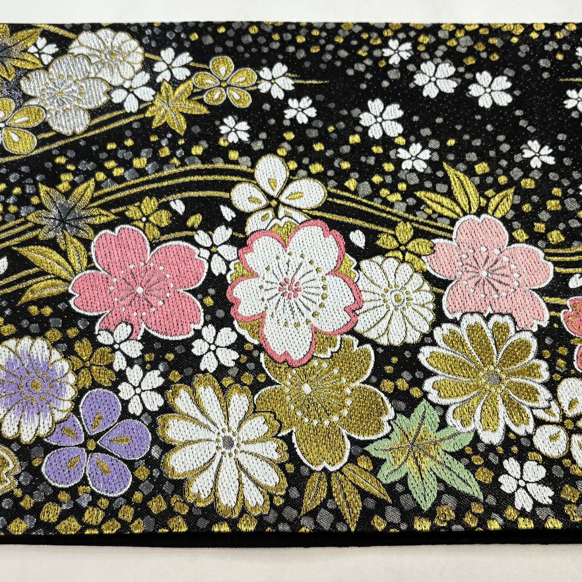 【美品】 袋帯 秀品 桜 箔散らし柄 金銀糸 箔 黒 六通 正絹