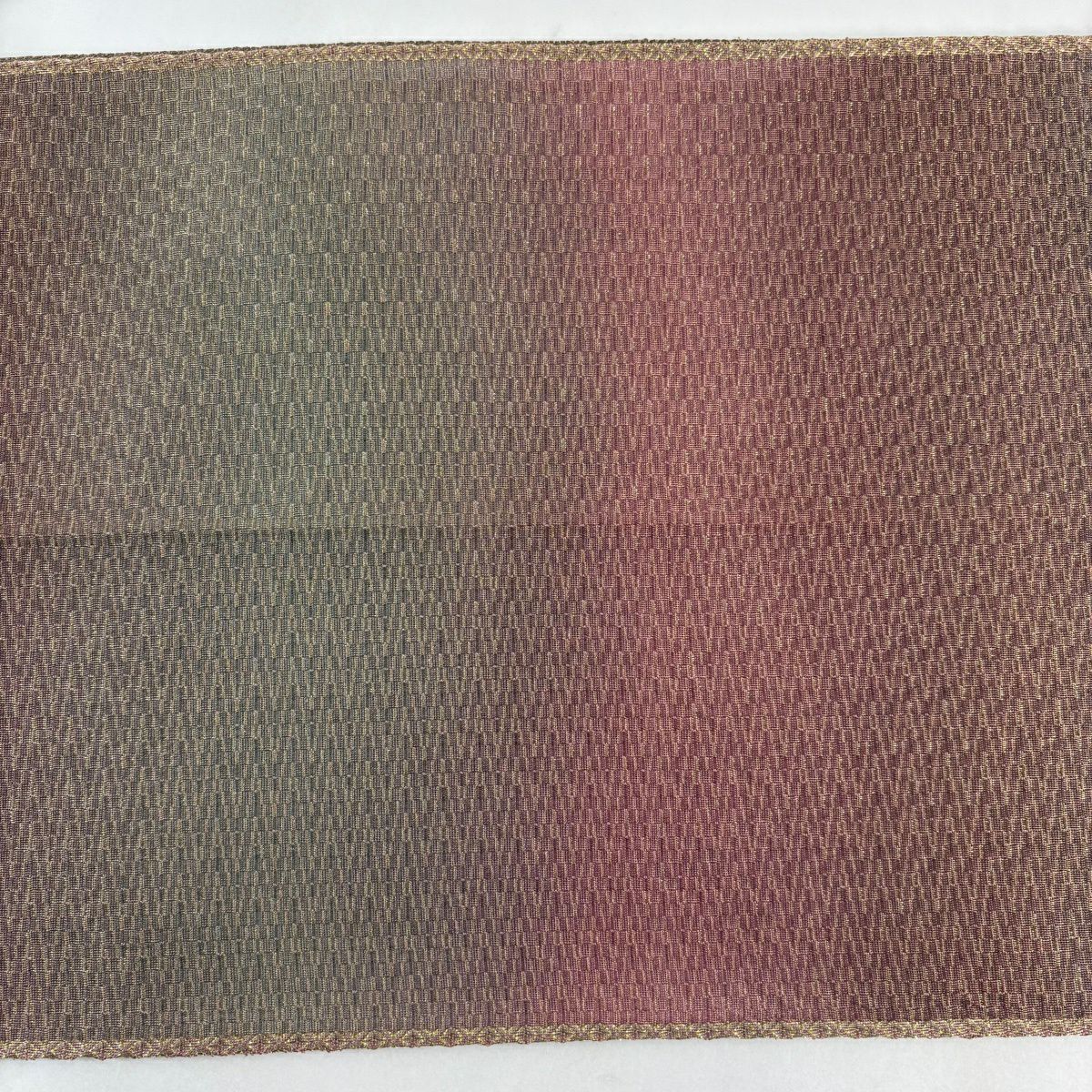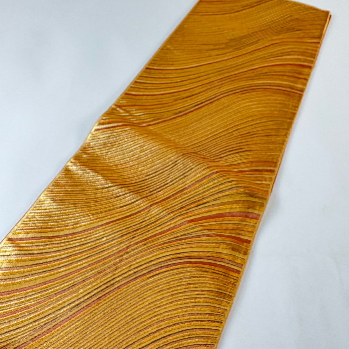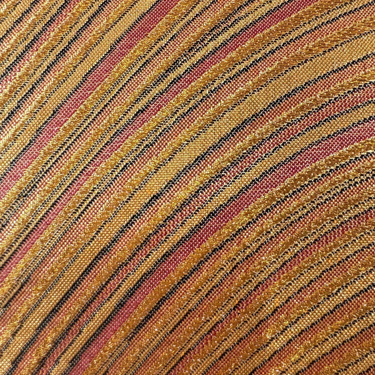 【美品】 袋帯 秀品 幾何学 ぼかし柄 金糸 茜色 全通 正絹