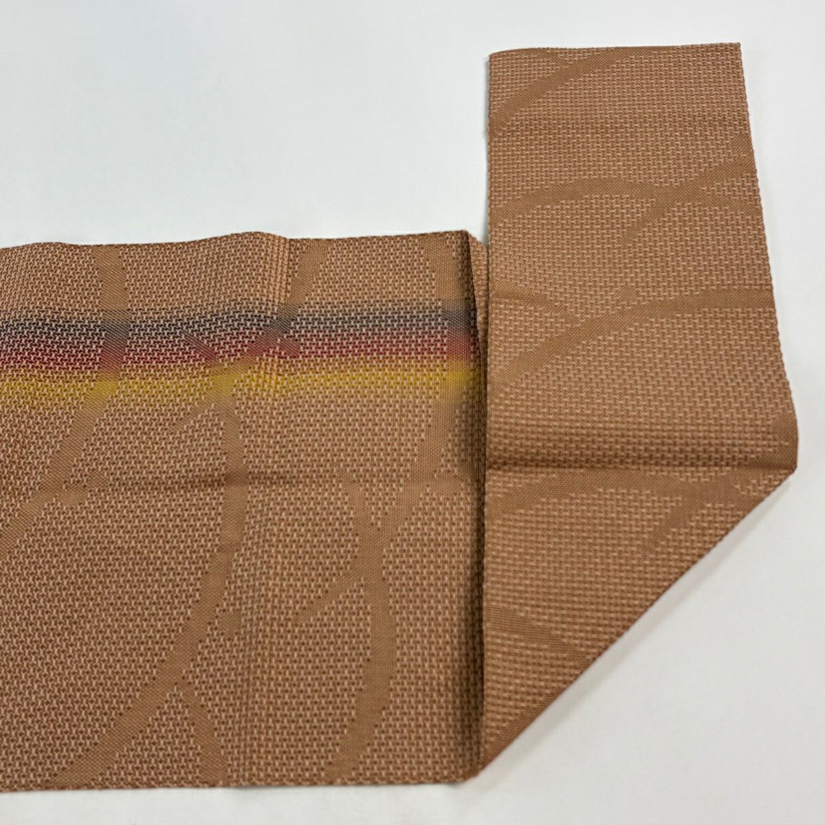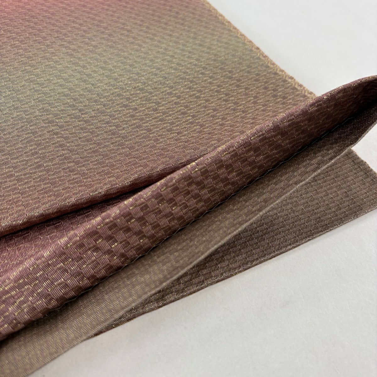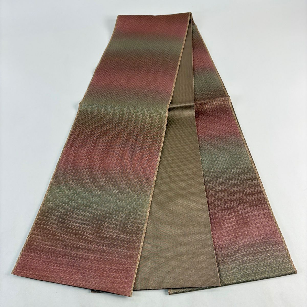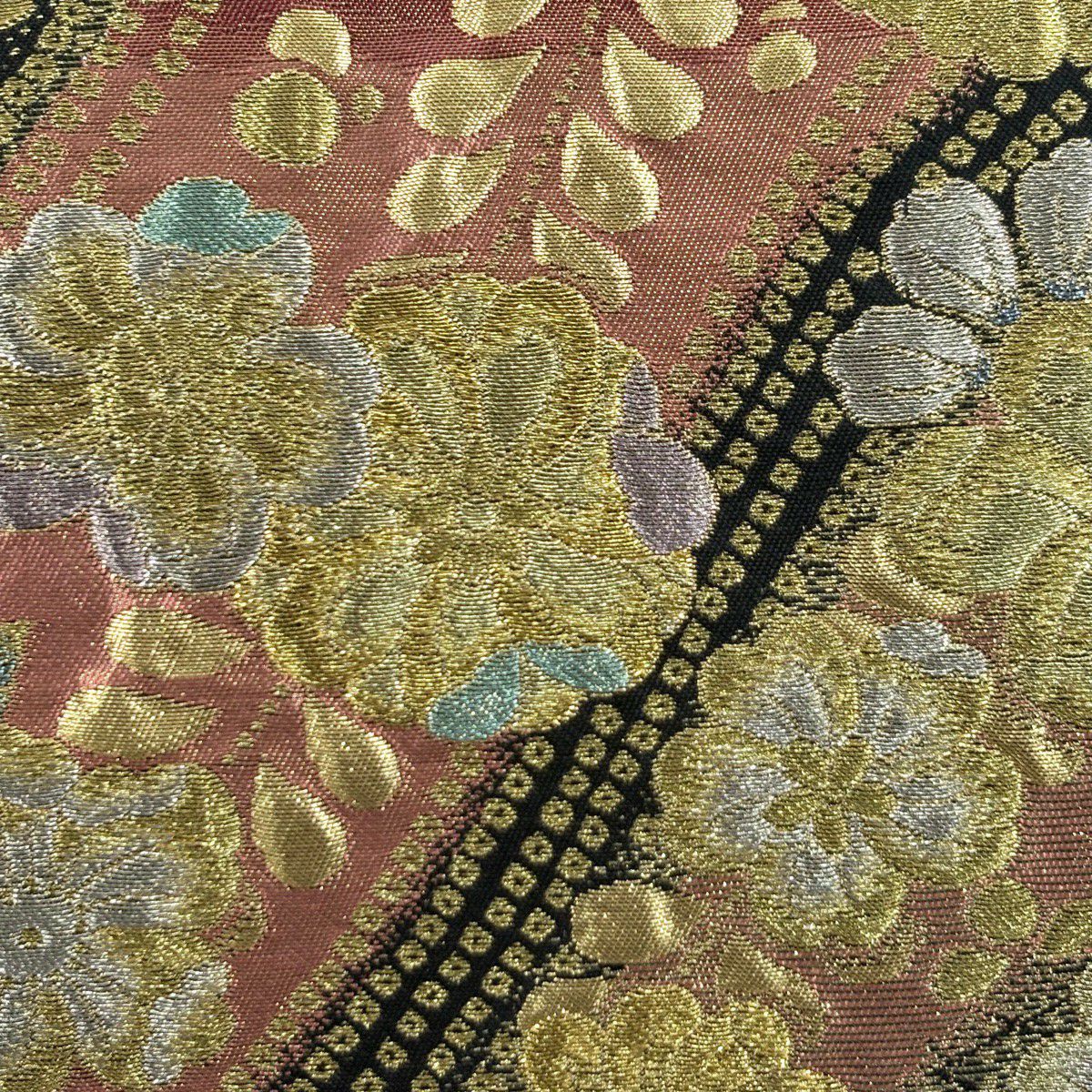 【美品】 袋帯 秀品 幾何学 ぼかし柄 金糸 茜色 全通 正絹