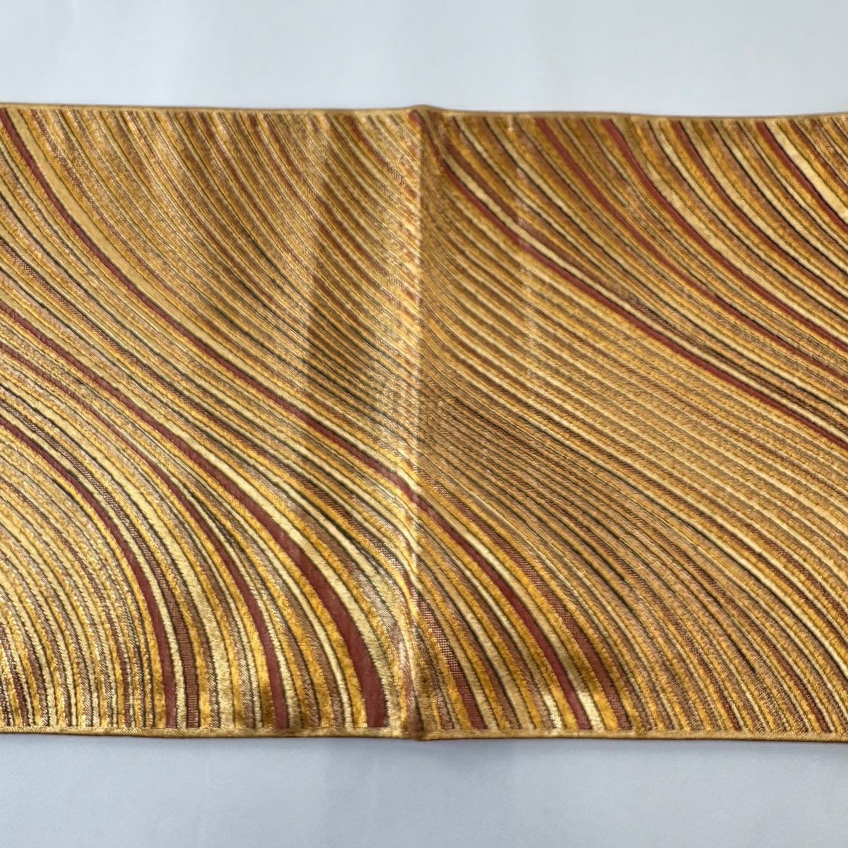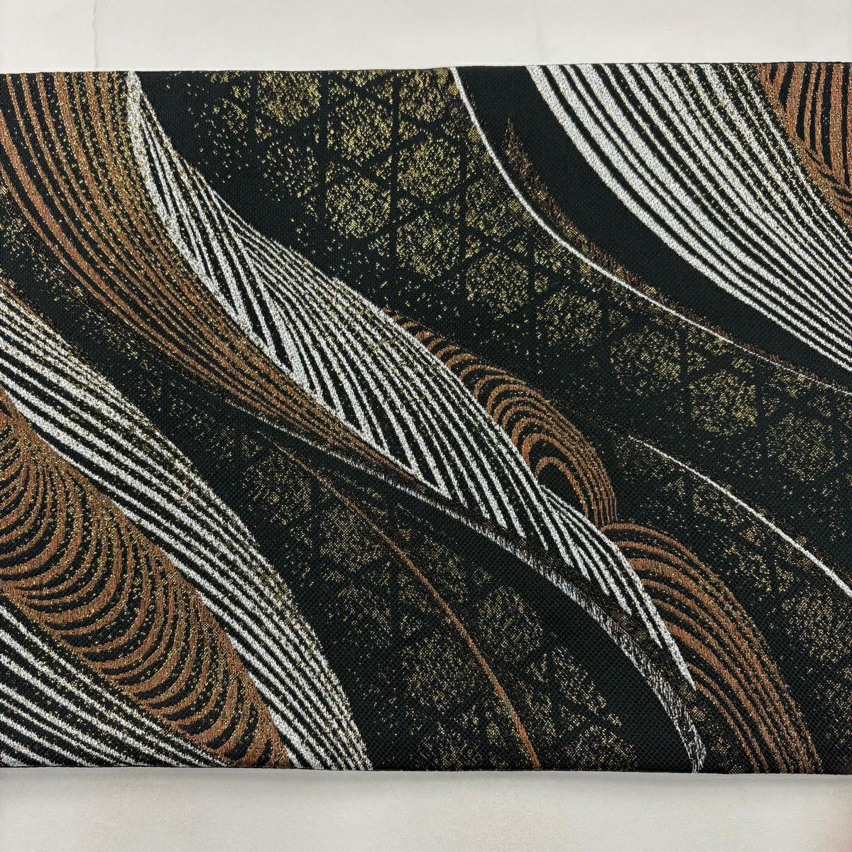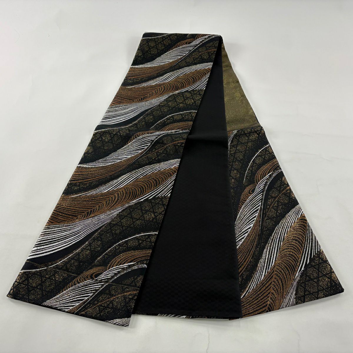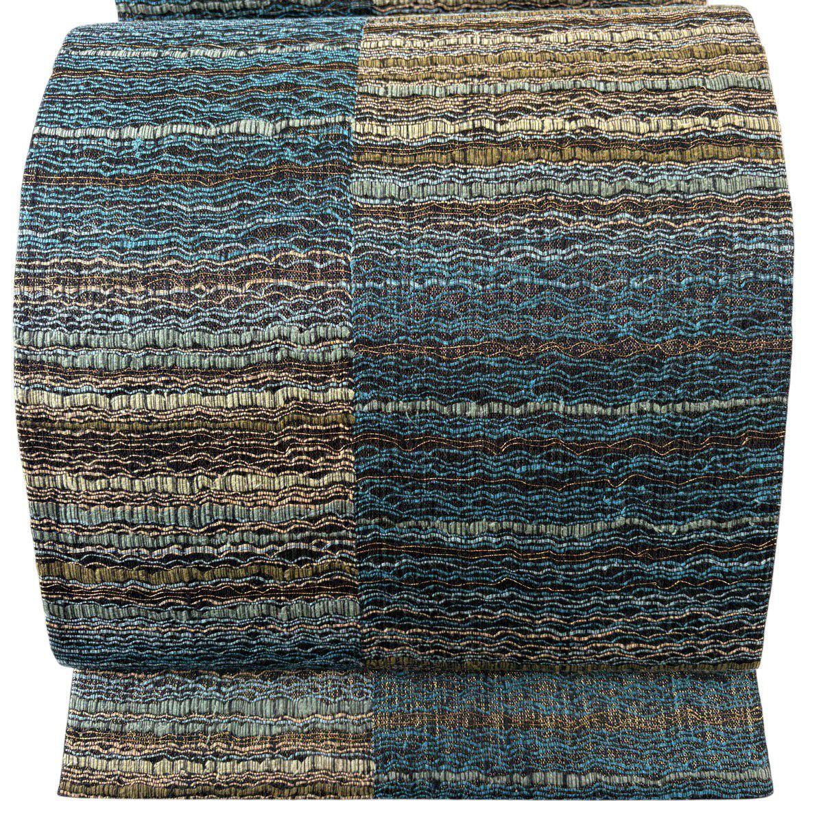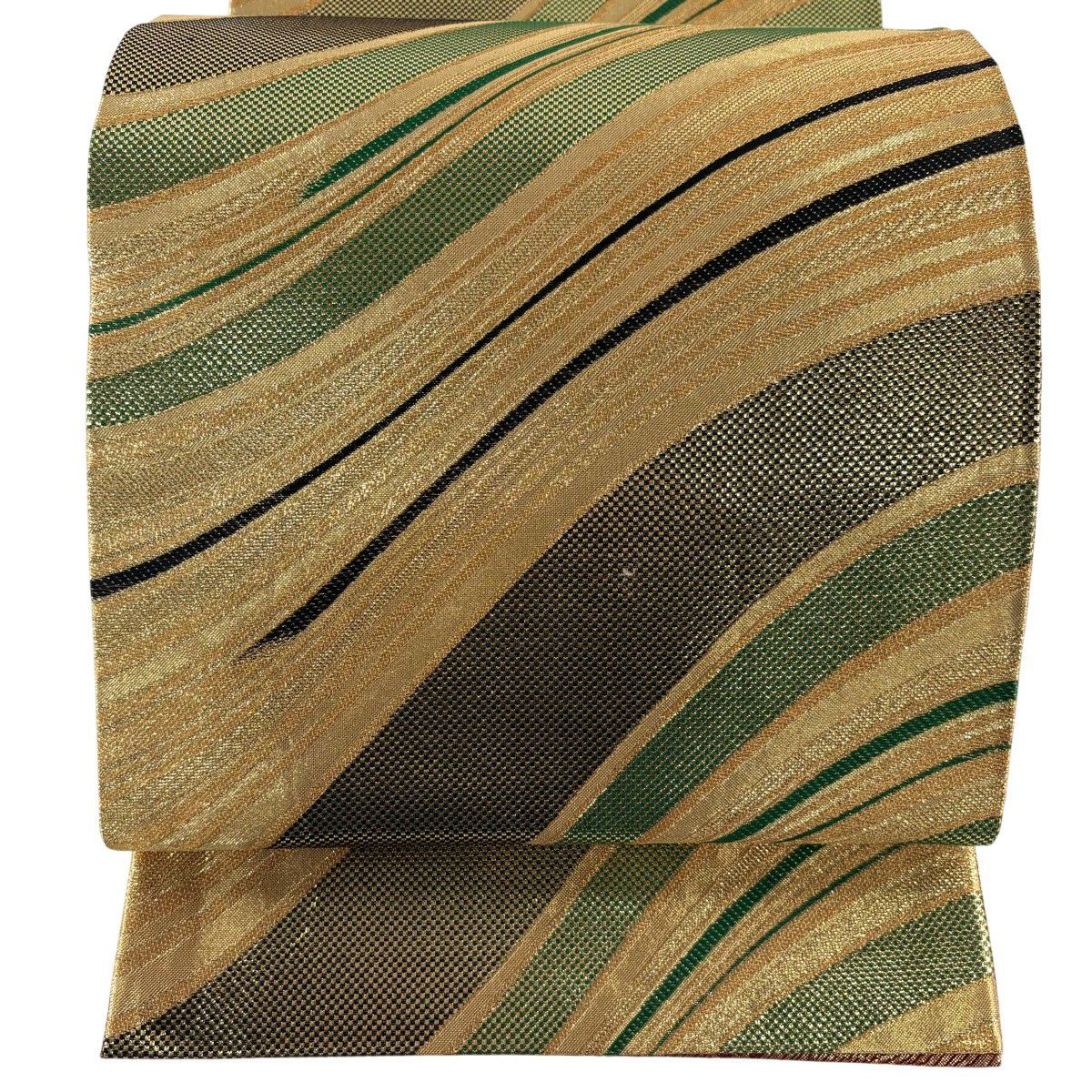 【美品】 袋帯 秀品 幾何学模様 波 箔 金糸 金色 六通 正絹