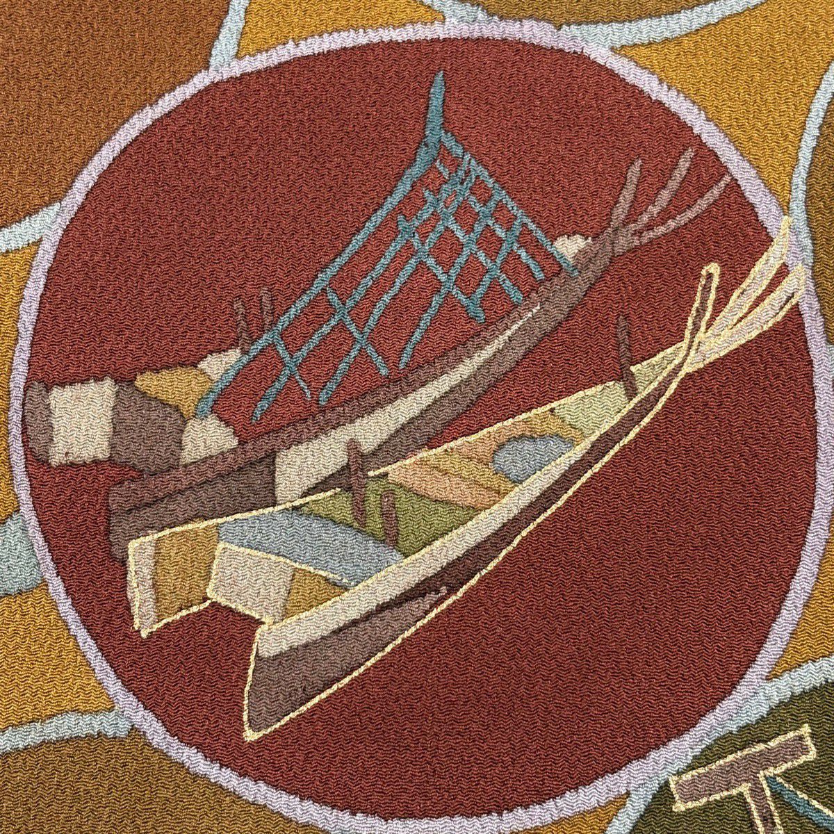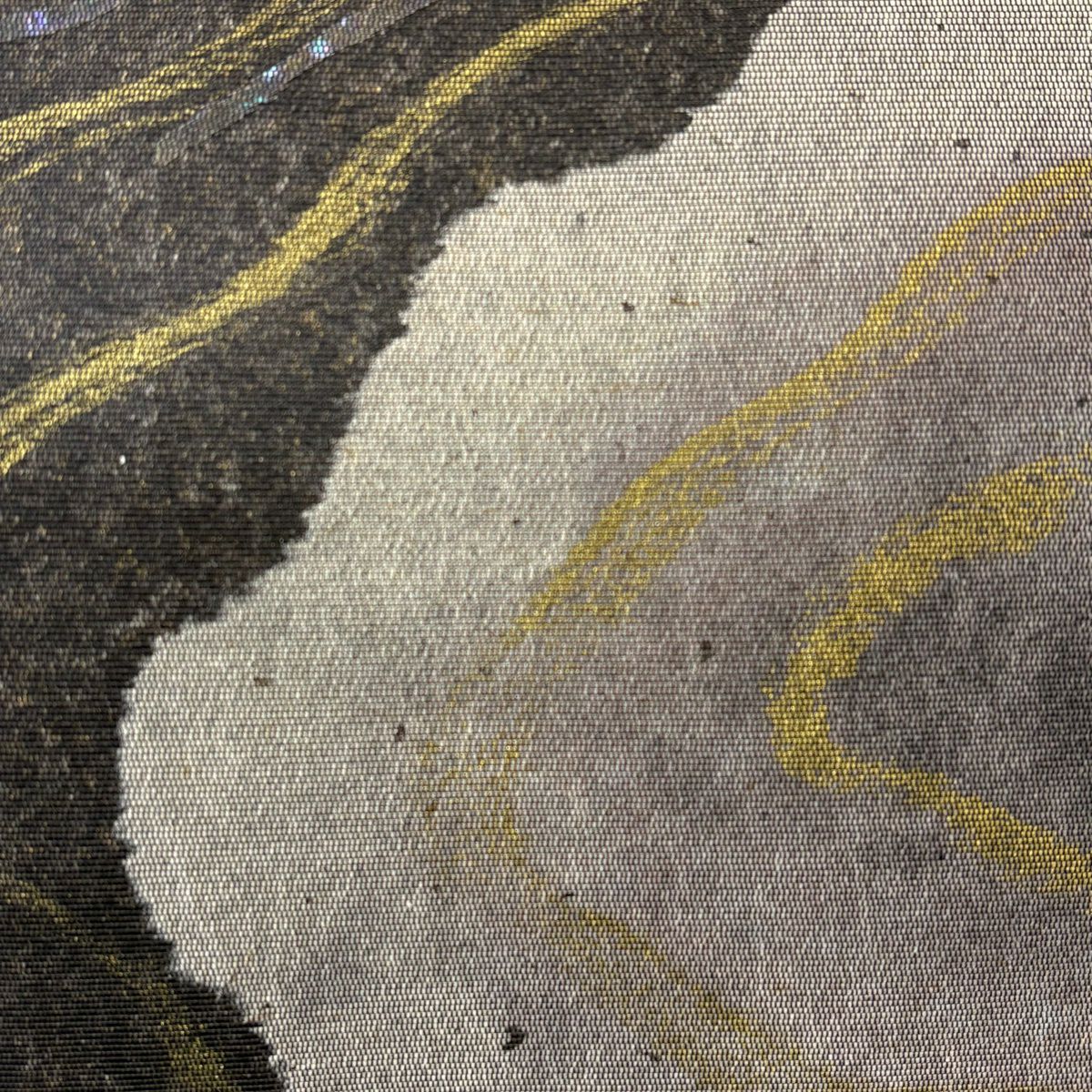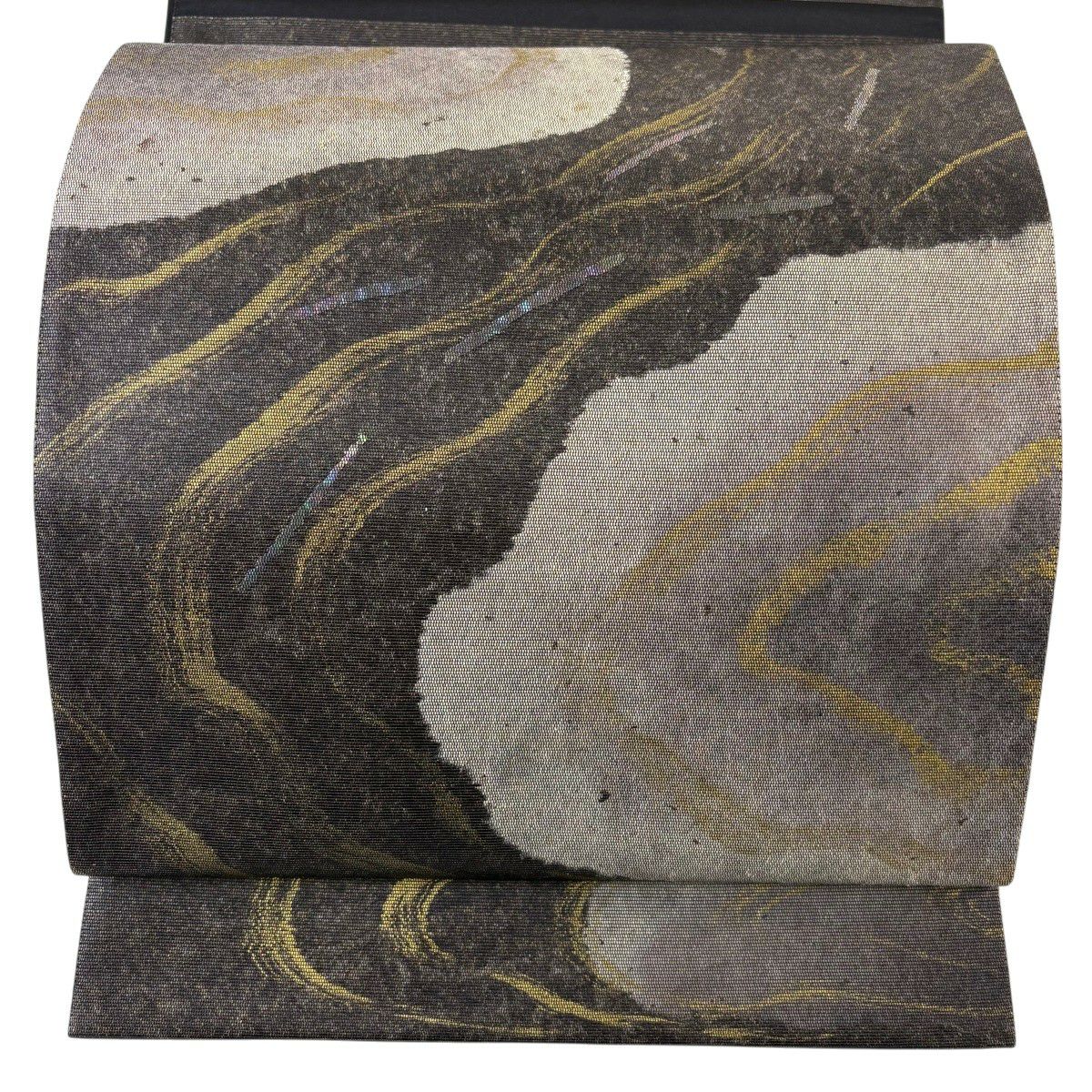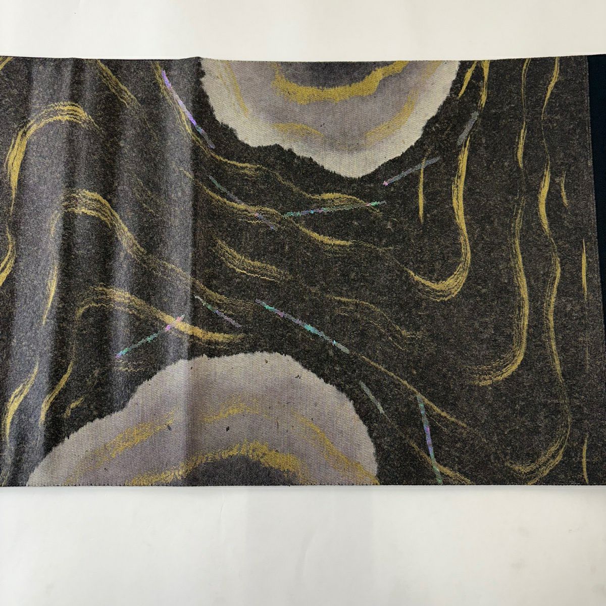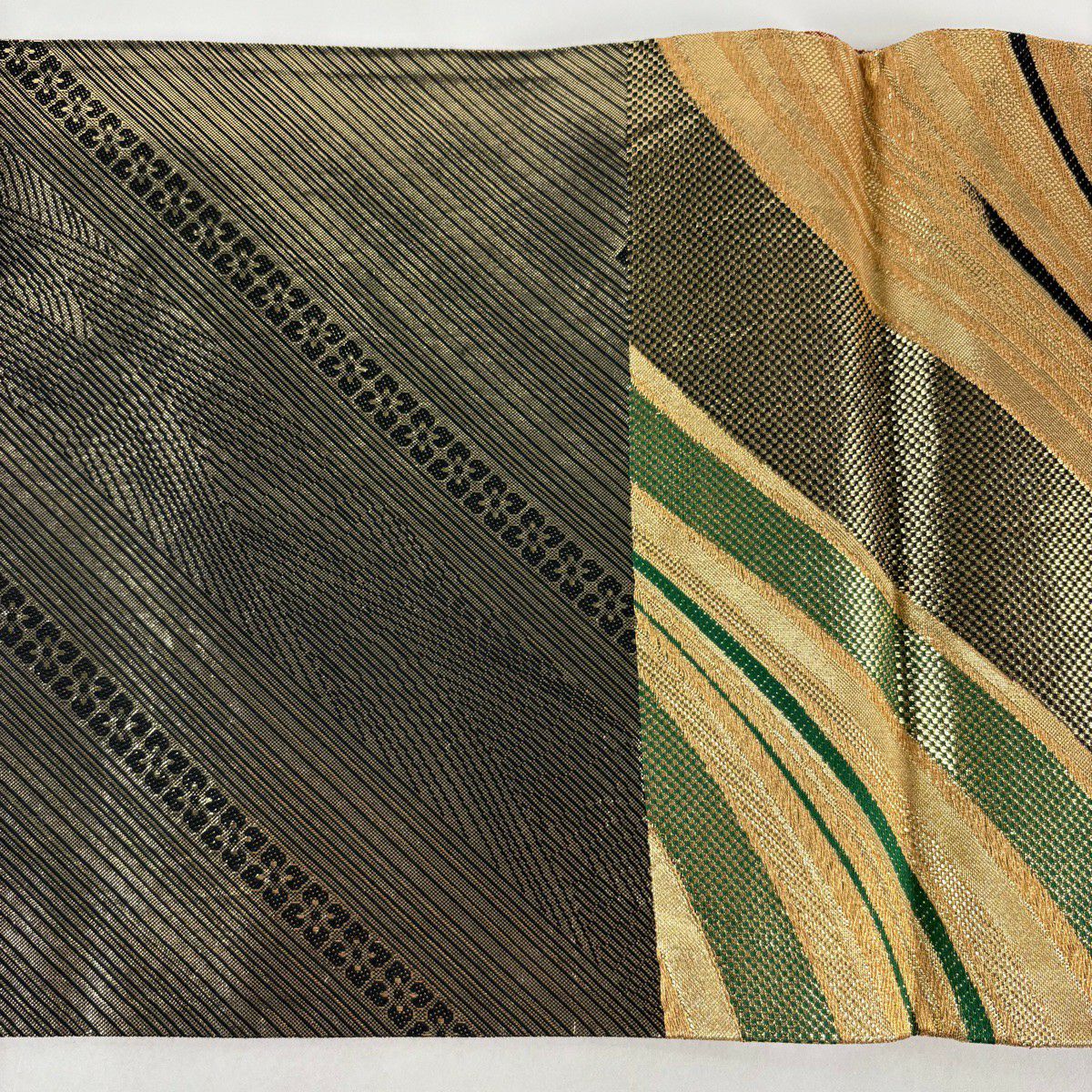 【美品】 袋帯 秀品 幾何学模様 波 箔 金糸 金色 六通 正絹