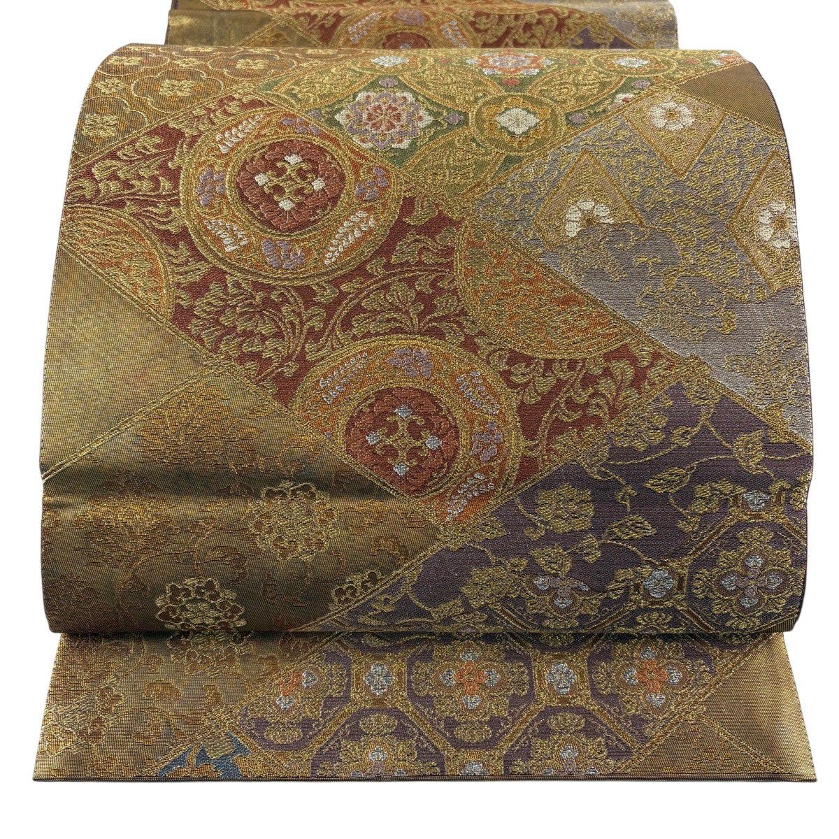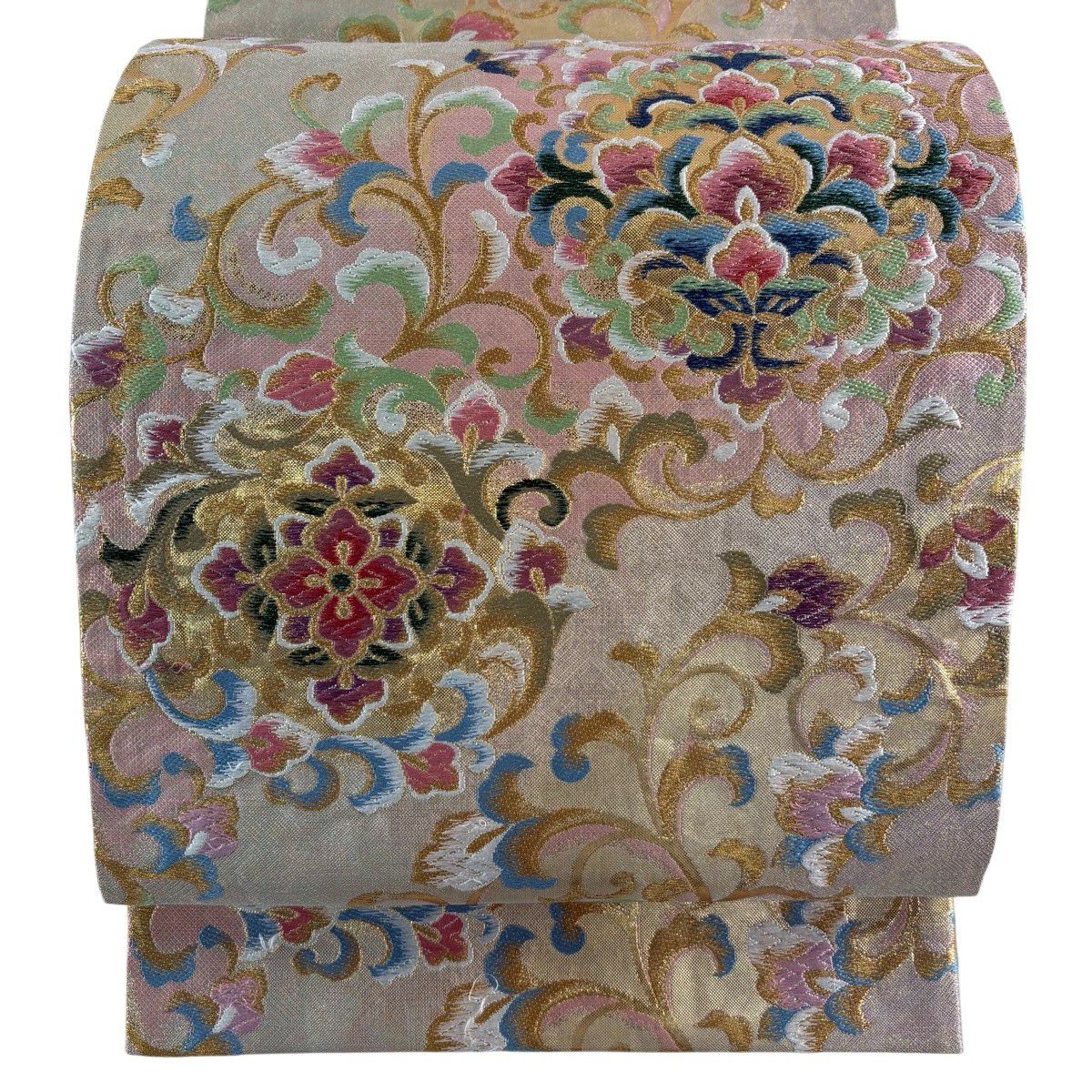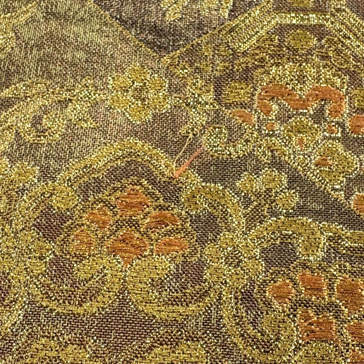 【美品】 袋帯 秀品 華文 花唐草 唐織 箔 金色 六通 正絹