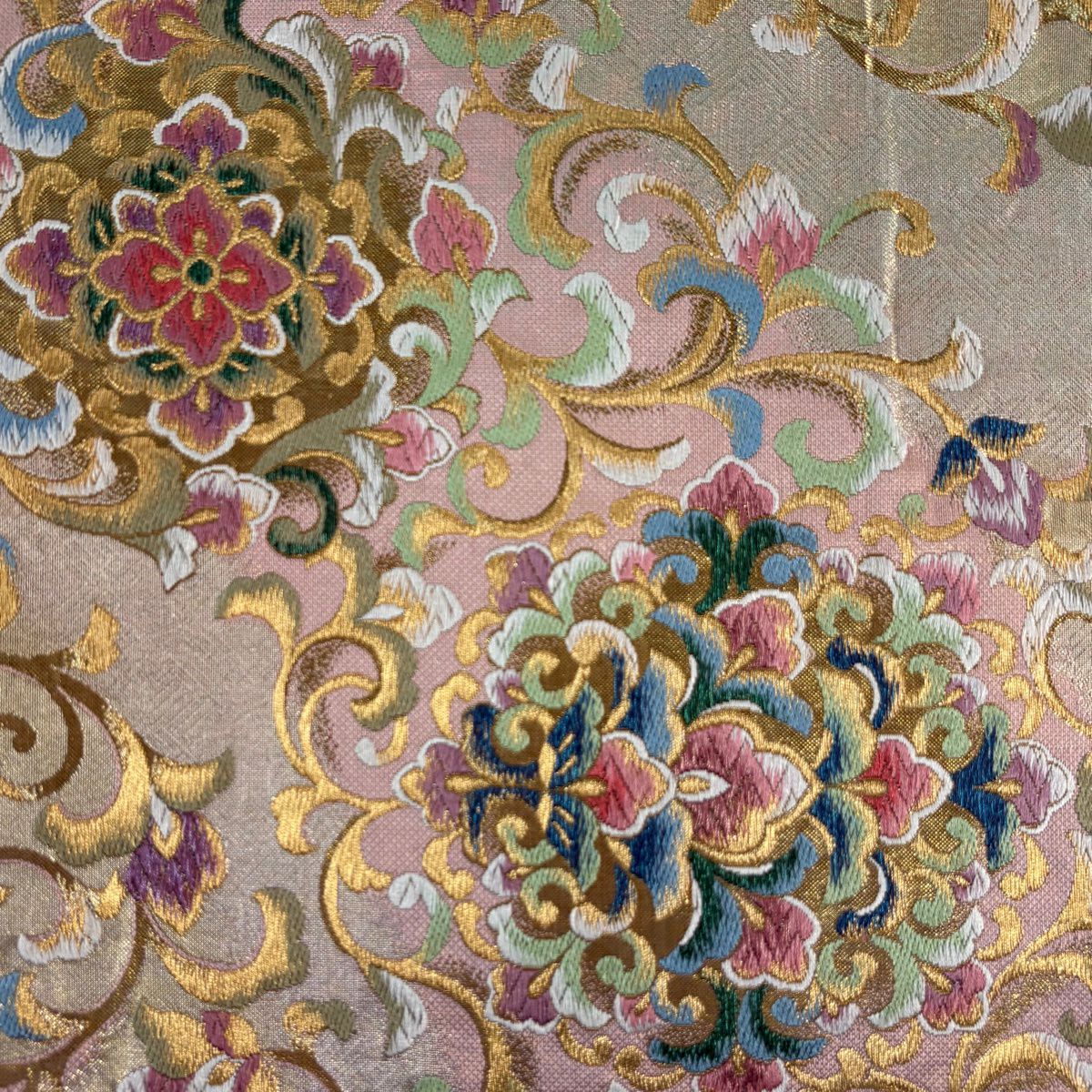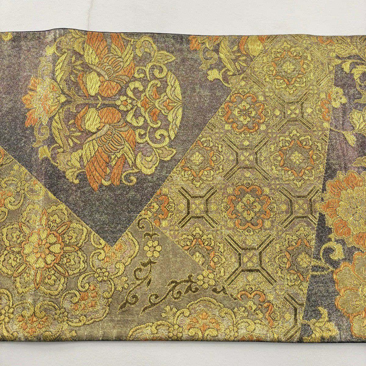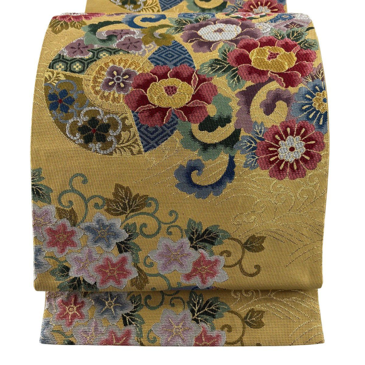 【美品】 袋帯 秀品 華文 花唐草 唐織 箔 金色 六通 正絹