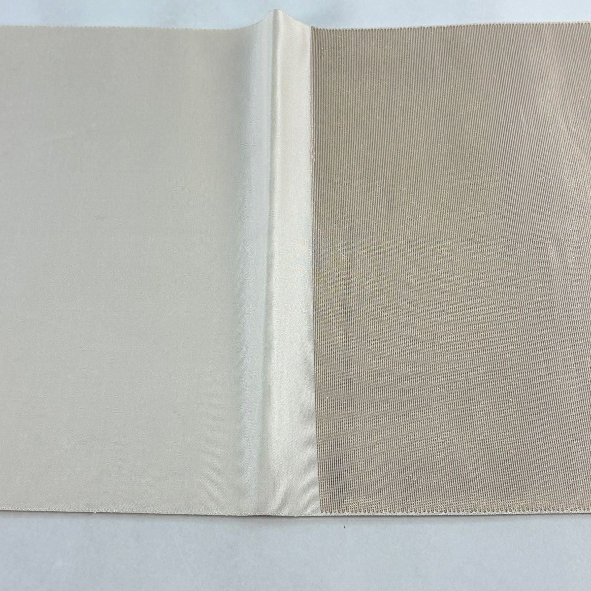 【美品】 袋帯 秀品 紬地 よろけ縞 ベージュ 全通 正絹