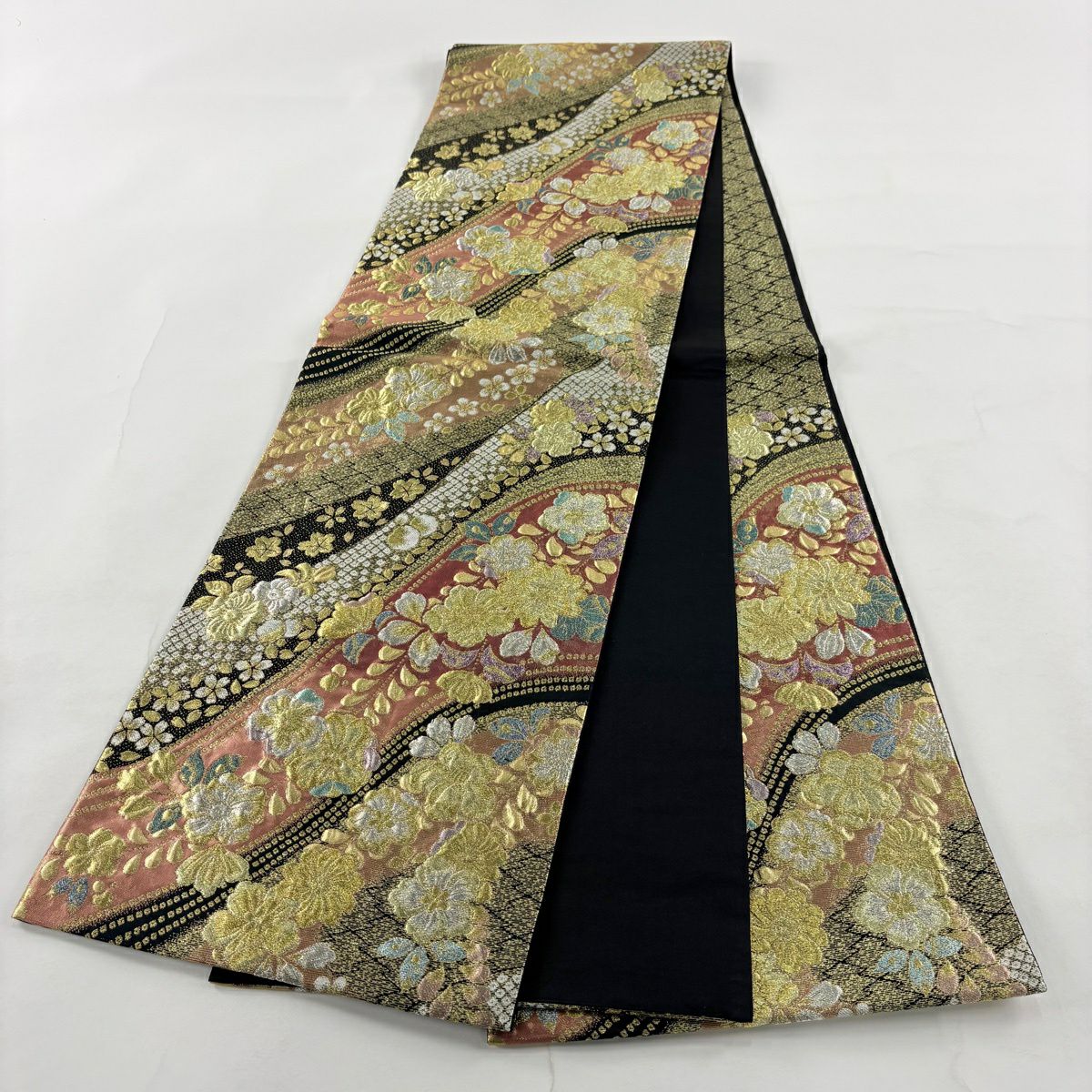 【美品】 袋帯 秀品 道長取 華文 箔 金銀糸 金色 六通 正絹