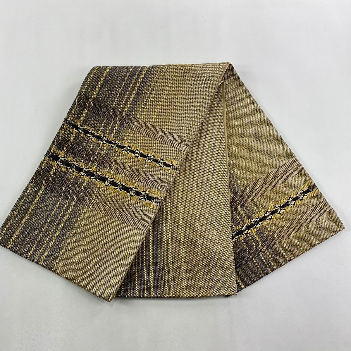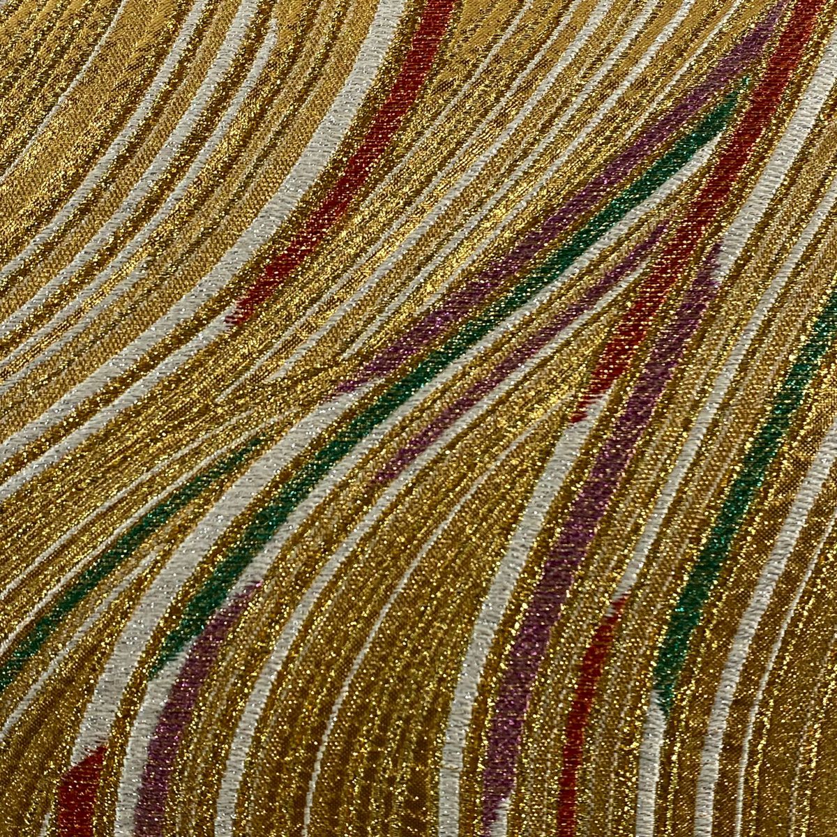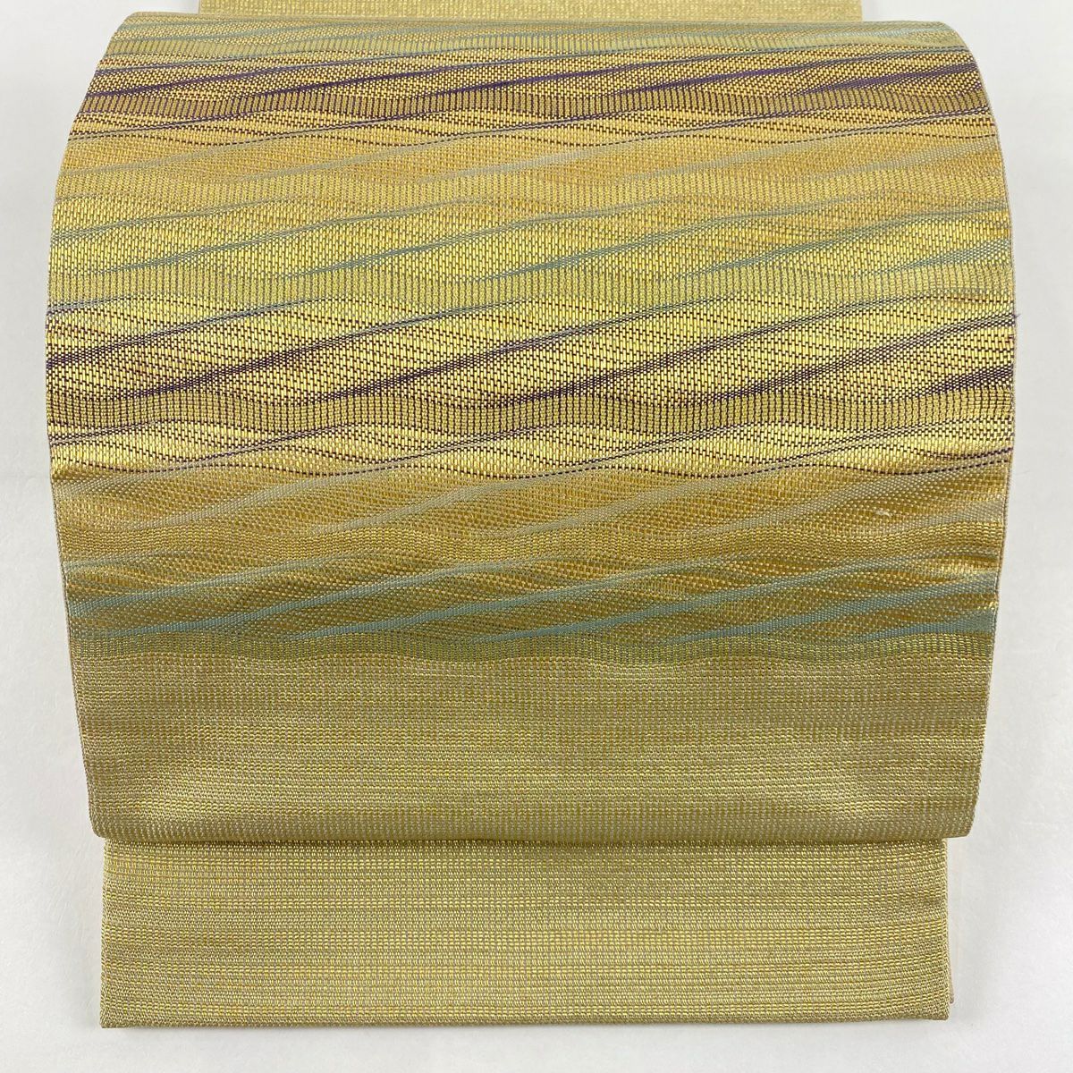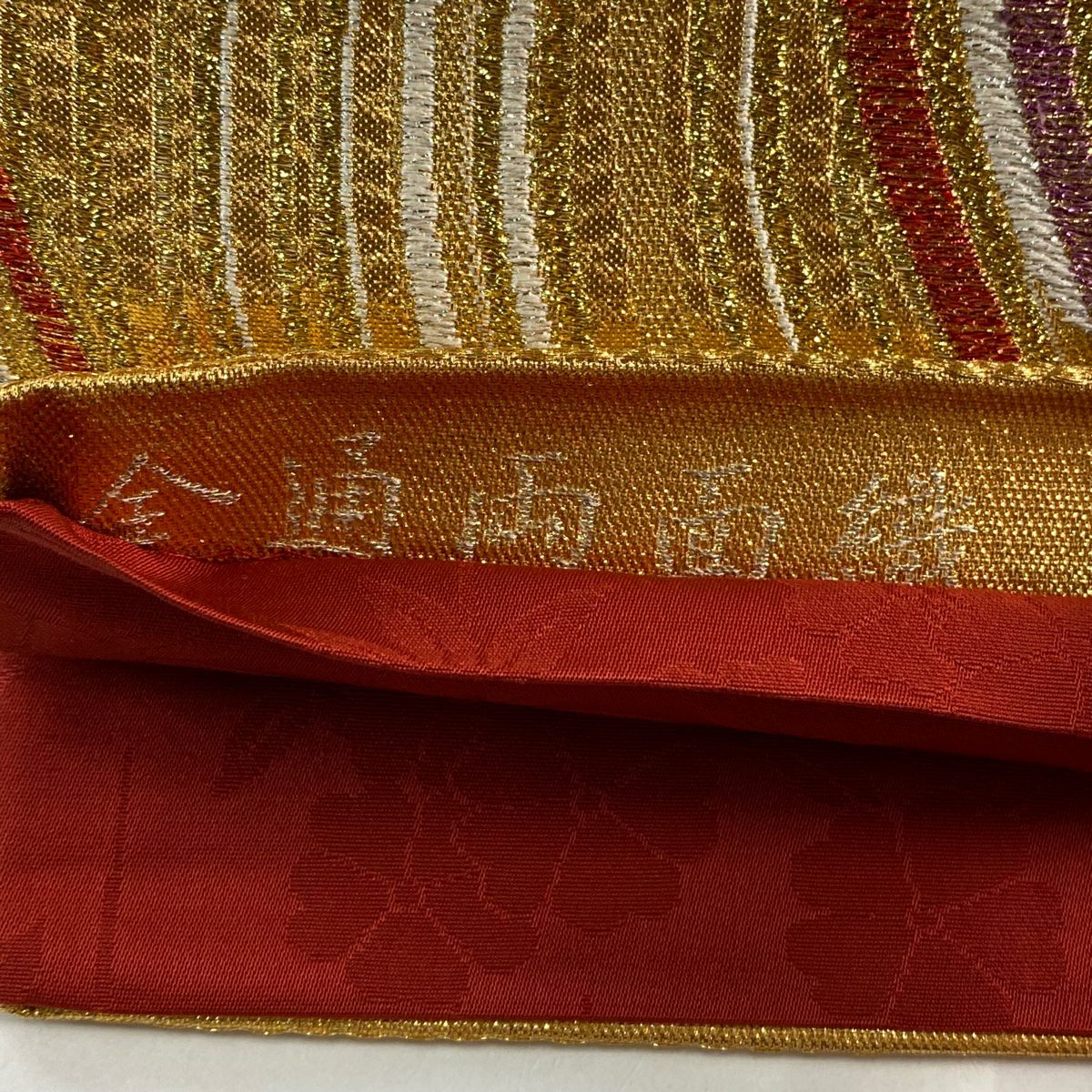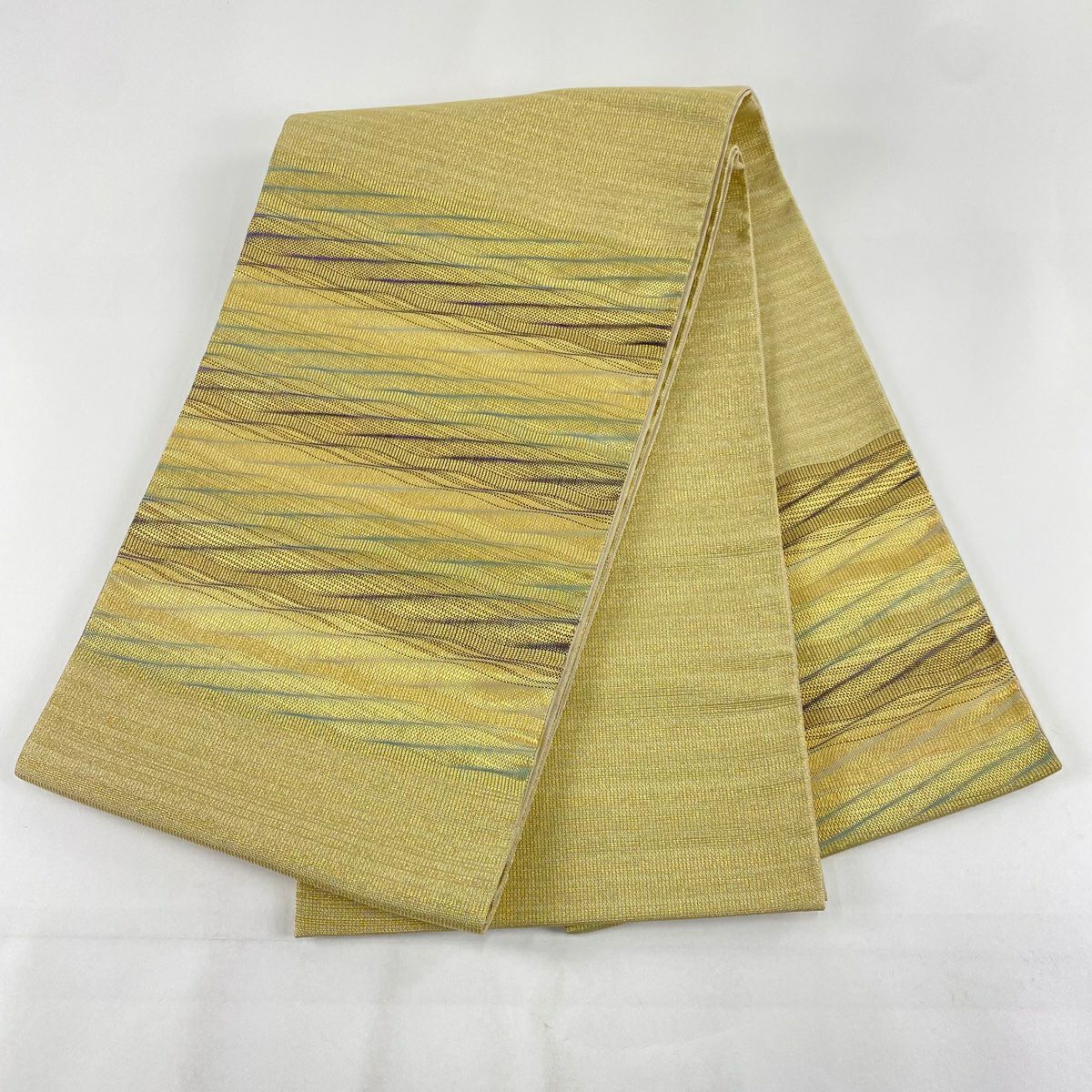 【在庫一掃】 【美品】 袋帯 秀品 縞 金糸 金色 お太鼓柄 正絹