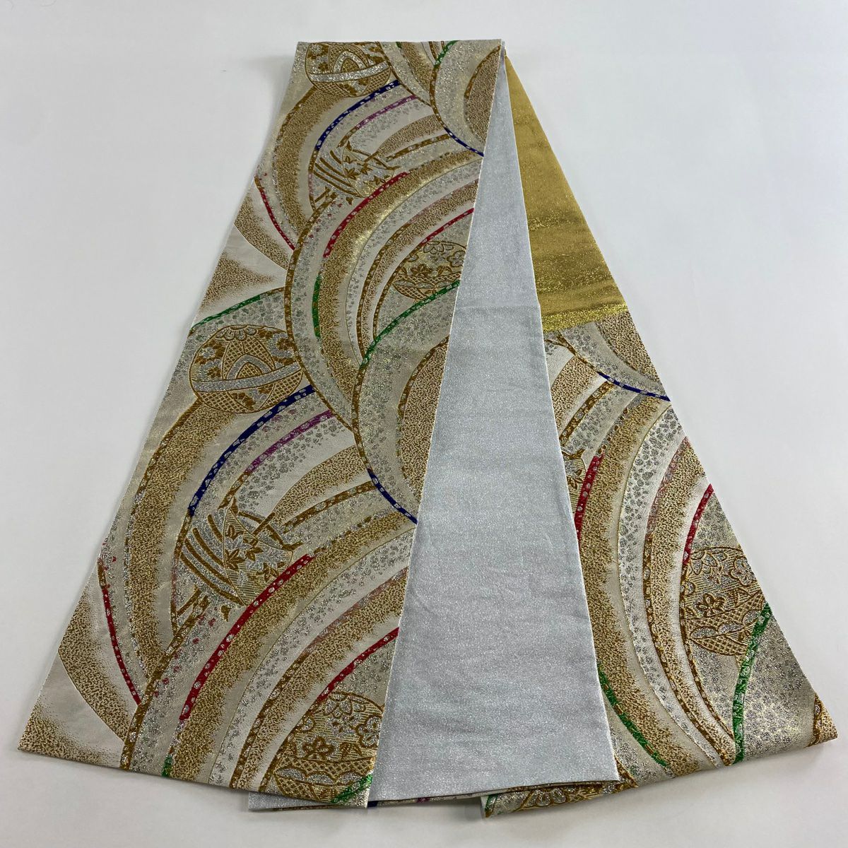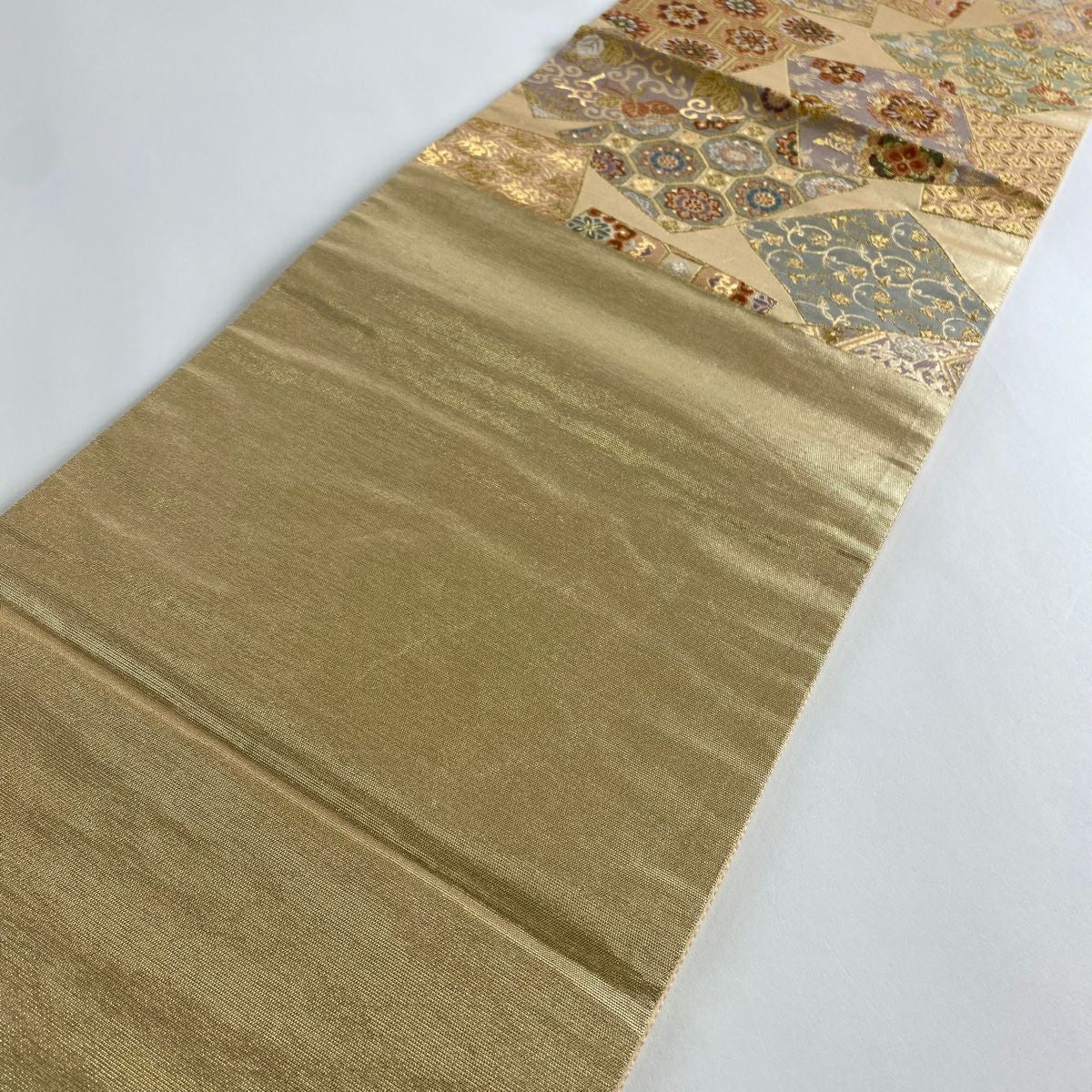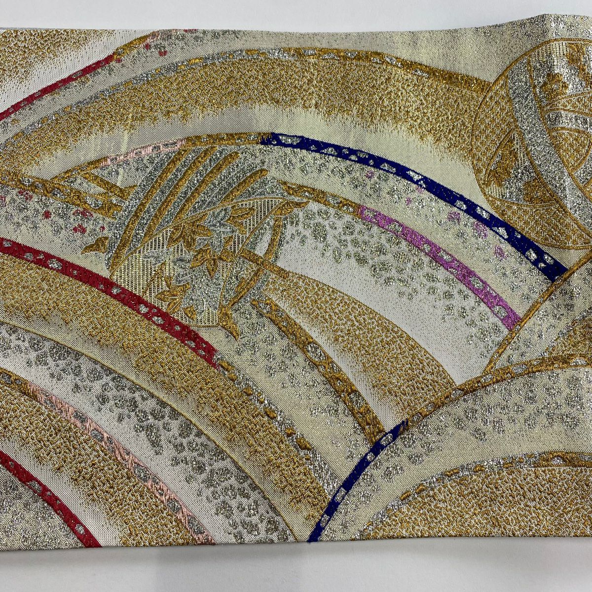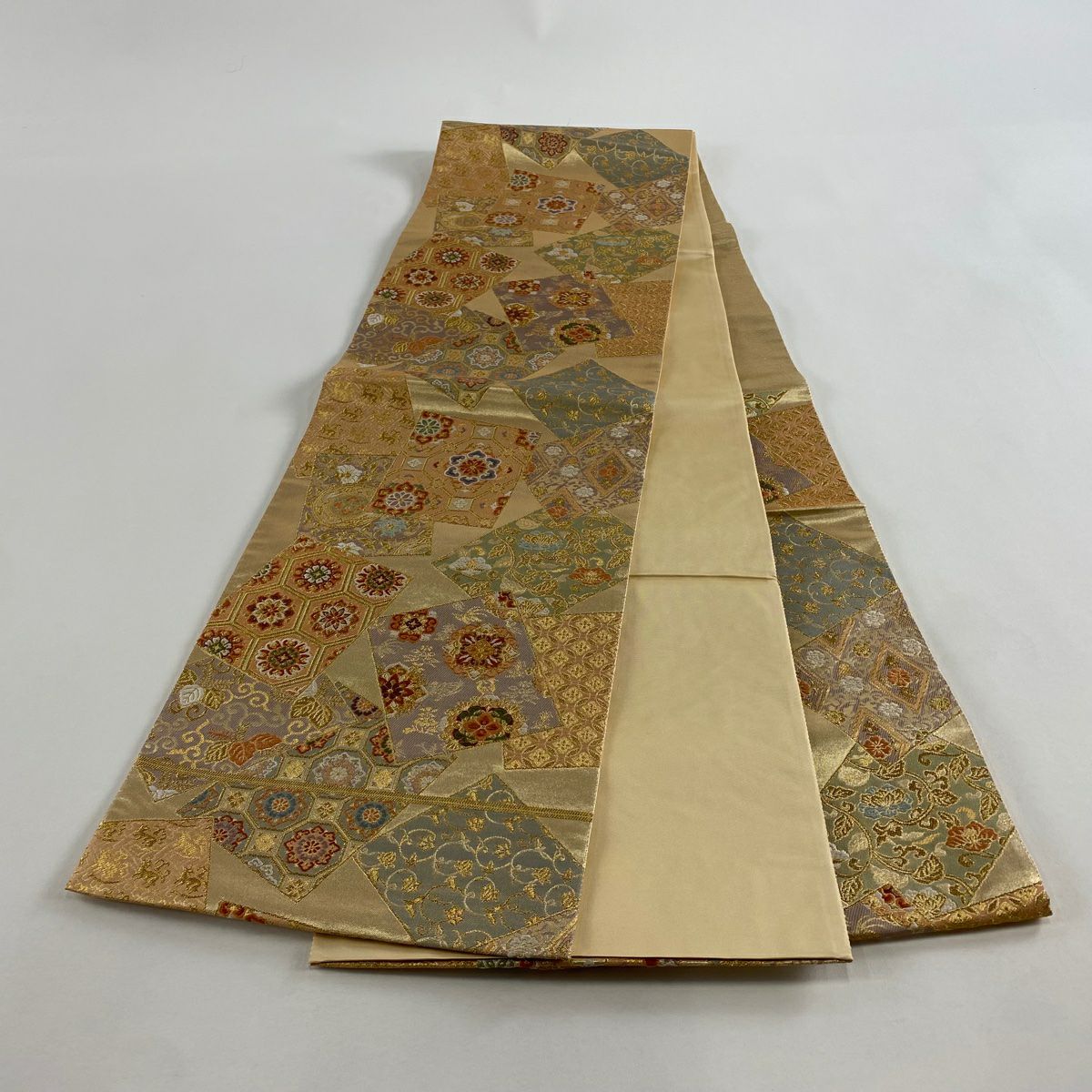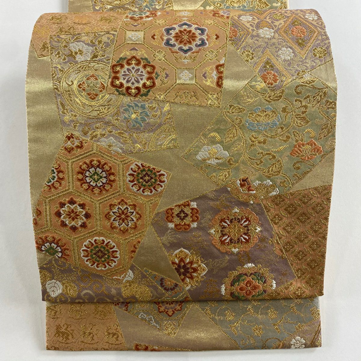 【在庫一掃】 【美品】 袋帯 秀品 幾何学 箔 金色 六通 正絹